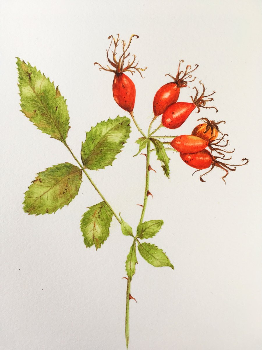 Шиповник плоды акварель