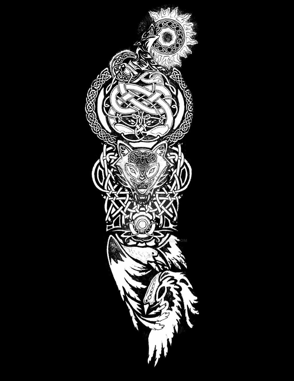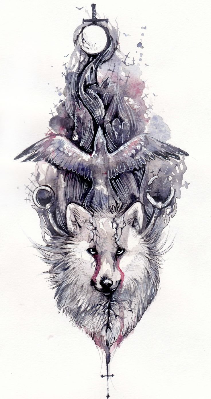 Волк и ворон тату эскиз