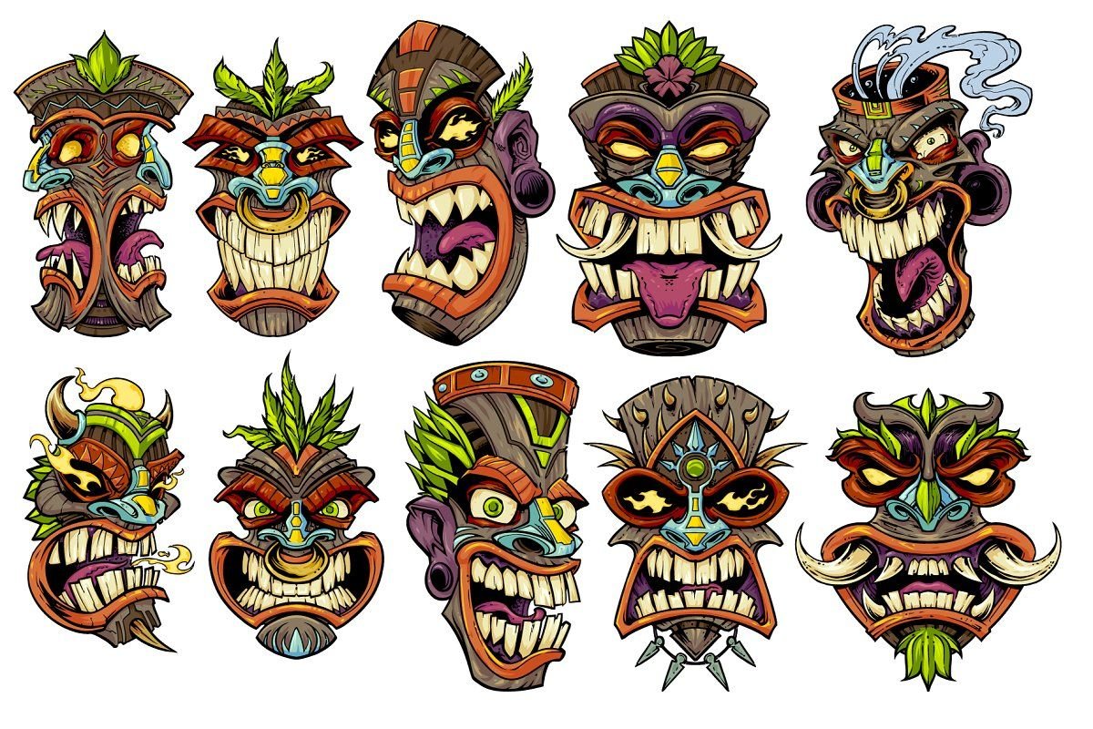 Полинезийские тату маски Тики