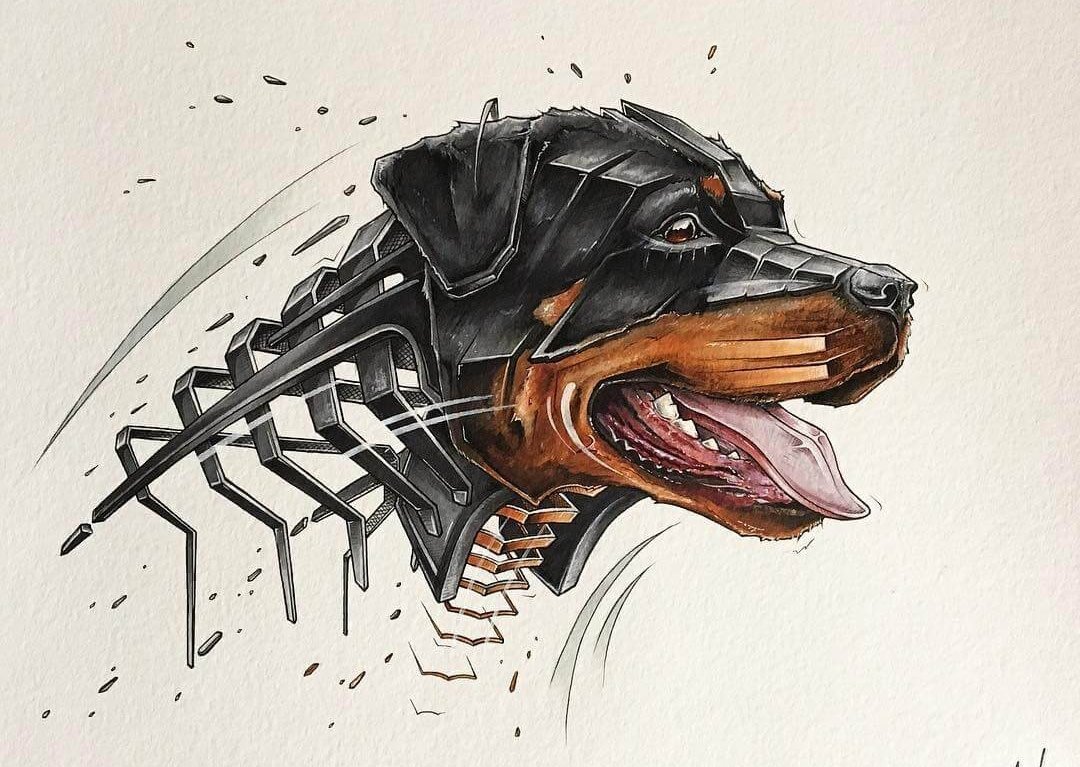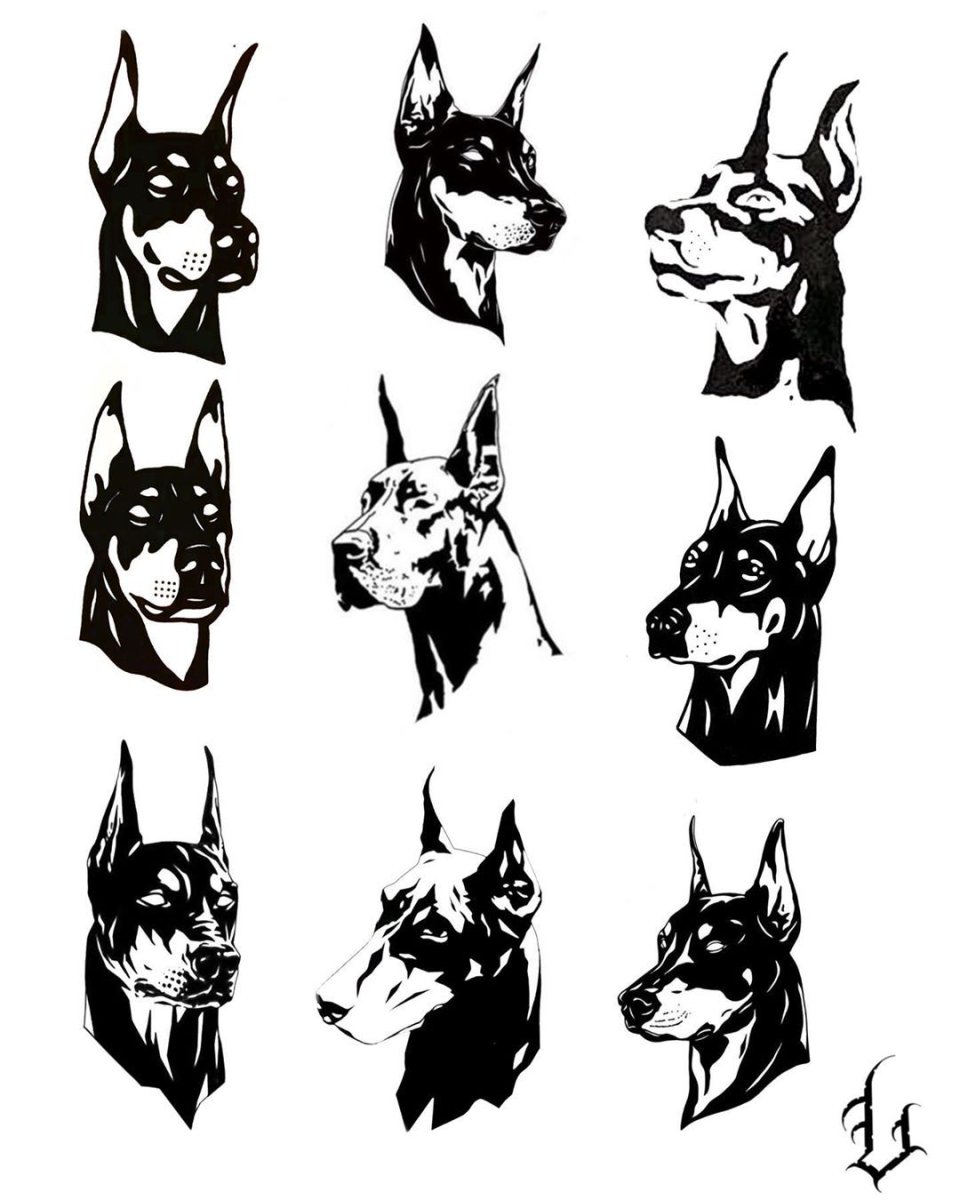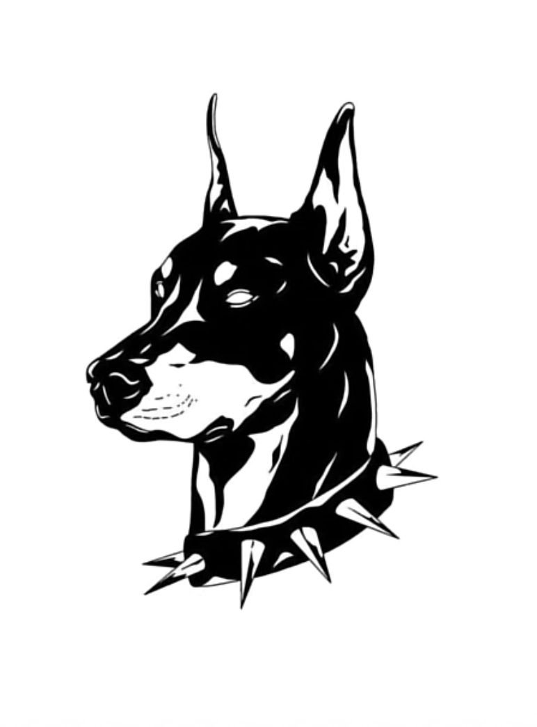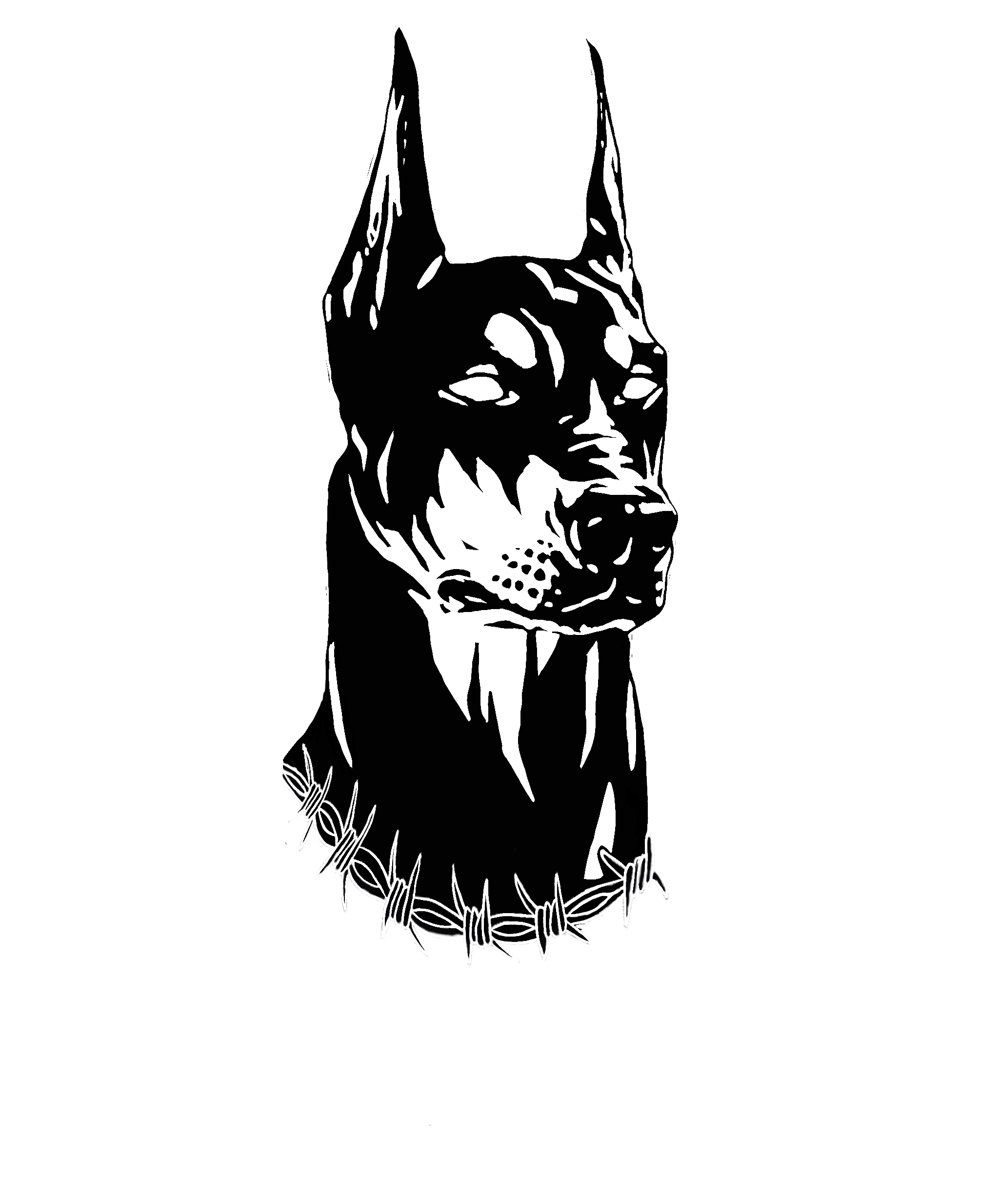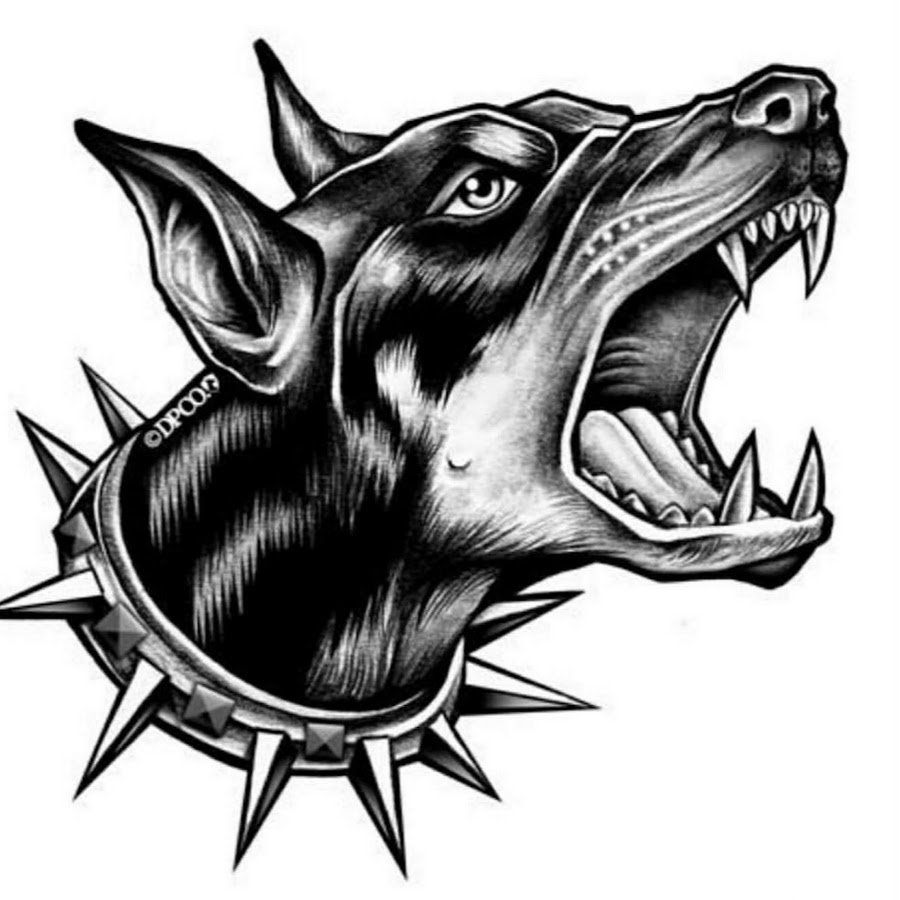 Эскизы тату для пацанов Доберман в колючей проволоке