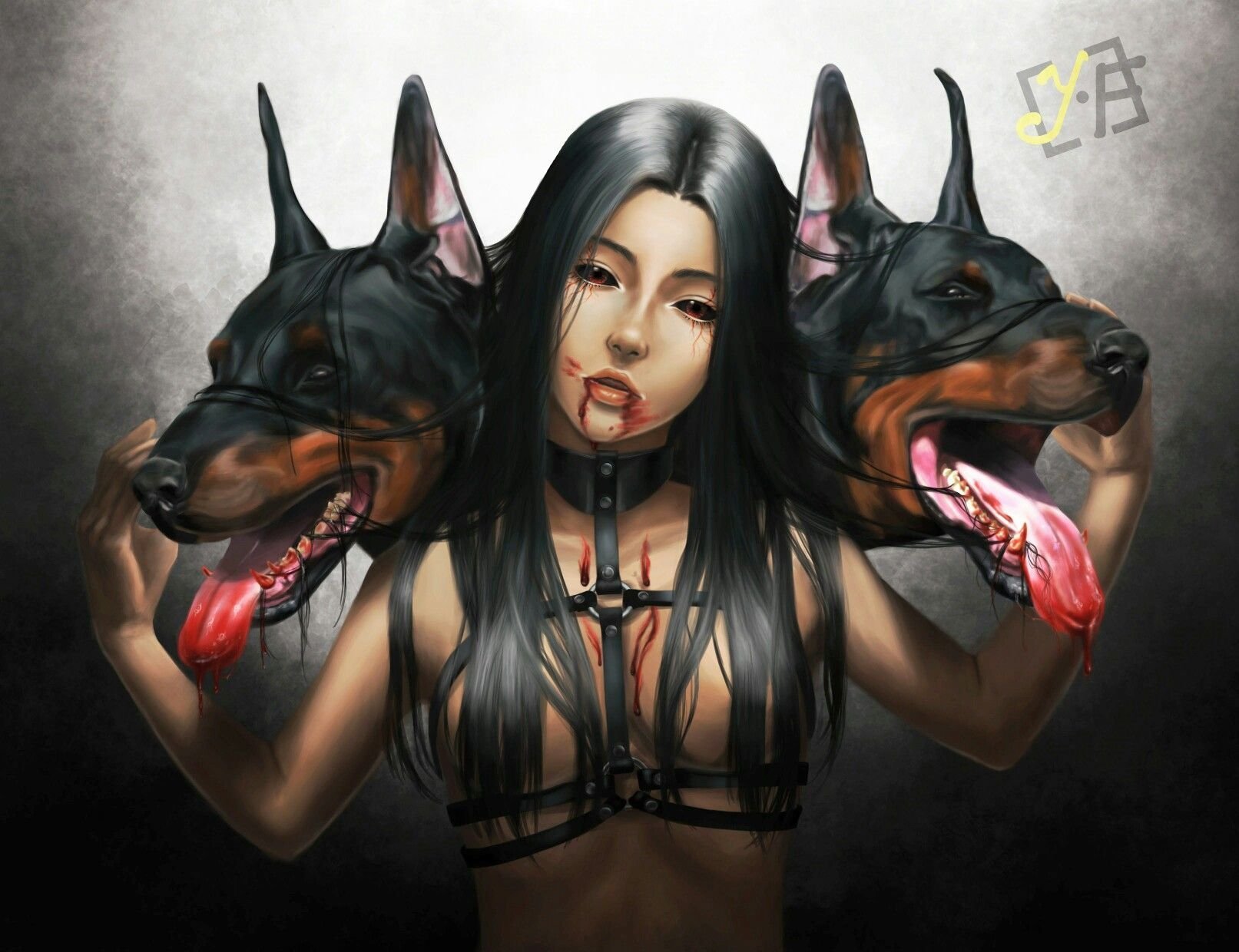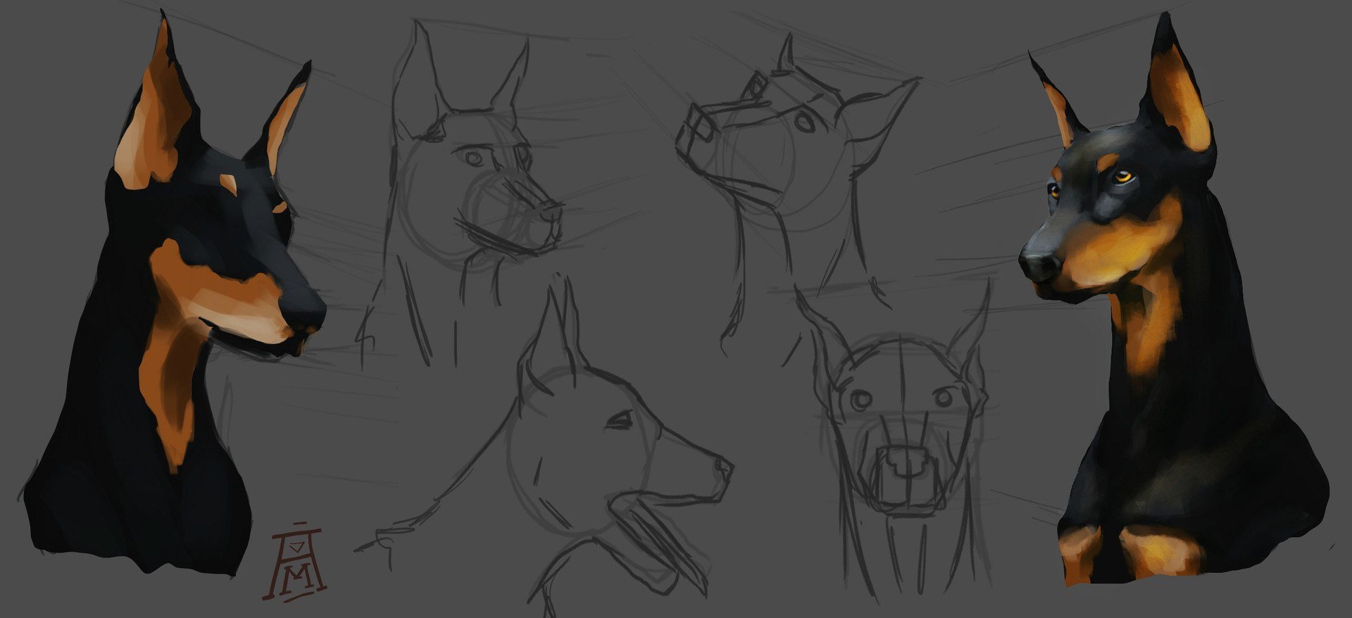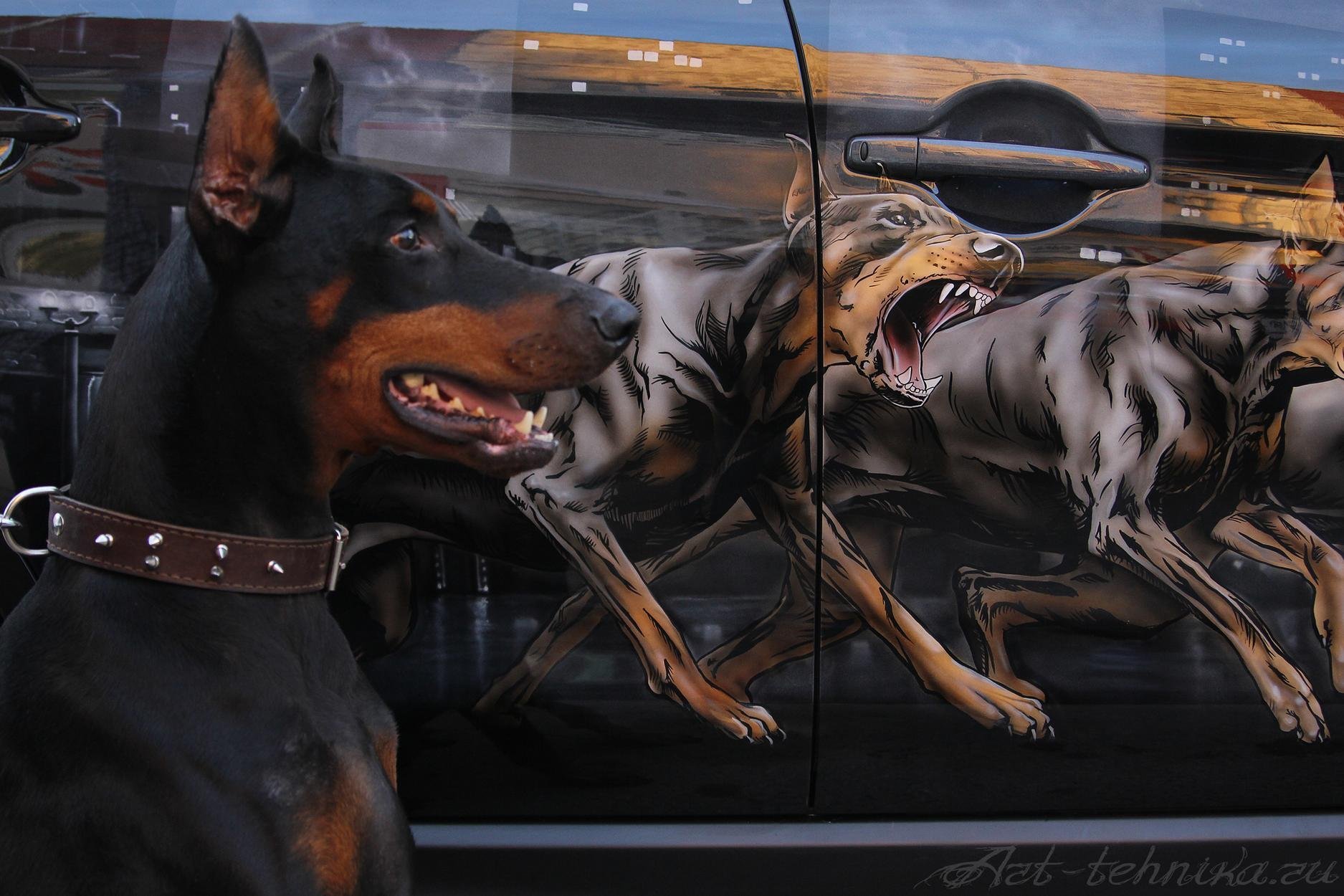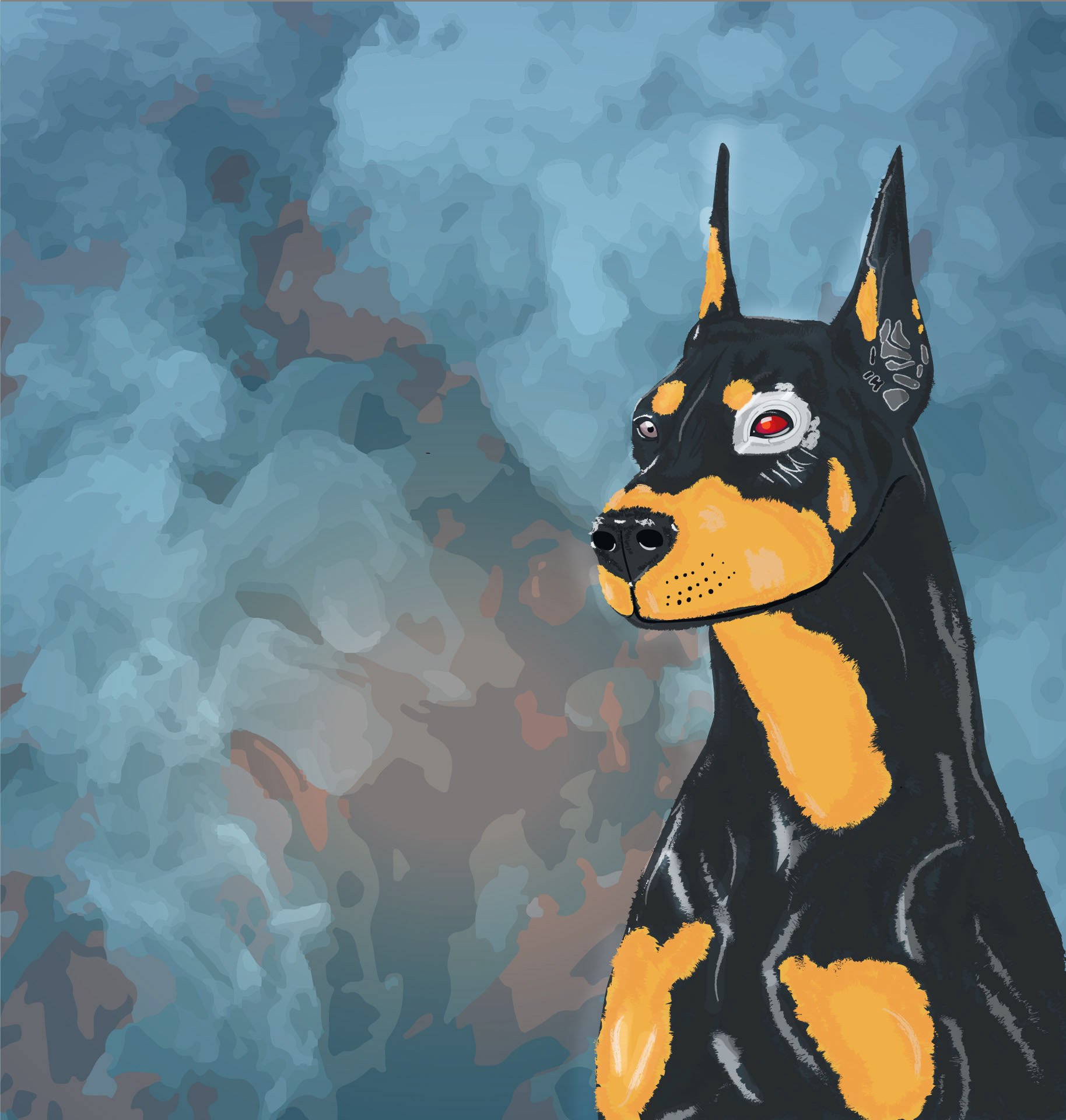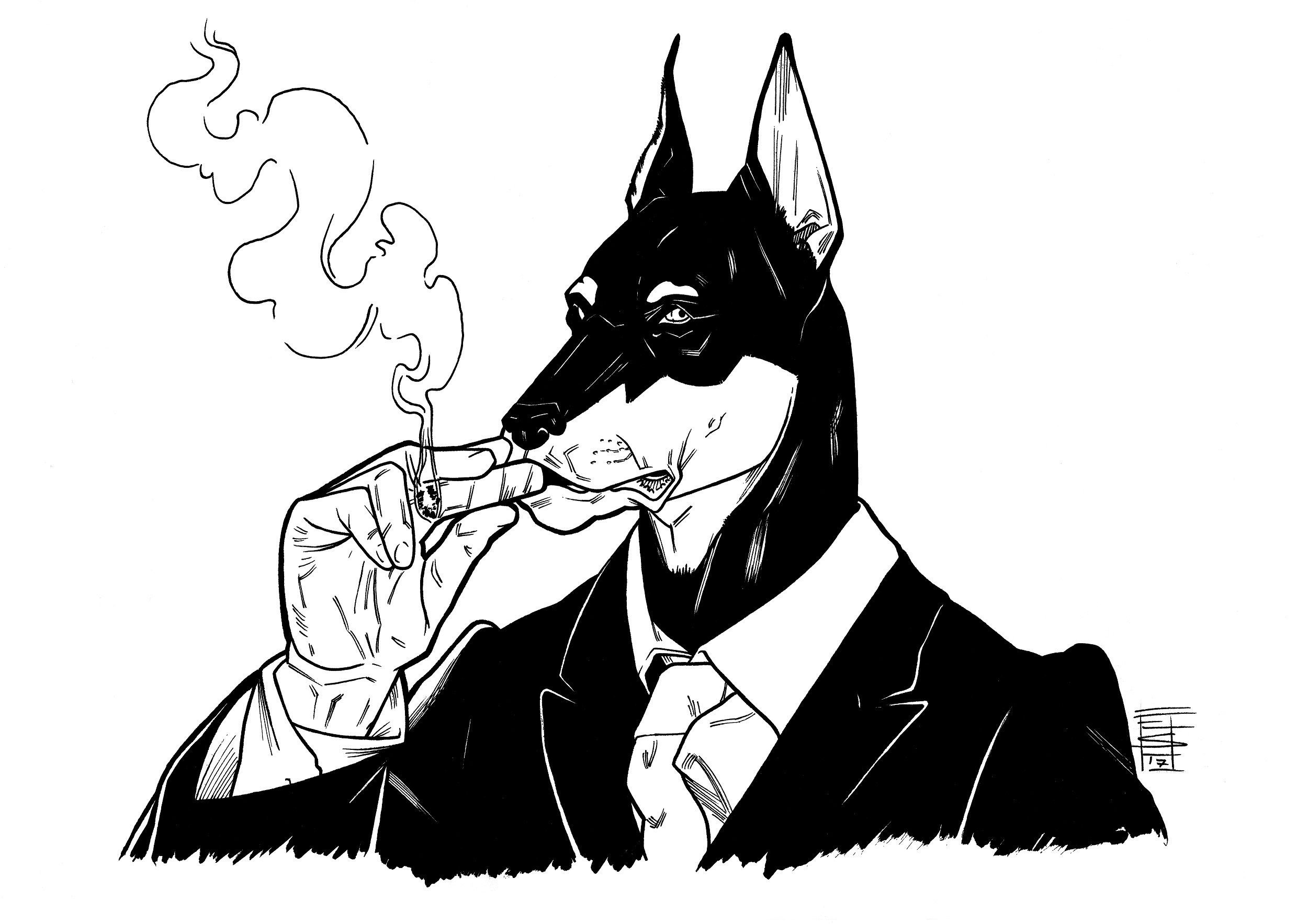 Эскизы тату для пацанов Доберман в колючей проволоке