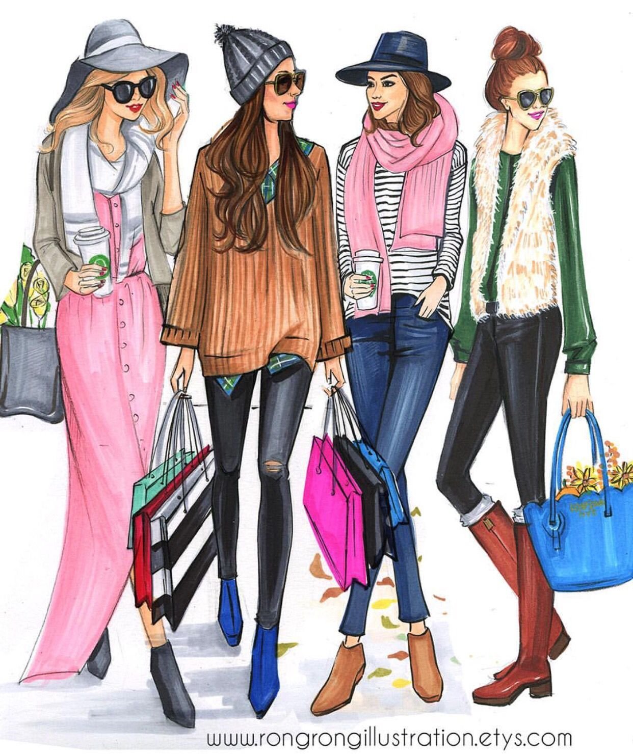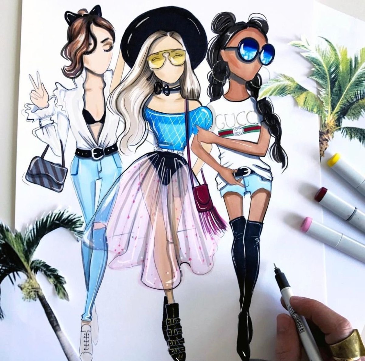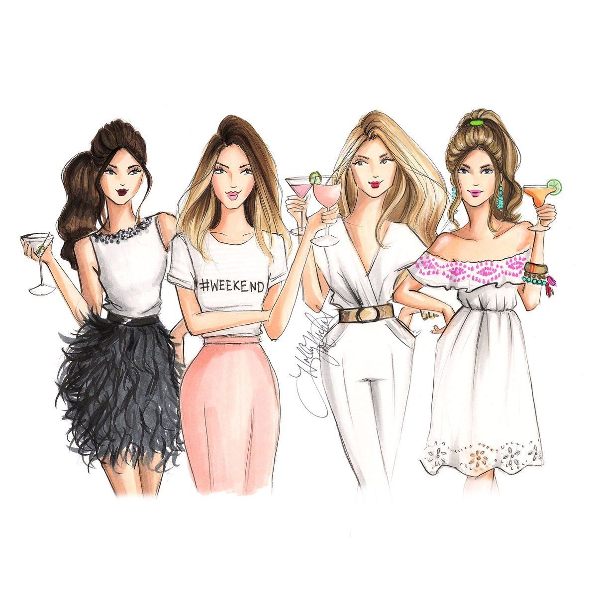 Модные подруги рисунок