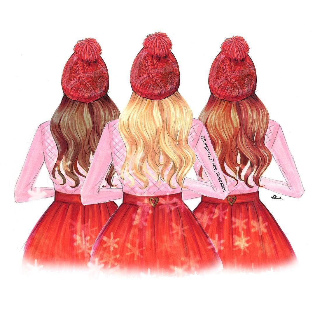 Рисунки для срисовки три подруги