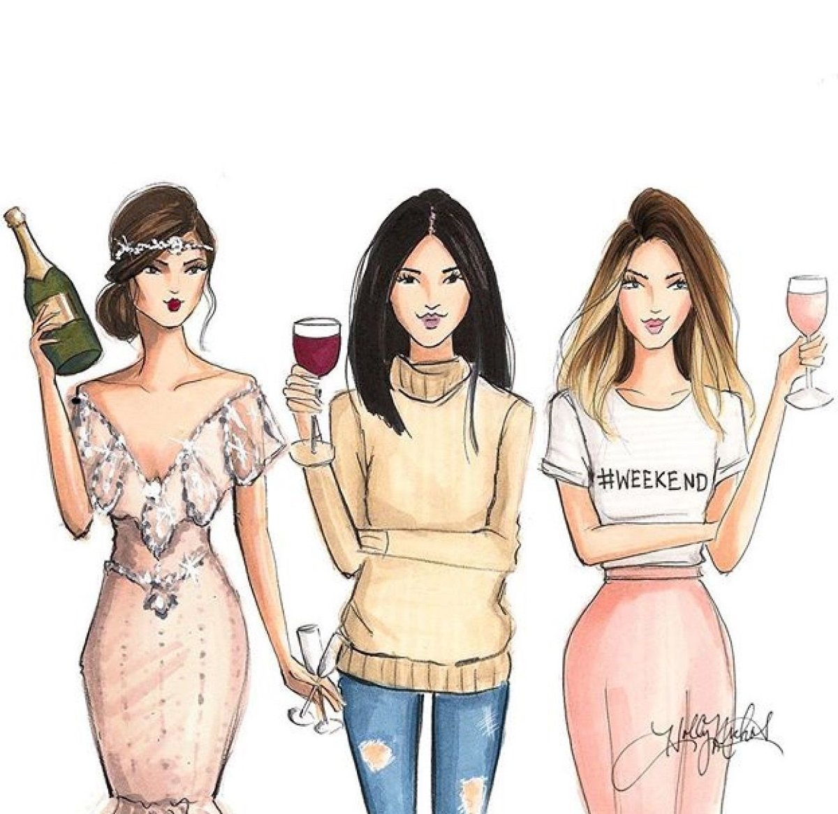 Девушки подруги рисунок