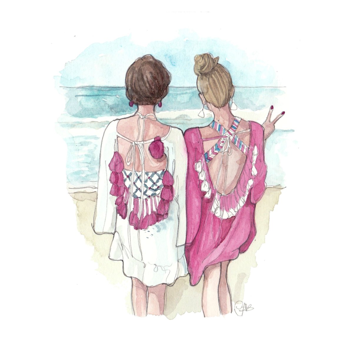 Две девушки акварель