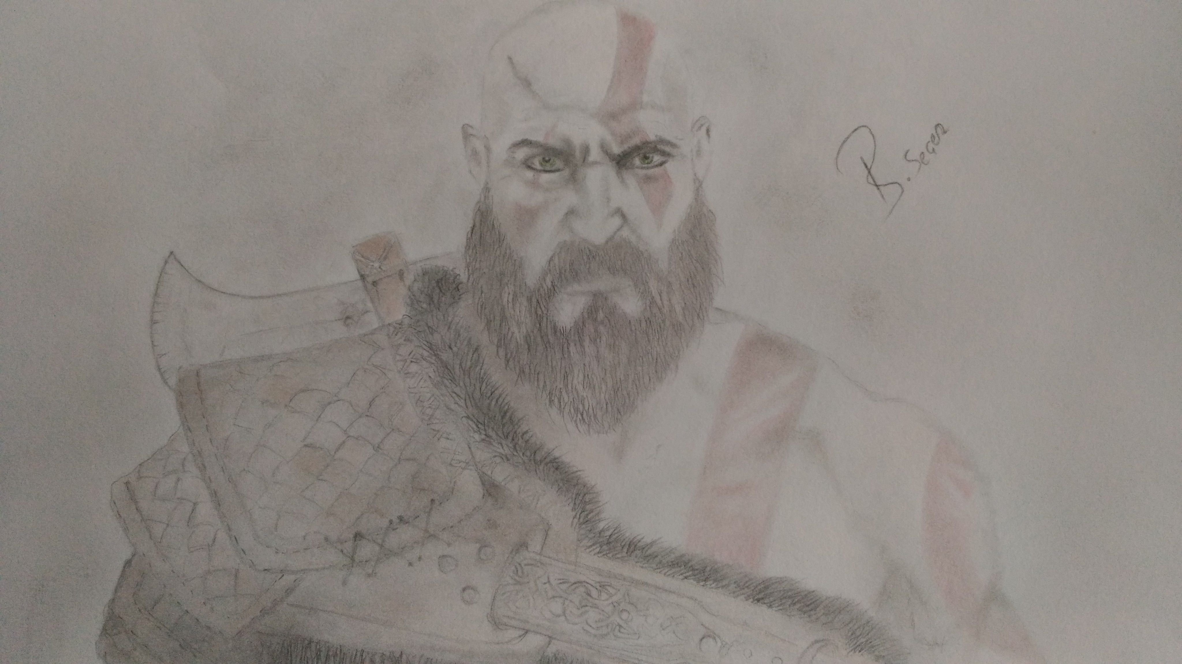 Кратос из год оф вар карандашом