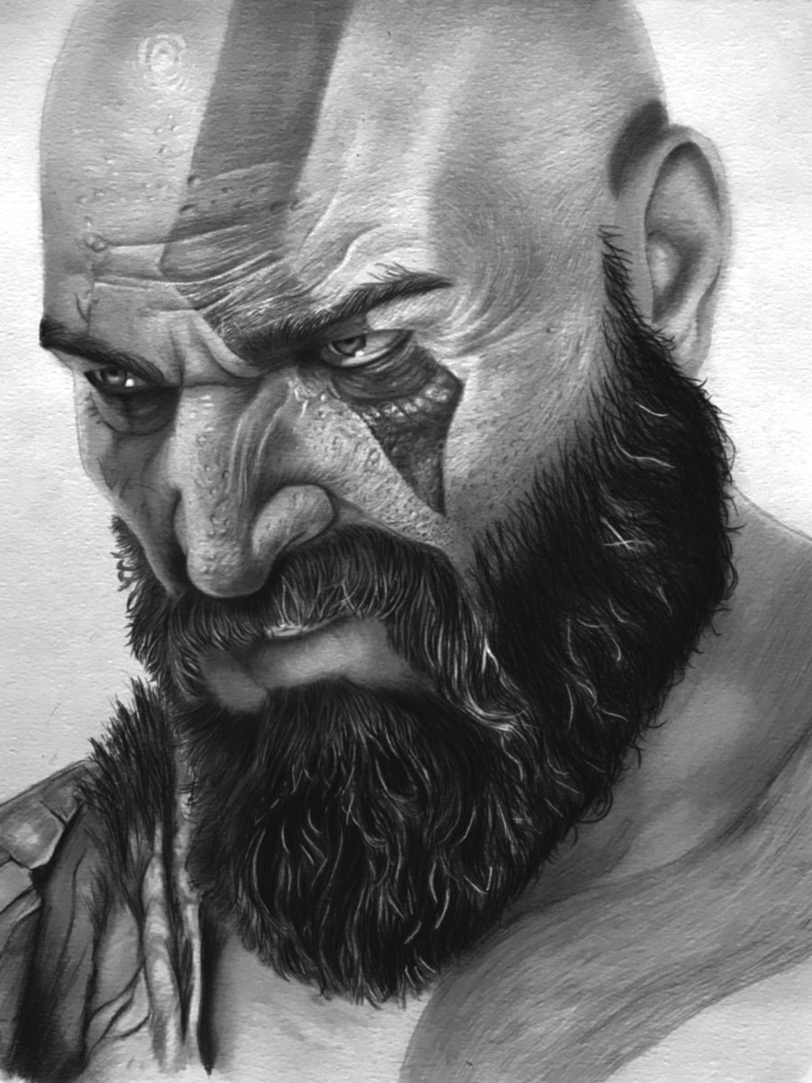 Рисунки Кратоса с бородой карандашом легко