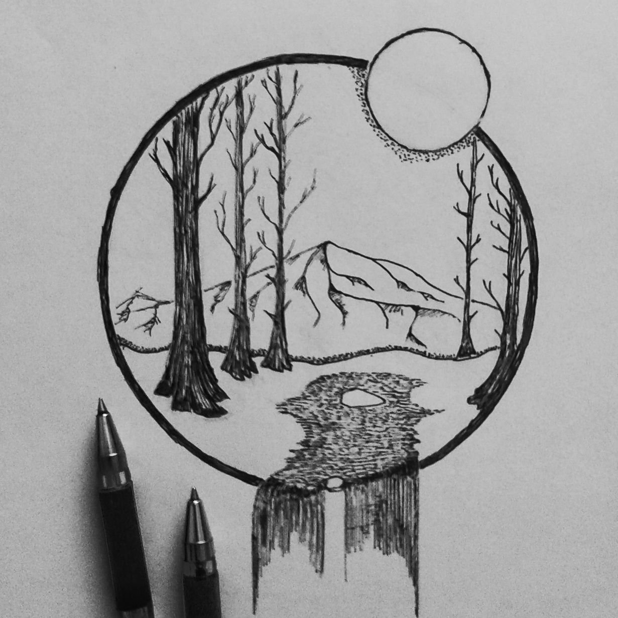Рисунки гелевой ручкой пейзажи