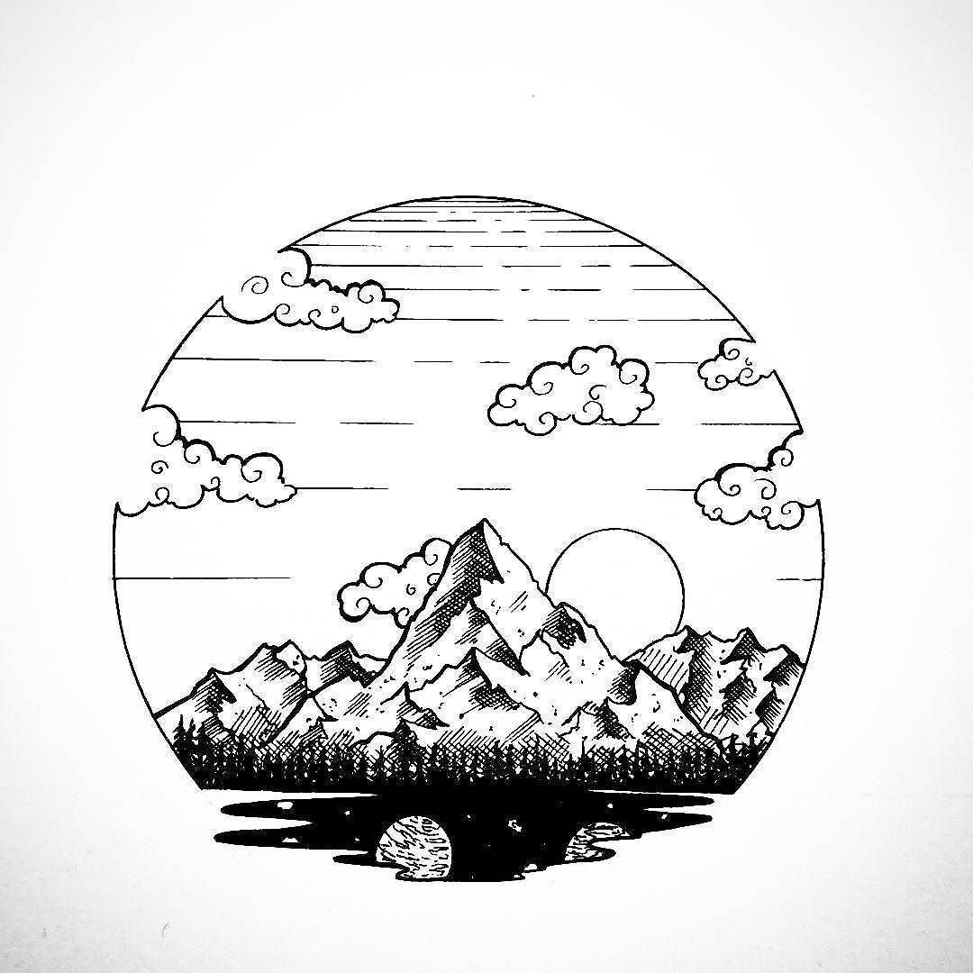 Эскиз тату пейзаж