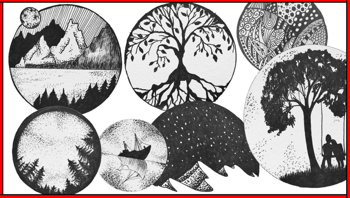 Рисунки в круге для скетчбука