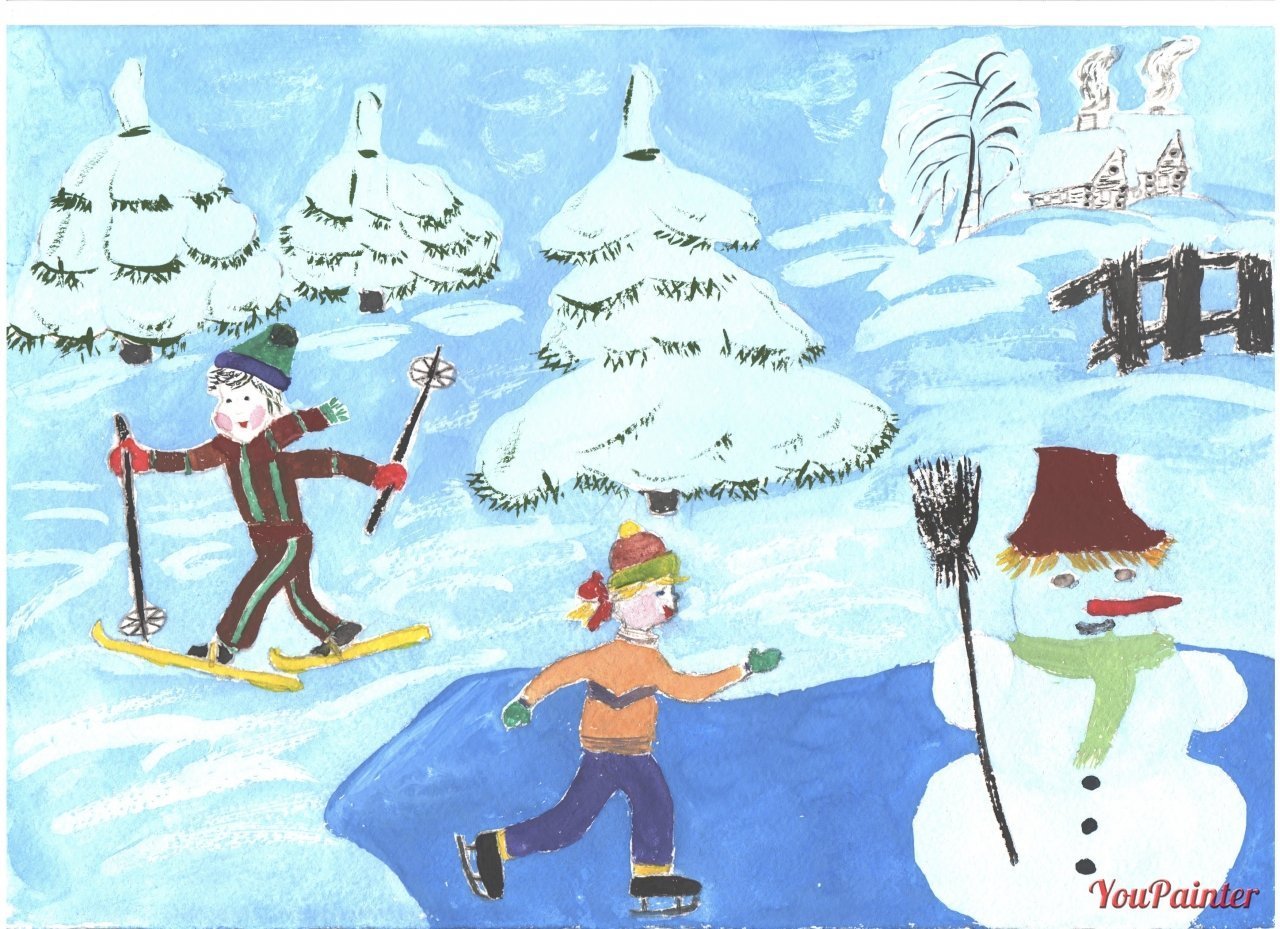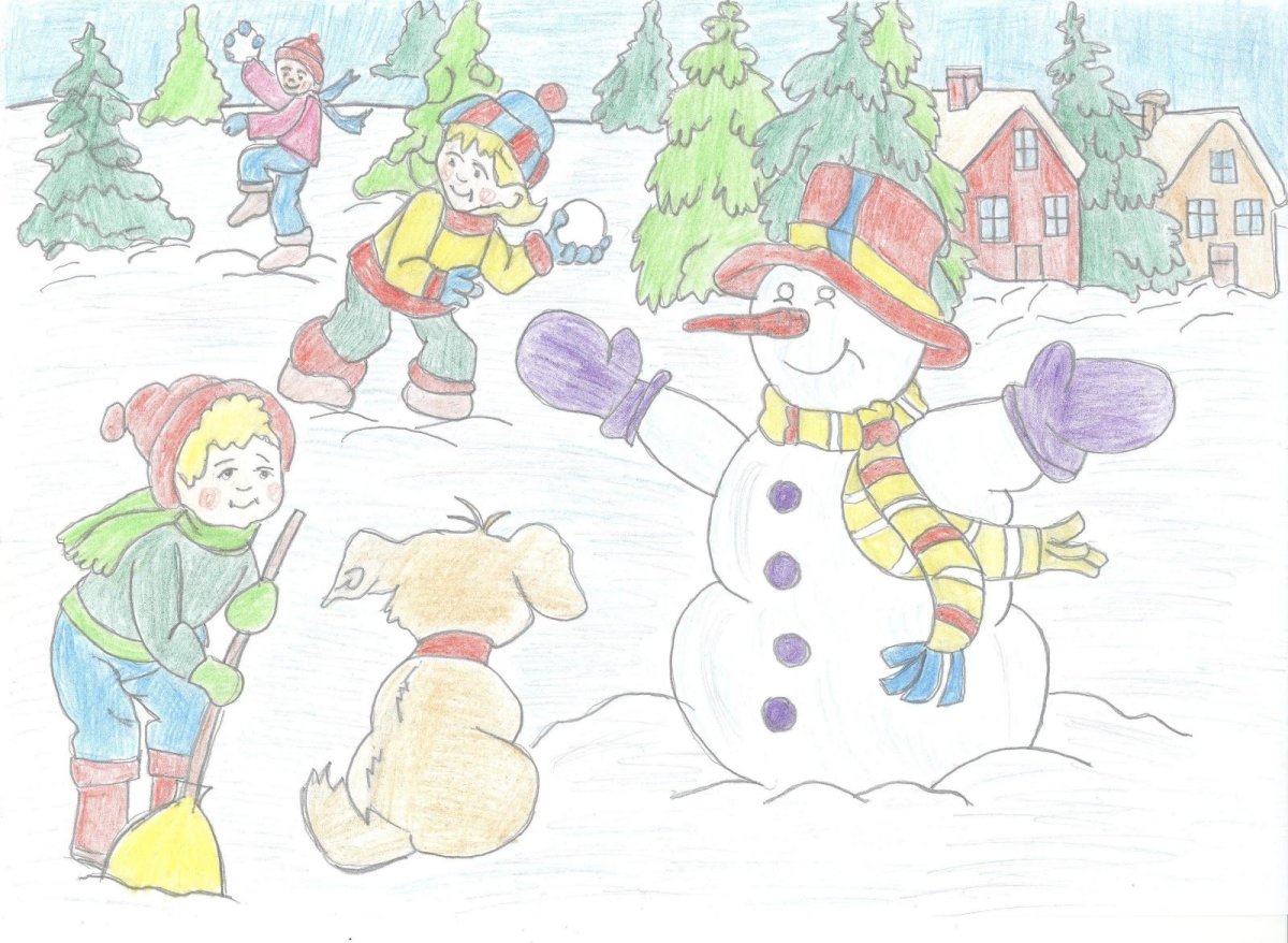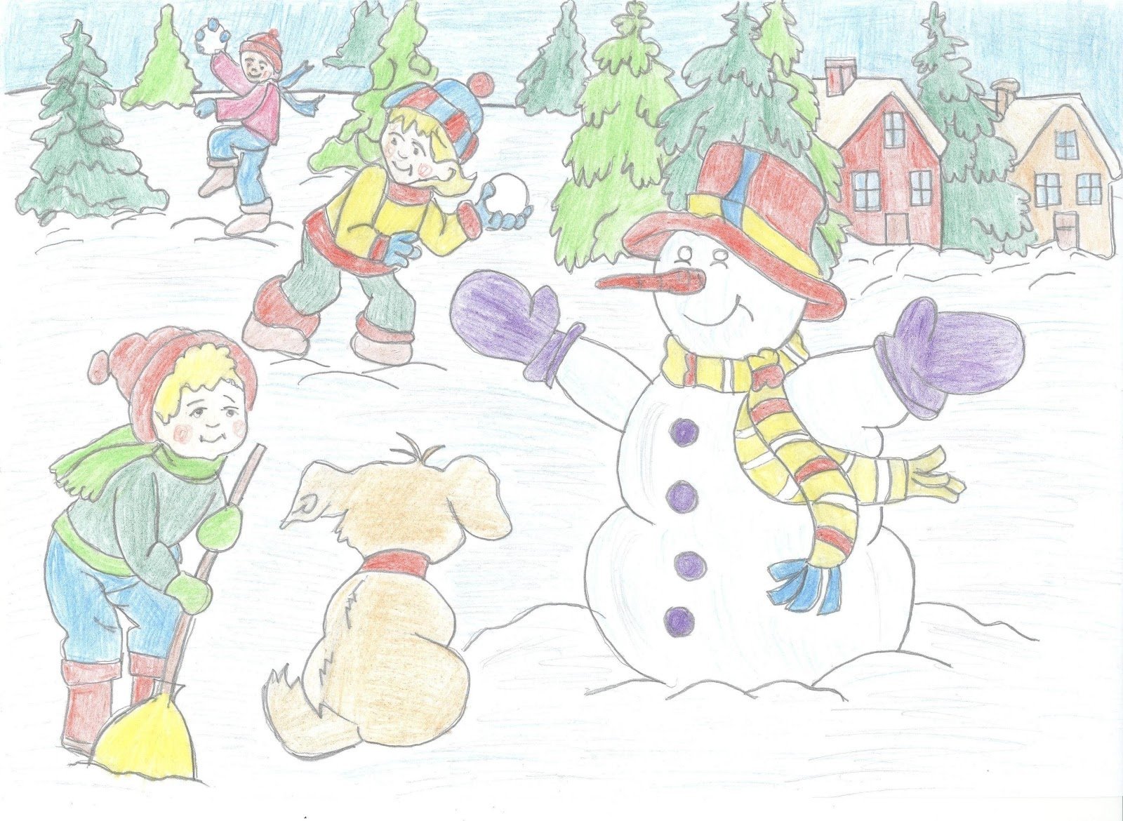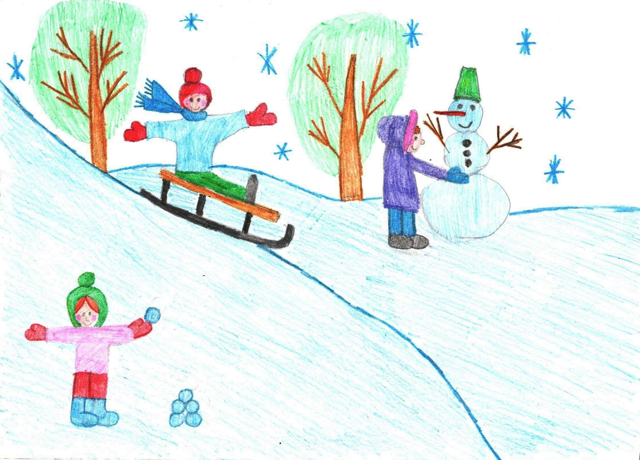 Изо зимние забавы 3 класс поэтапное рисование для детей