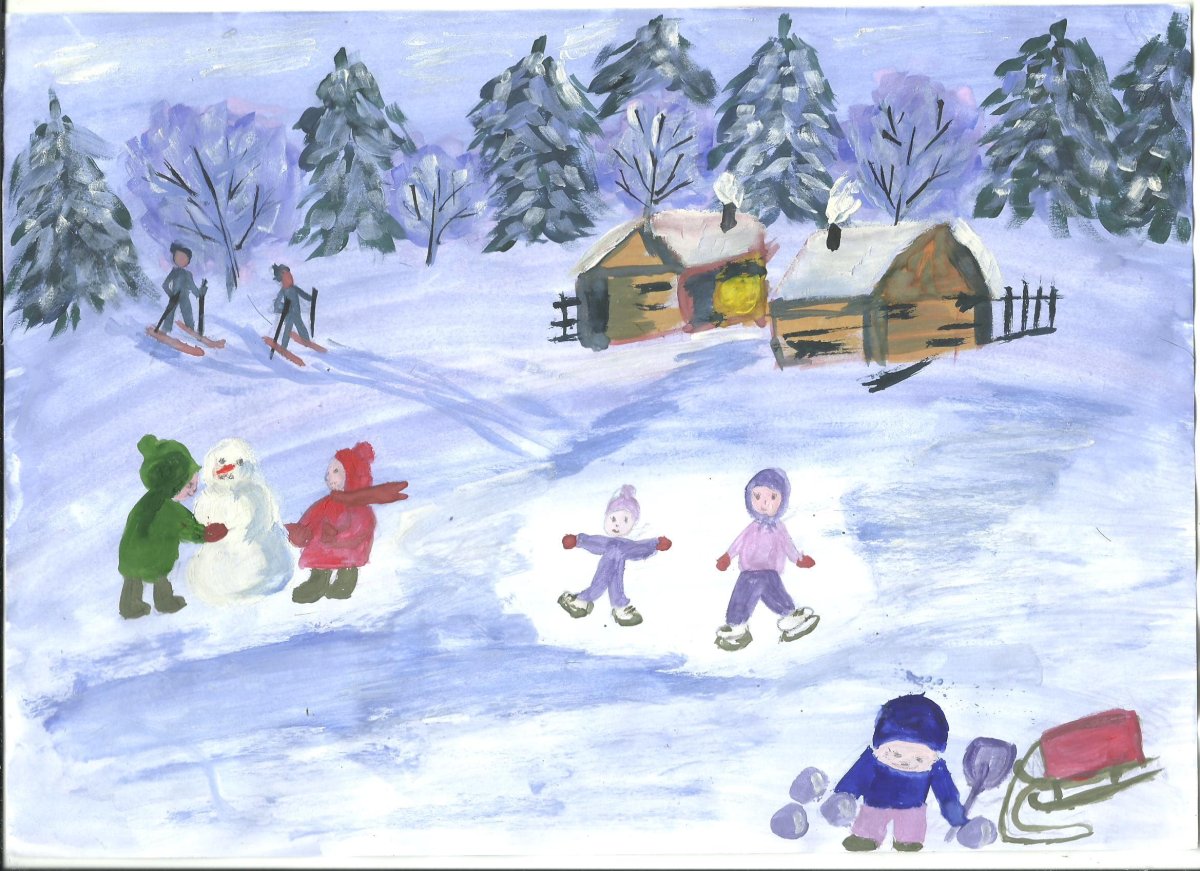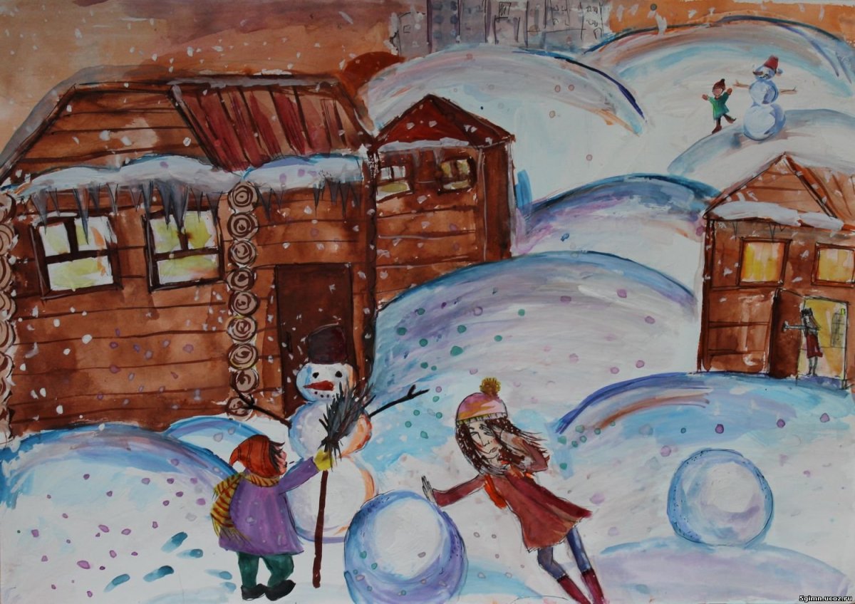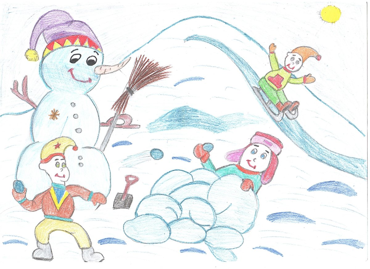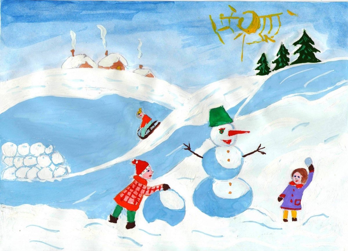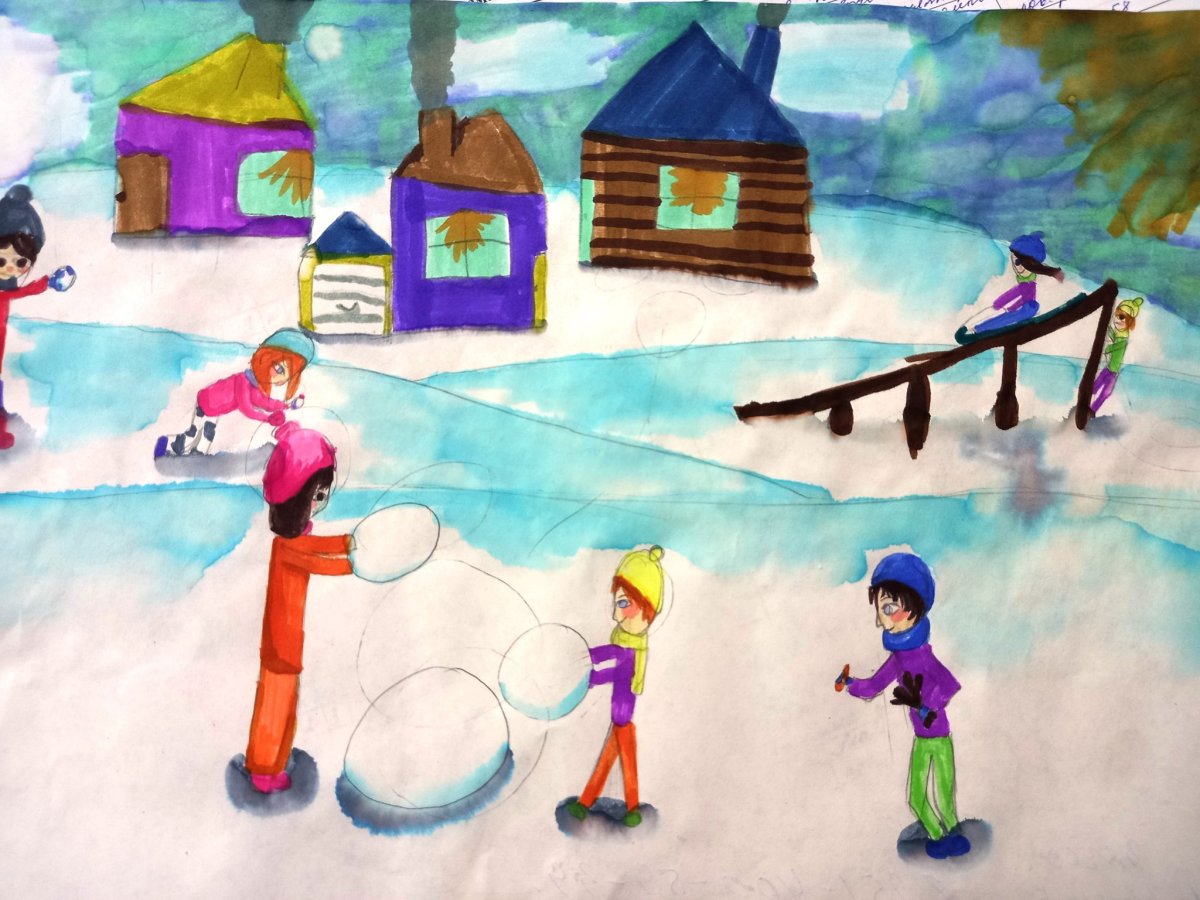 Изо зимние забавы 3 класс поэтапное рисование для детей