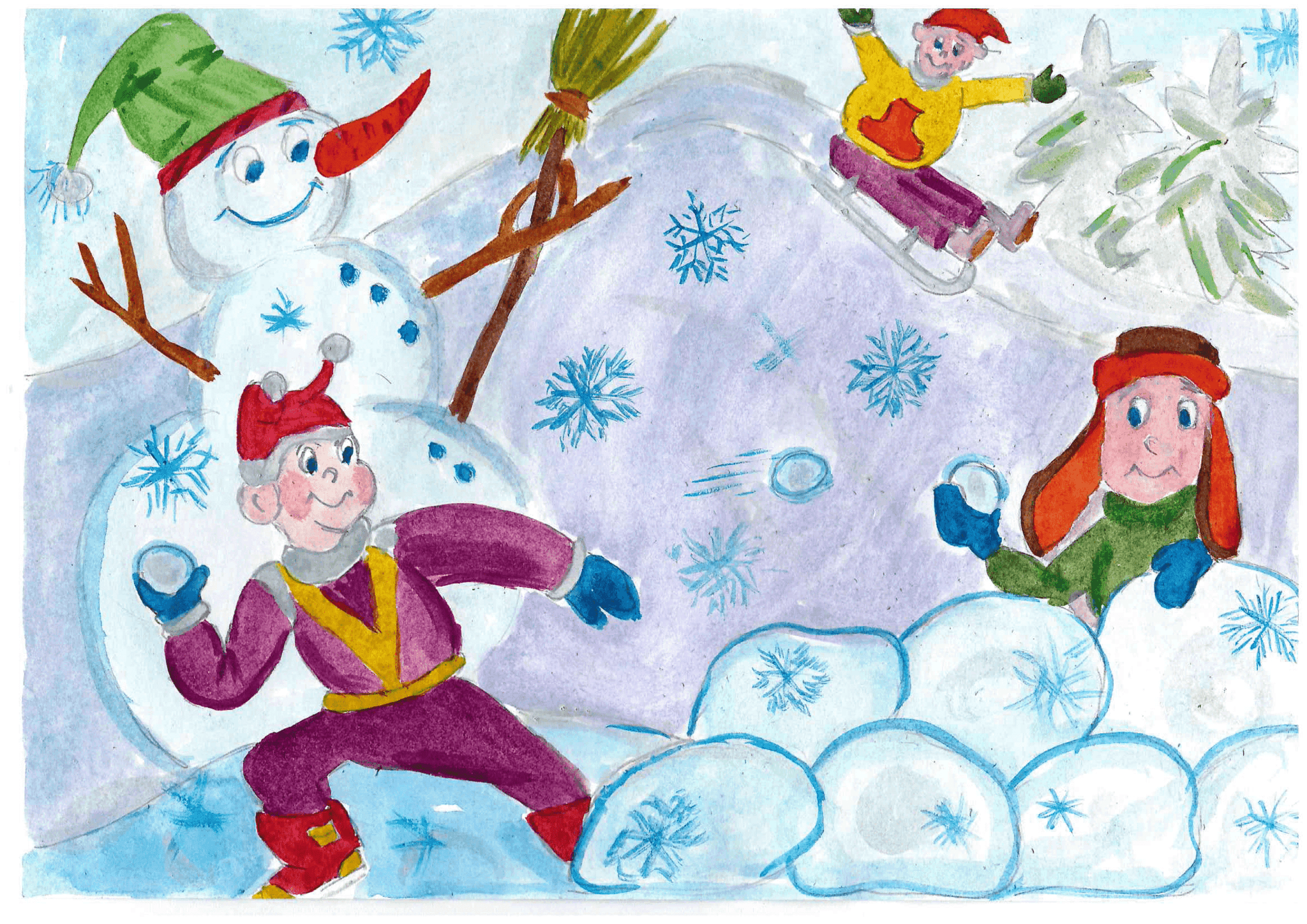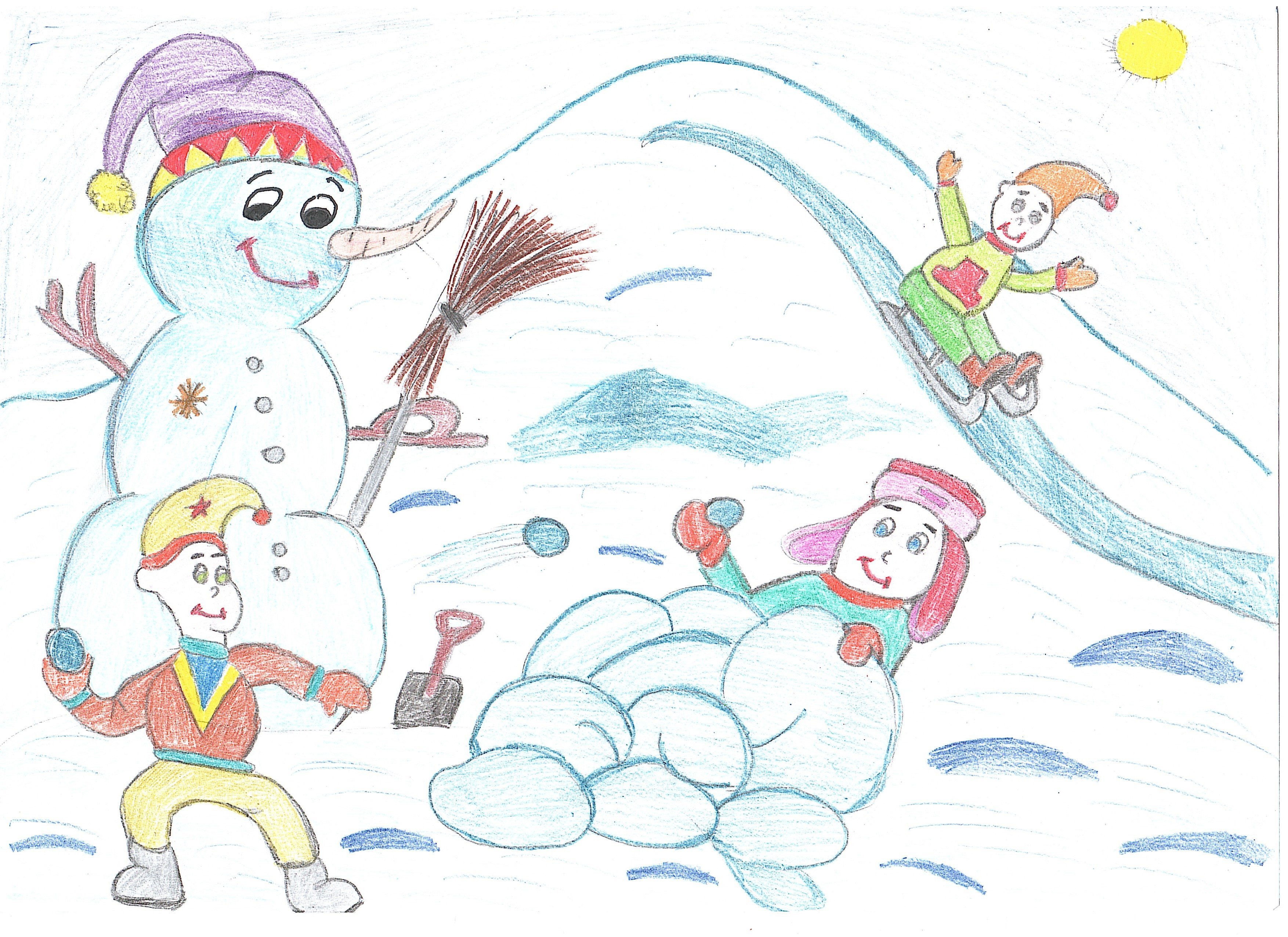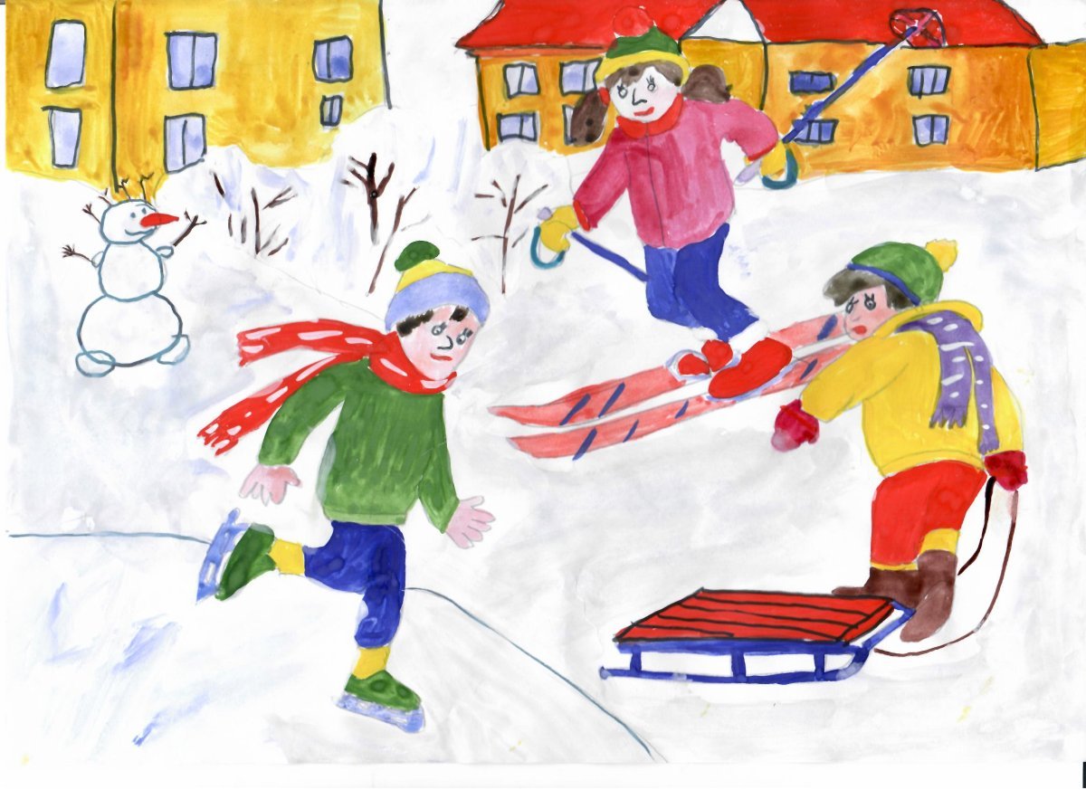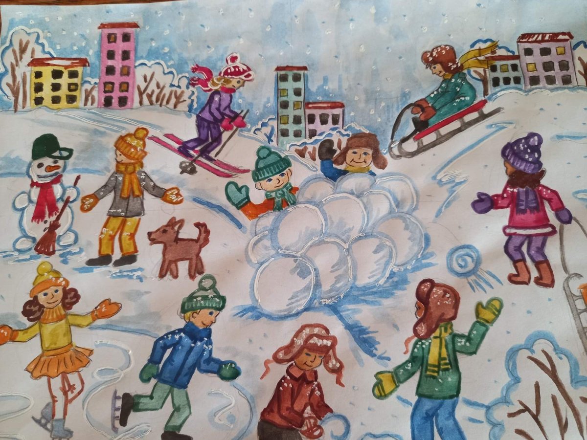Изо зимние забавы 3 класс поэтапное рисование для детей