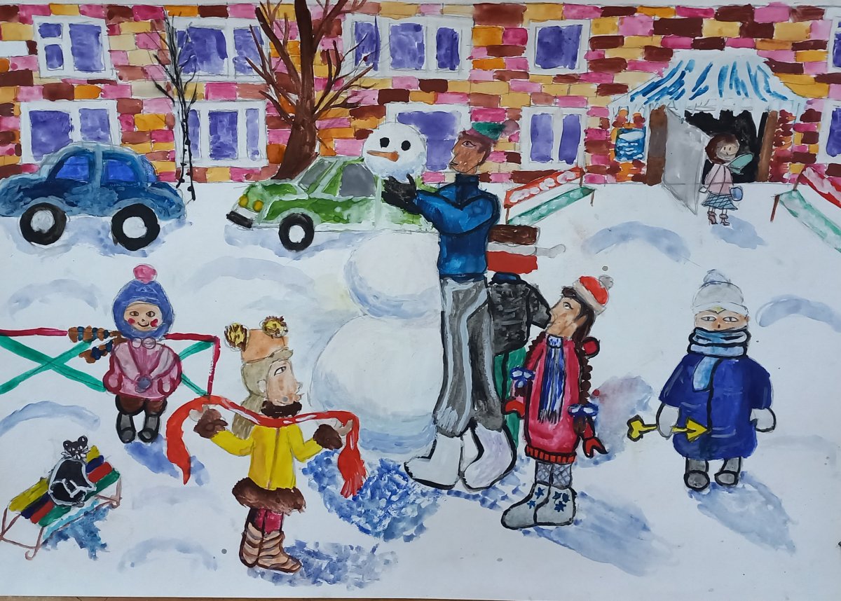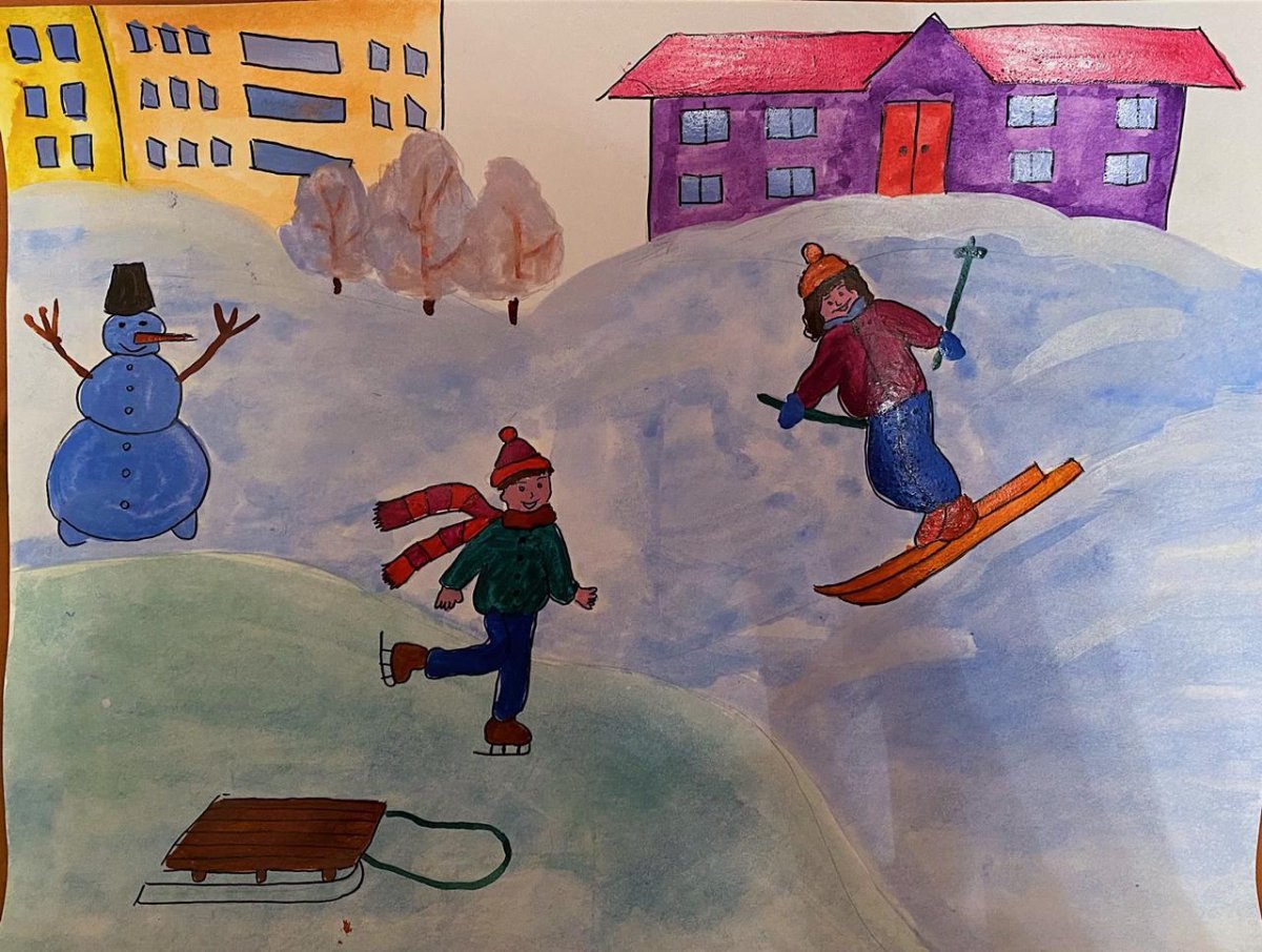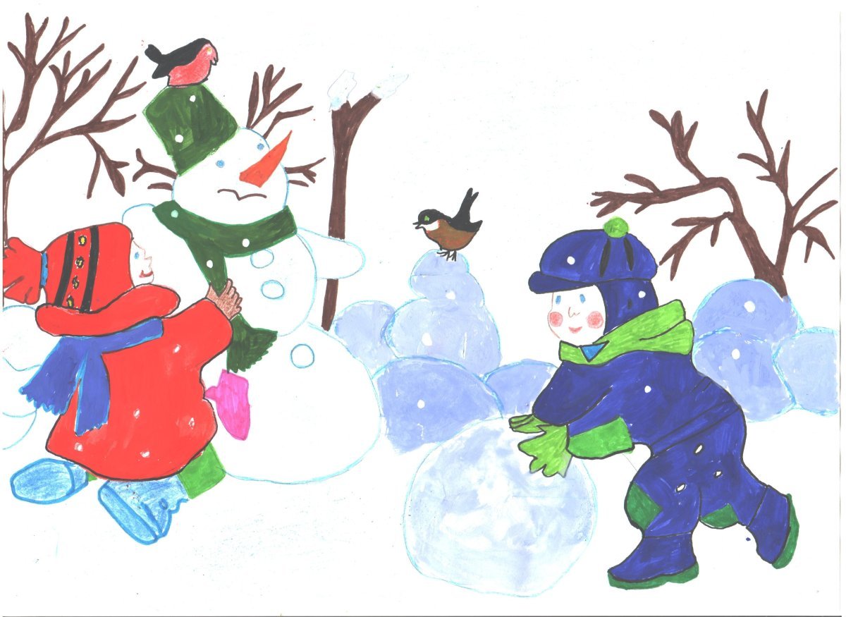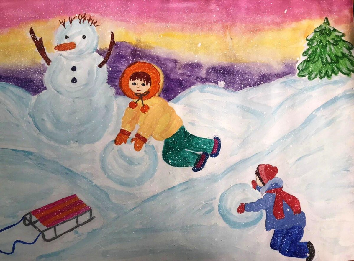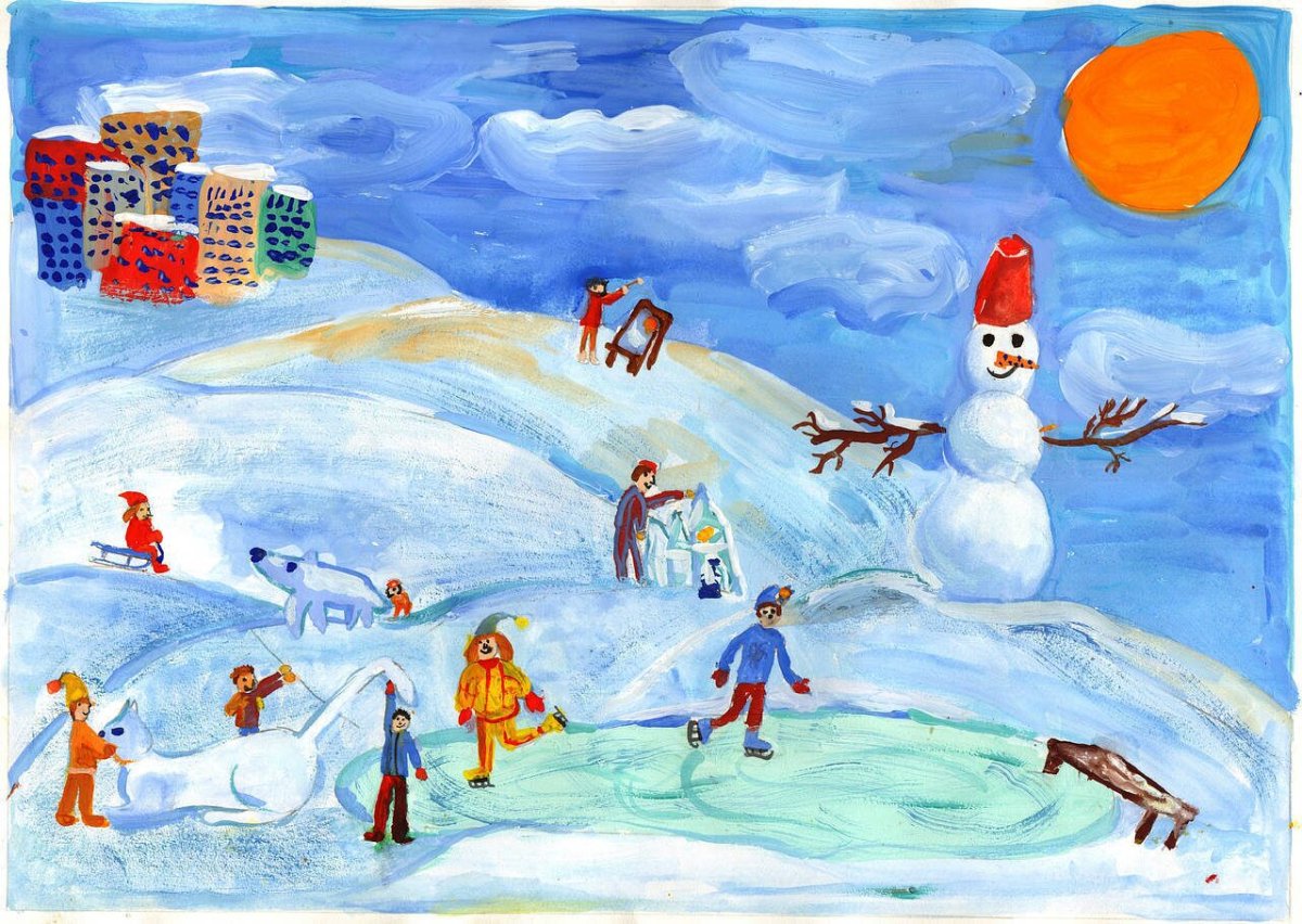 Изо зимние забавы 3 класс поэтапное рисование для детей