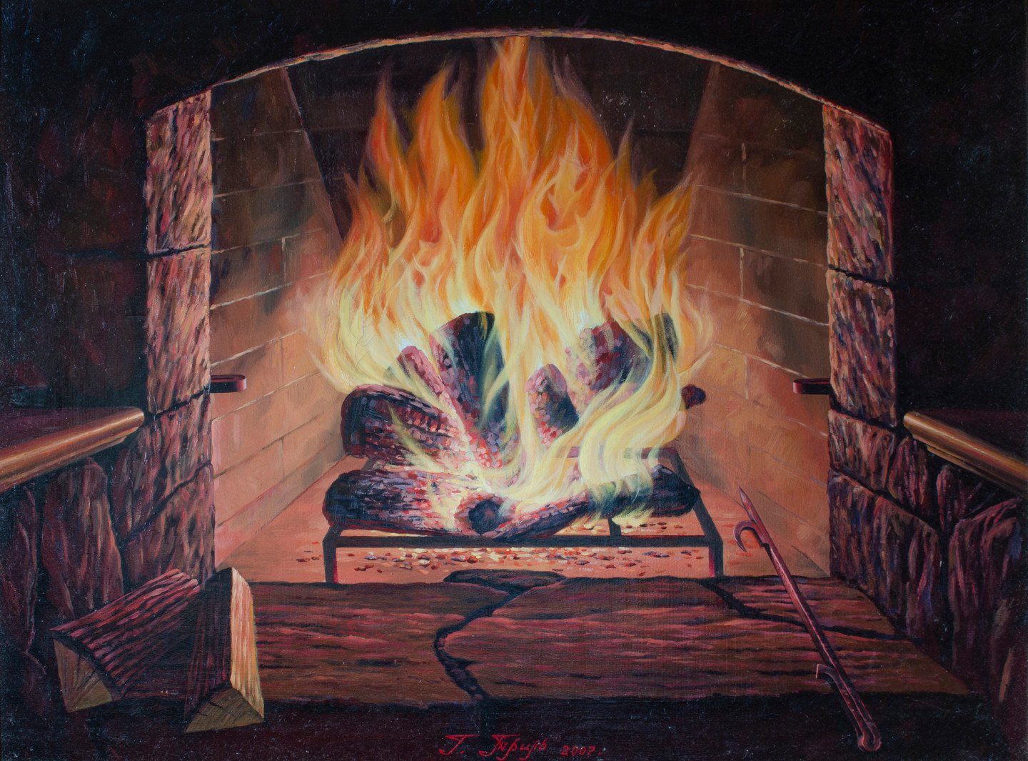 Огонь в камине живопись
