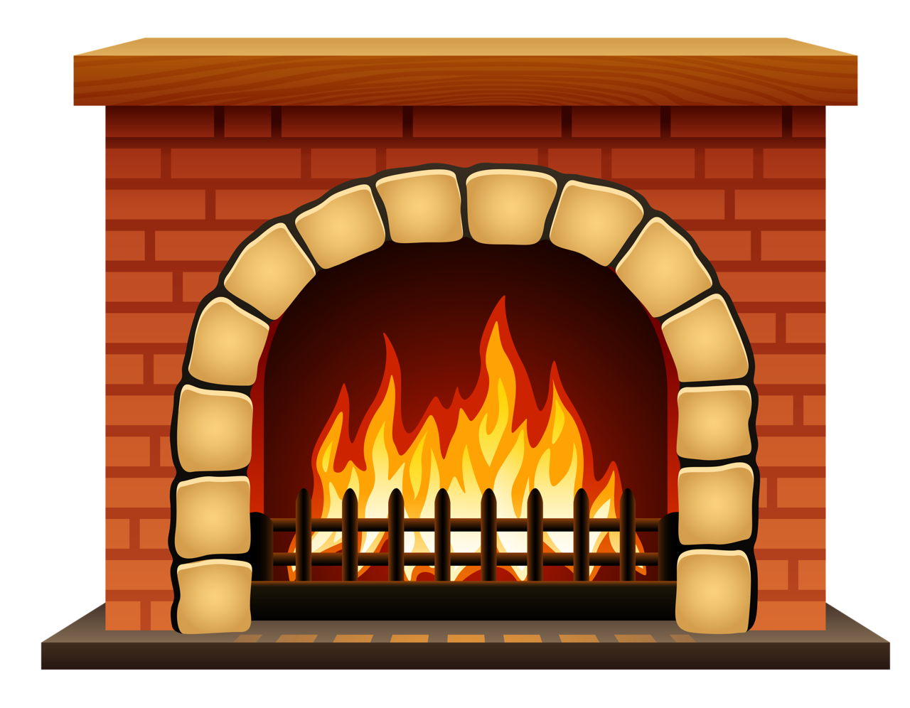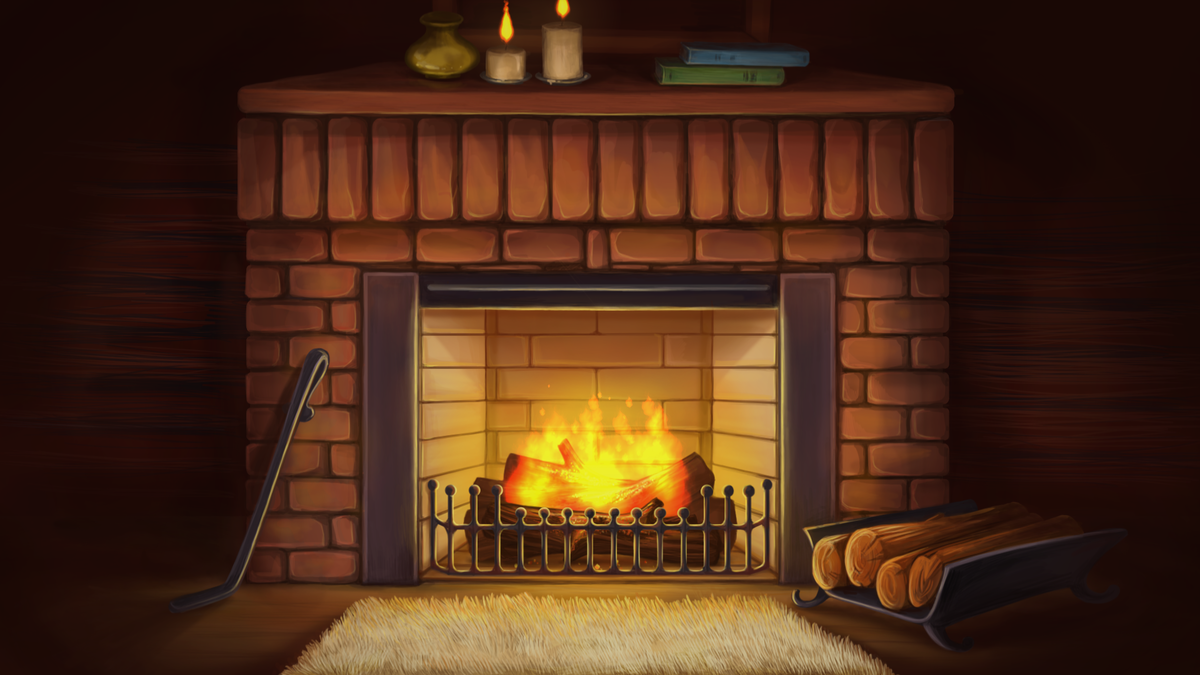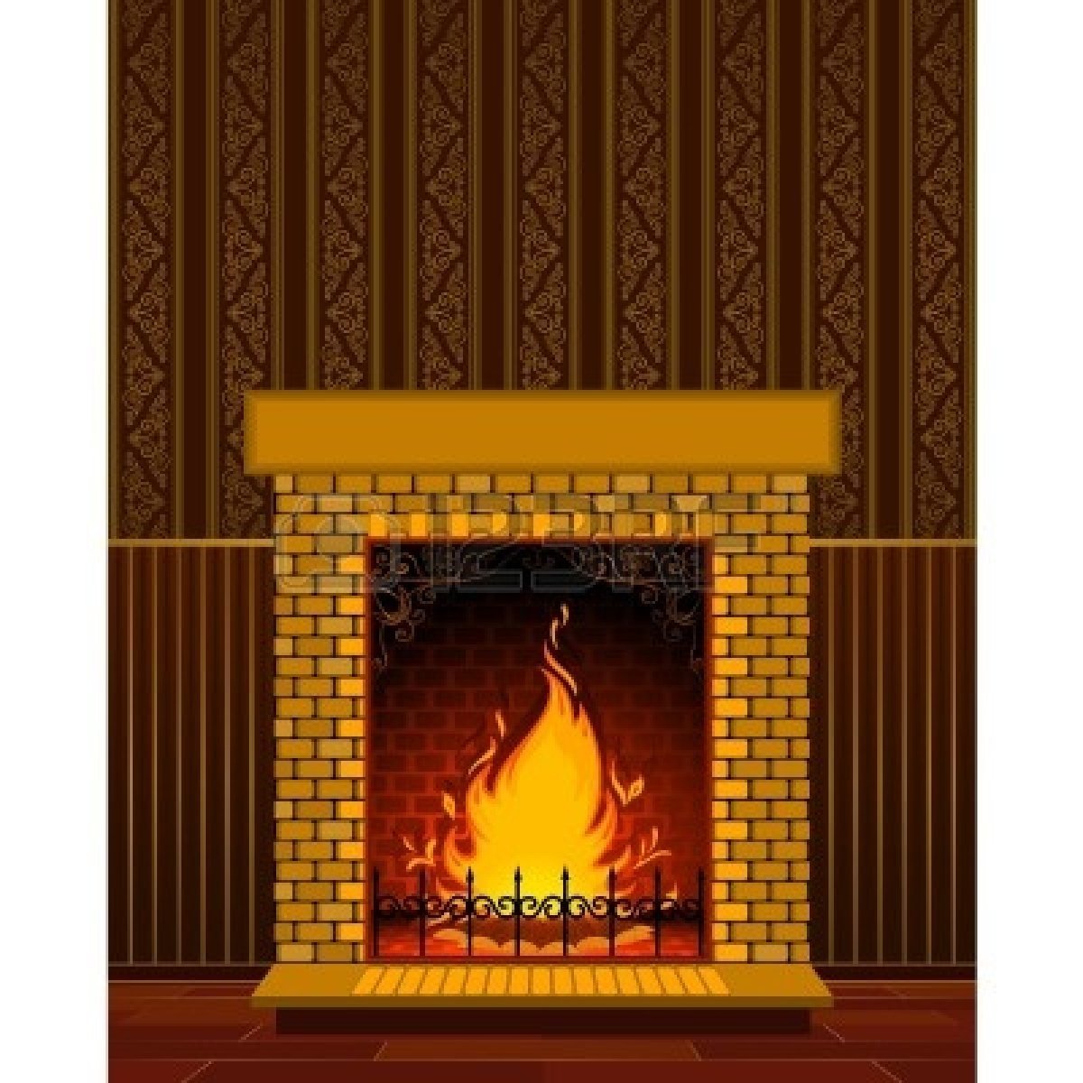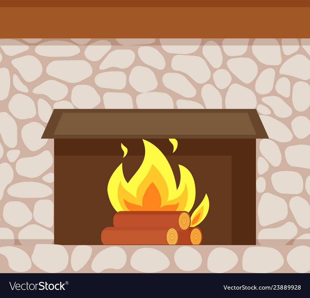 Нарисовать камин с огнем на стене