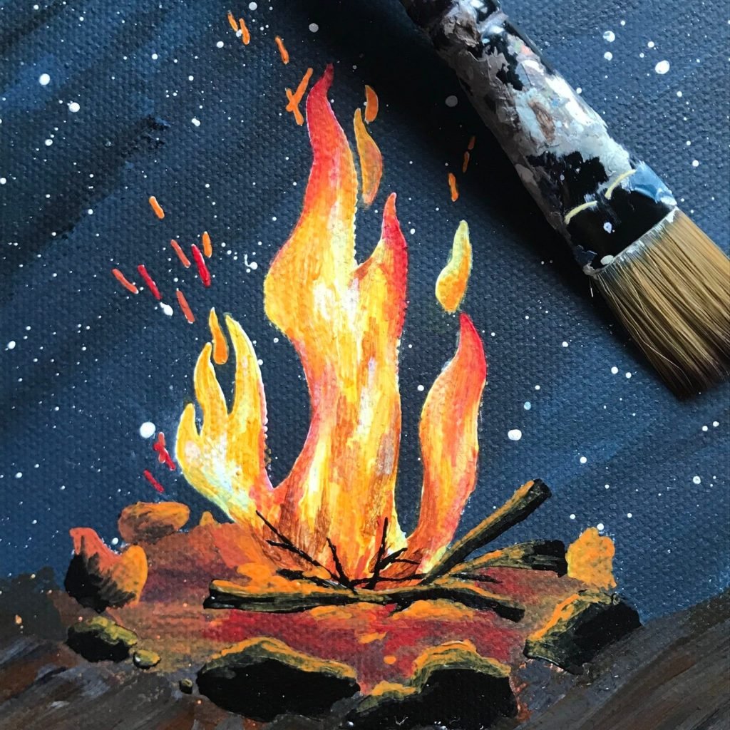 Огонь в камине рисунок красками