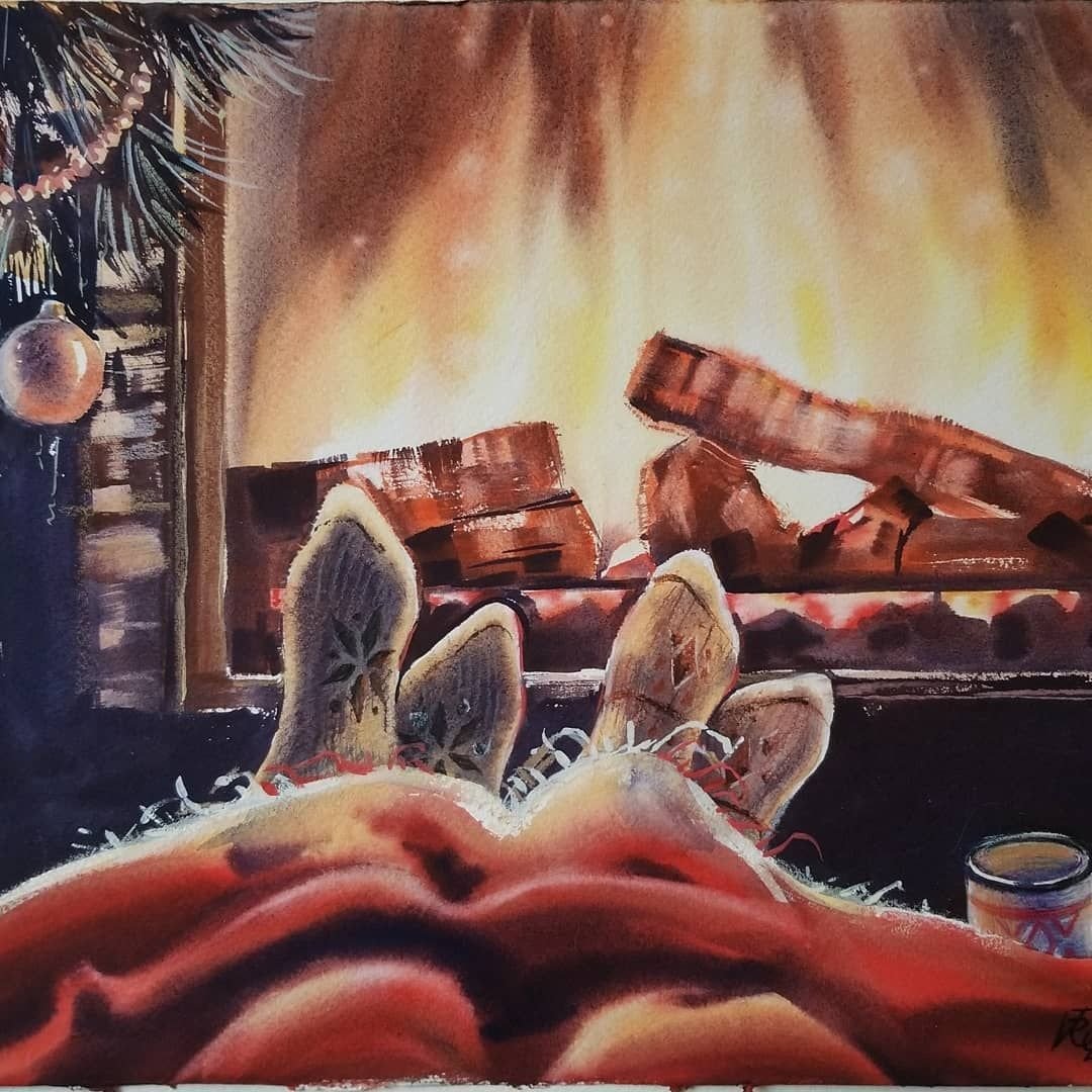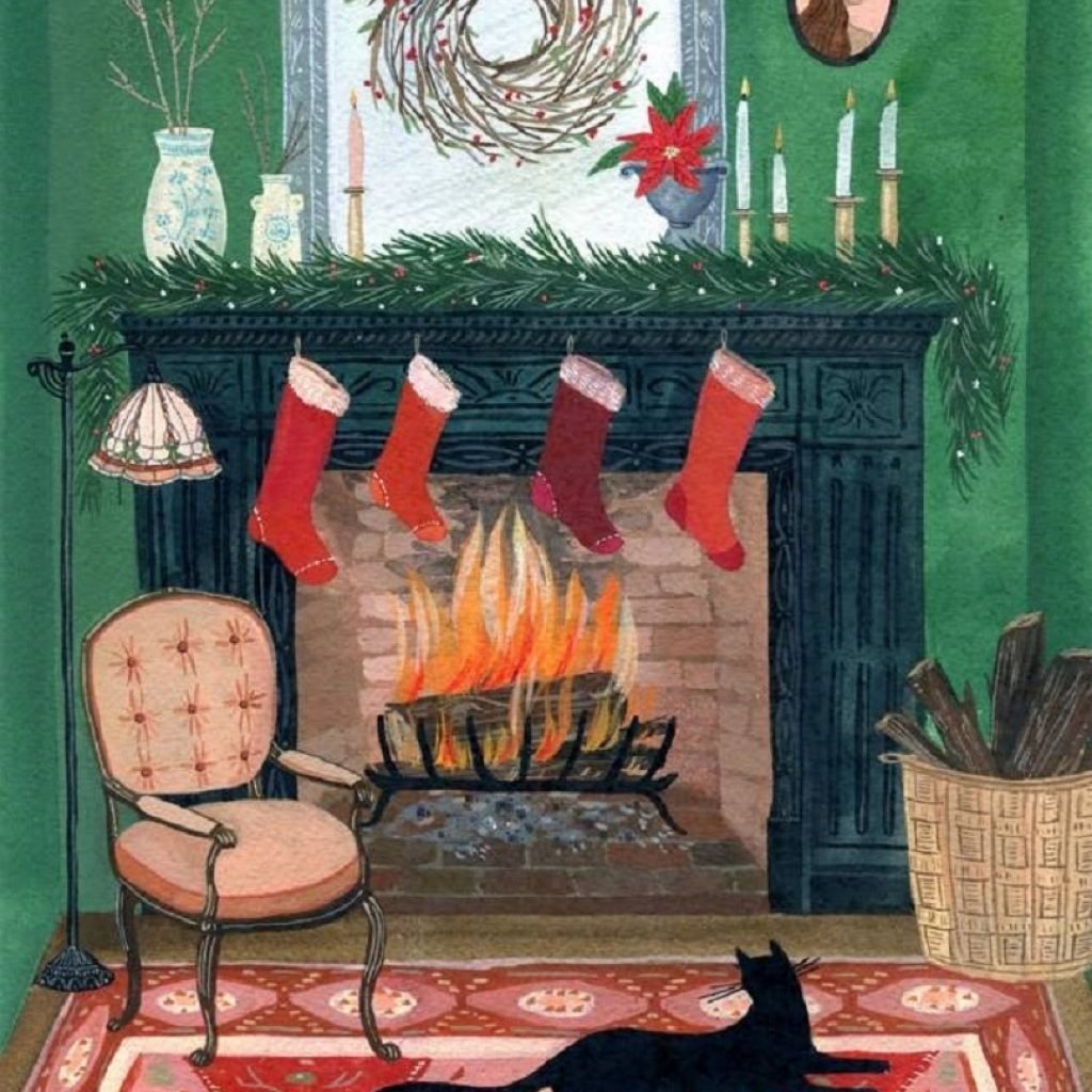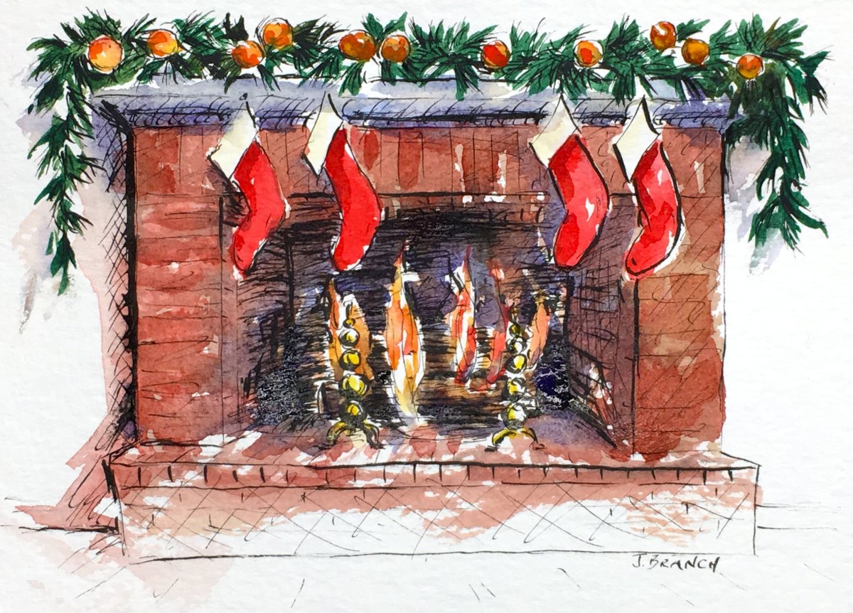 Рождественский камин акварель