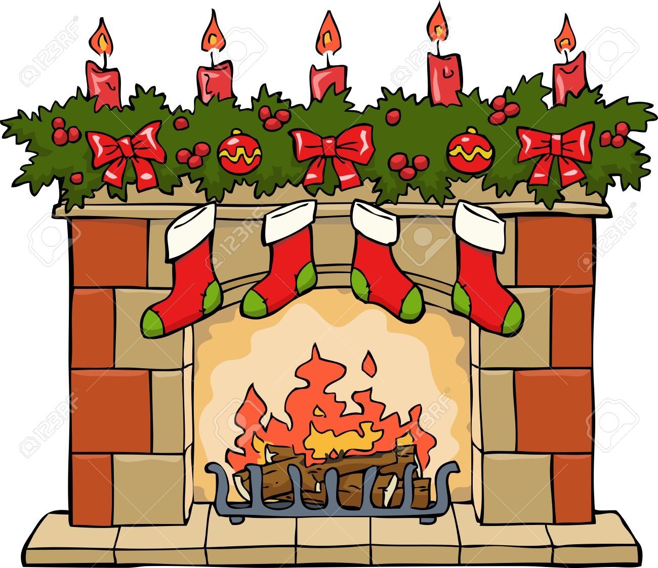Камин на новый год нарисовать