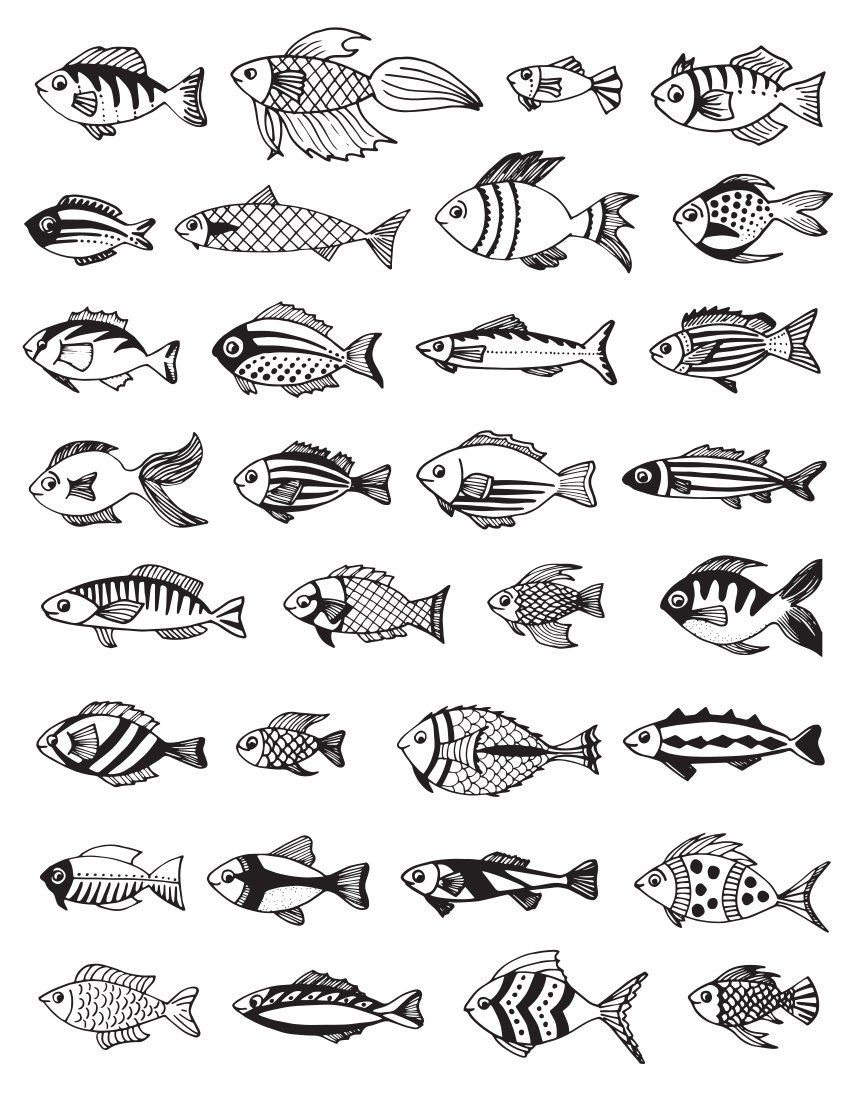 Рыбки трафарет много на одном листе