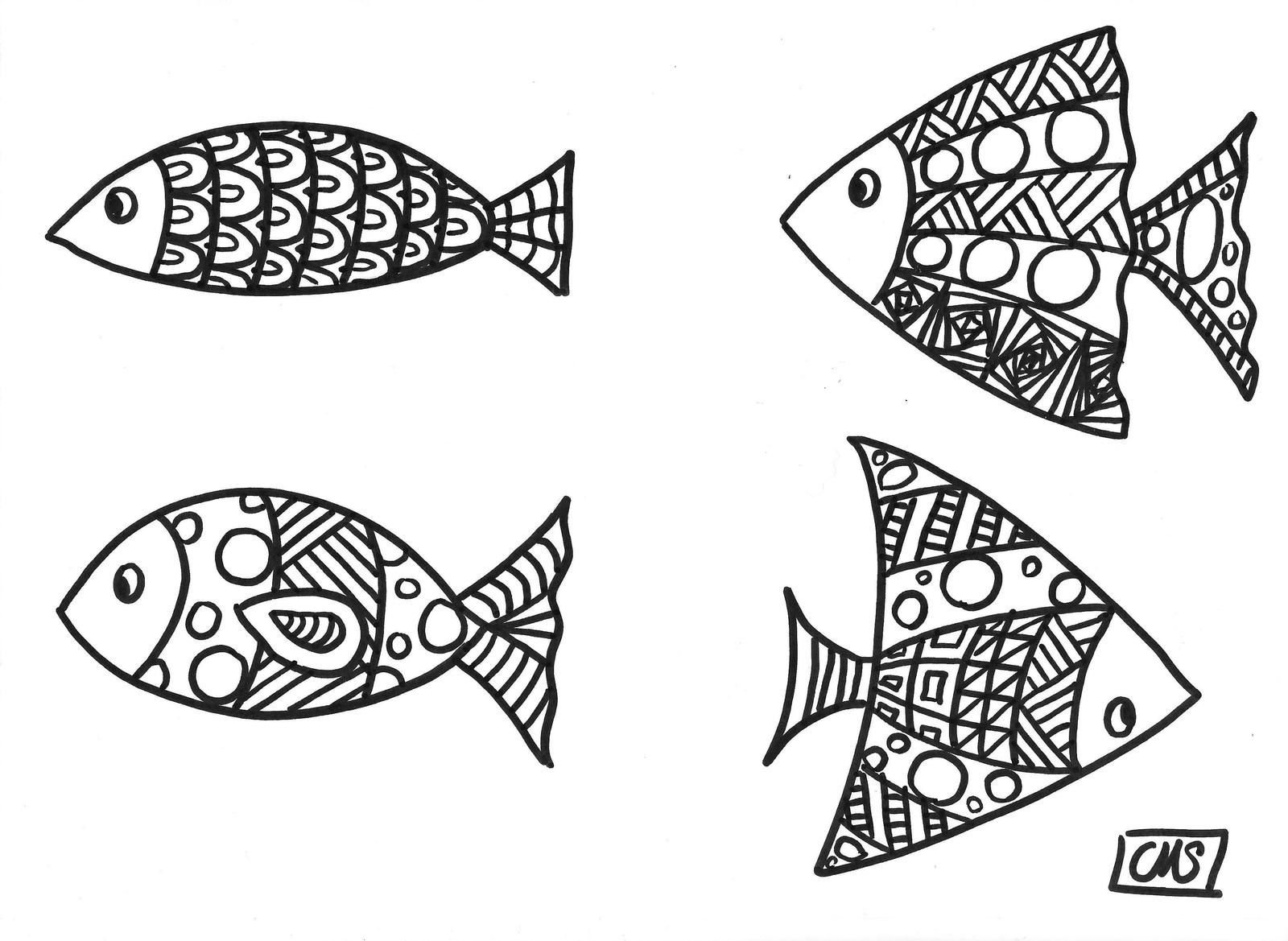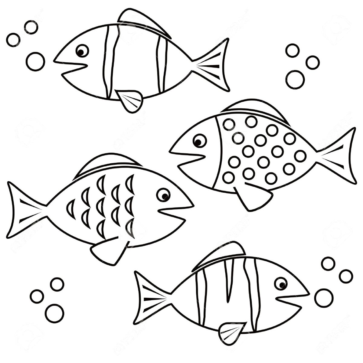 Рыбки раскраска схематично