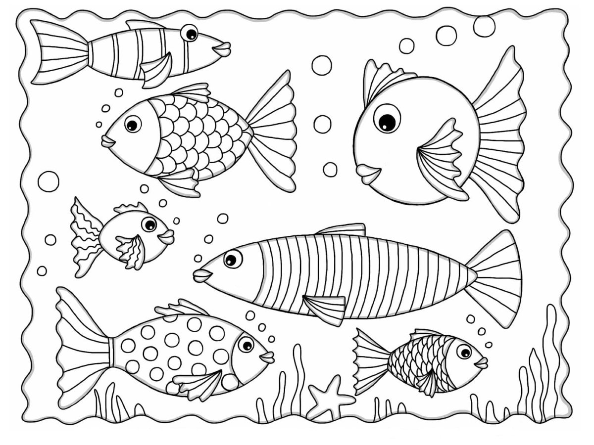 Раскраска мелкие рыбки для детей