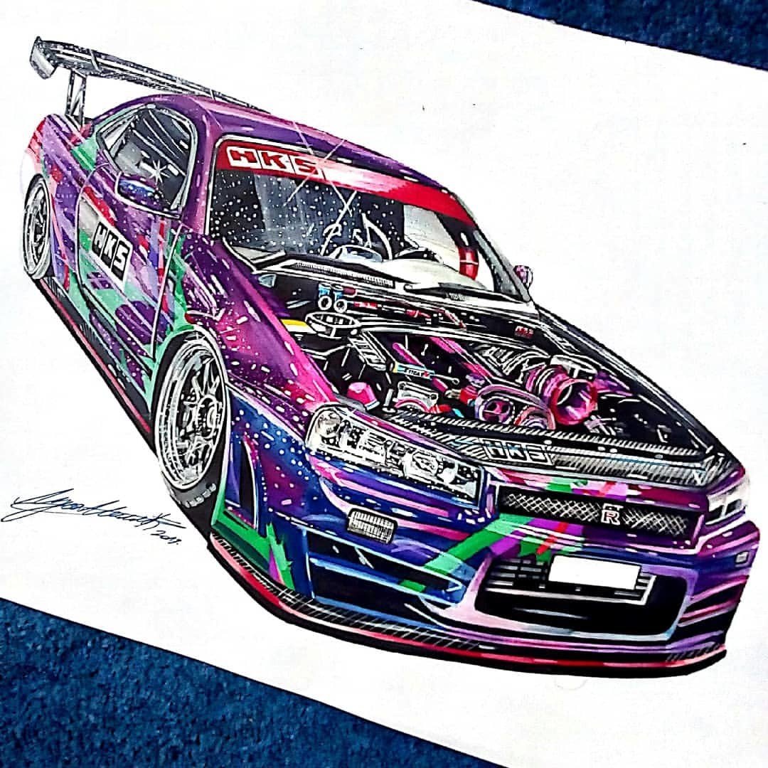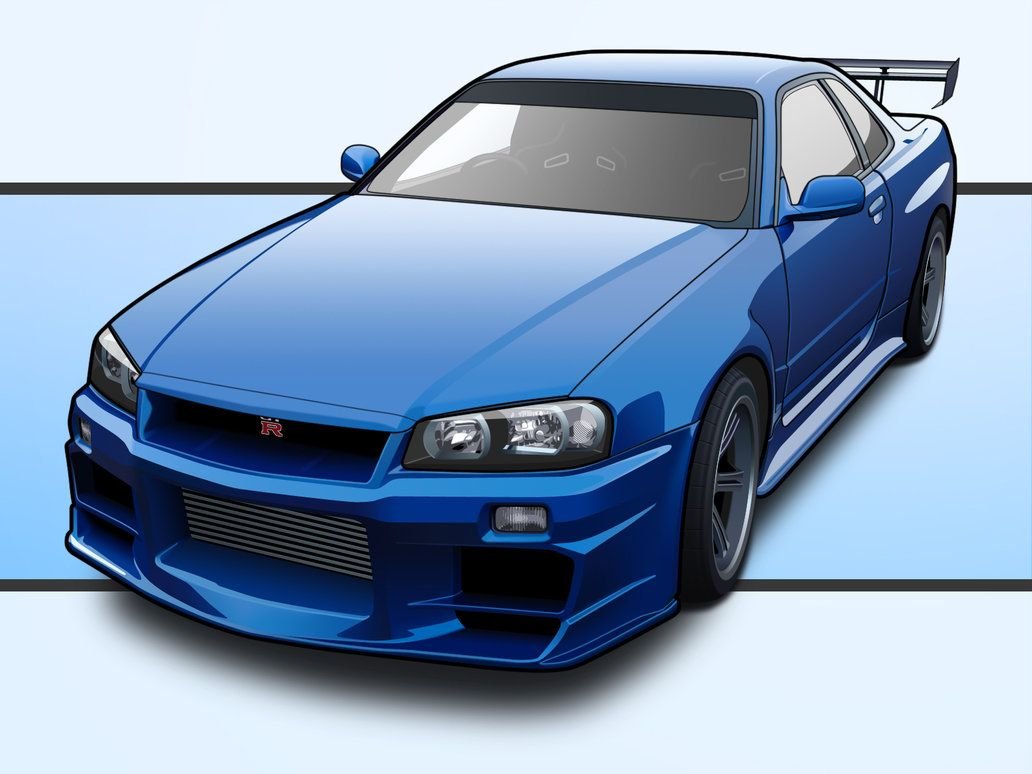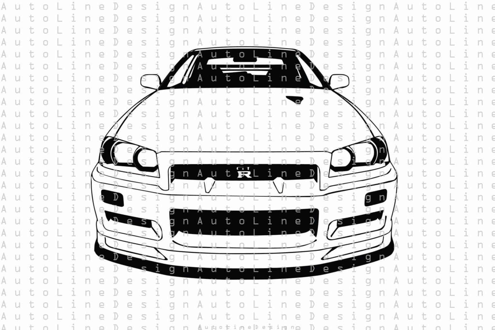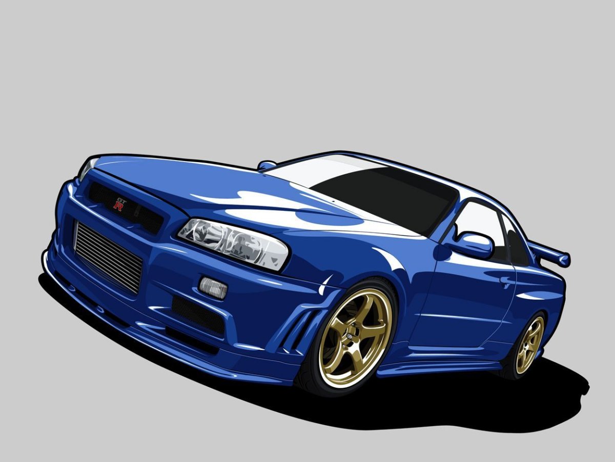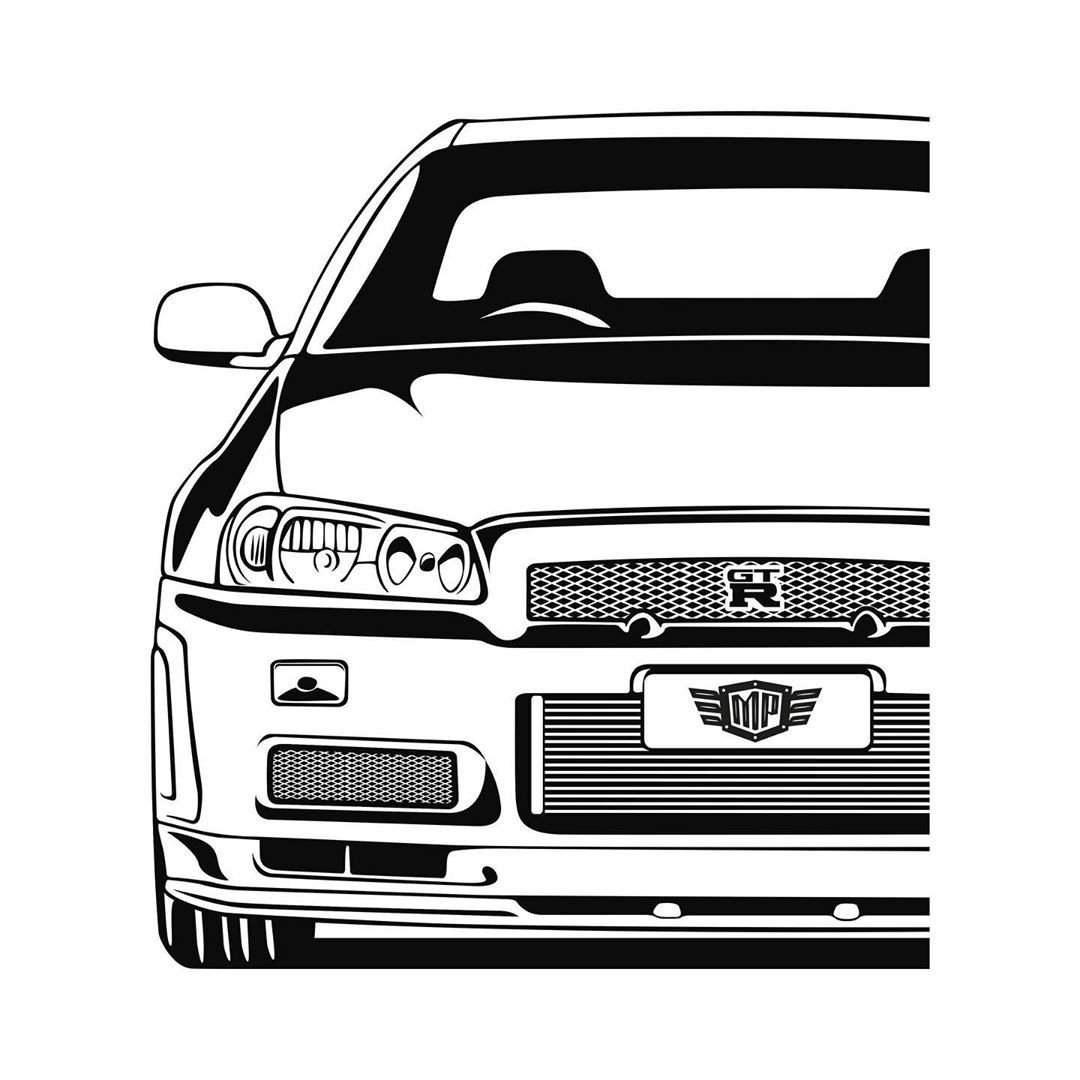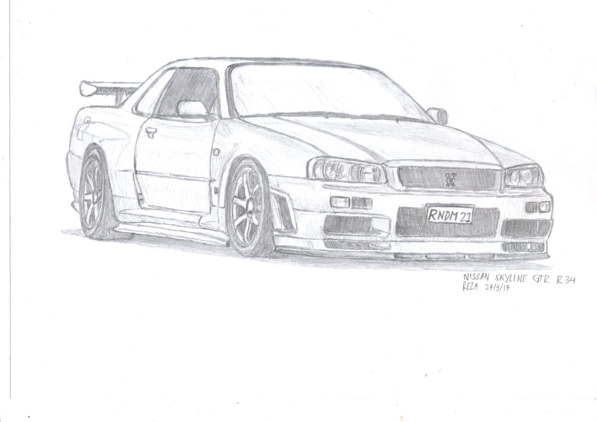 Ниссан Скайлайн ГТР 34 нарисовать сбоку