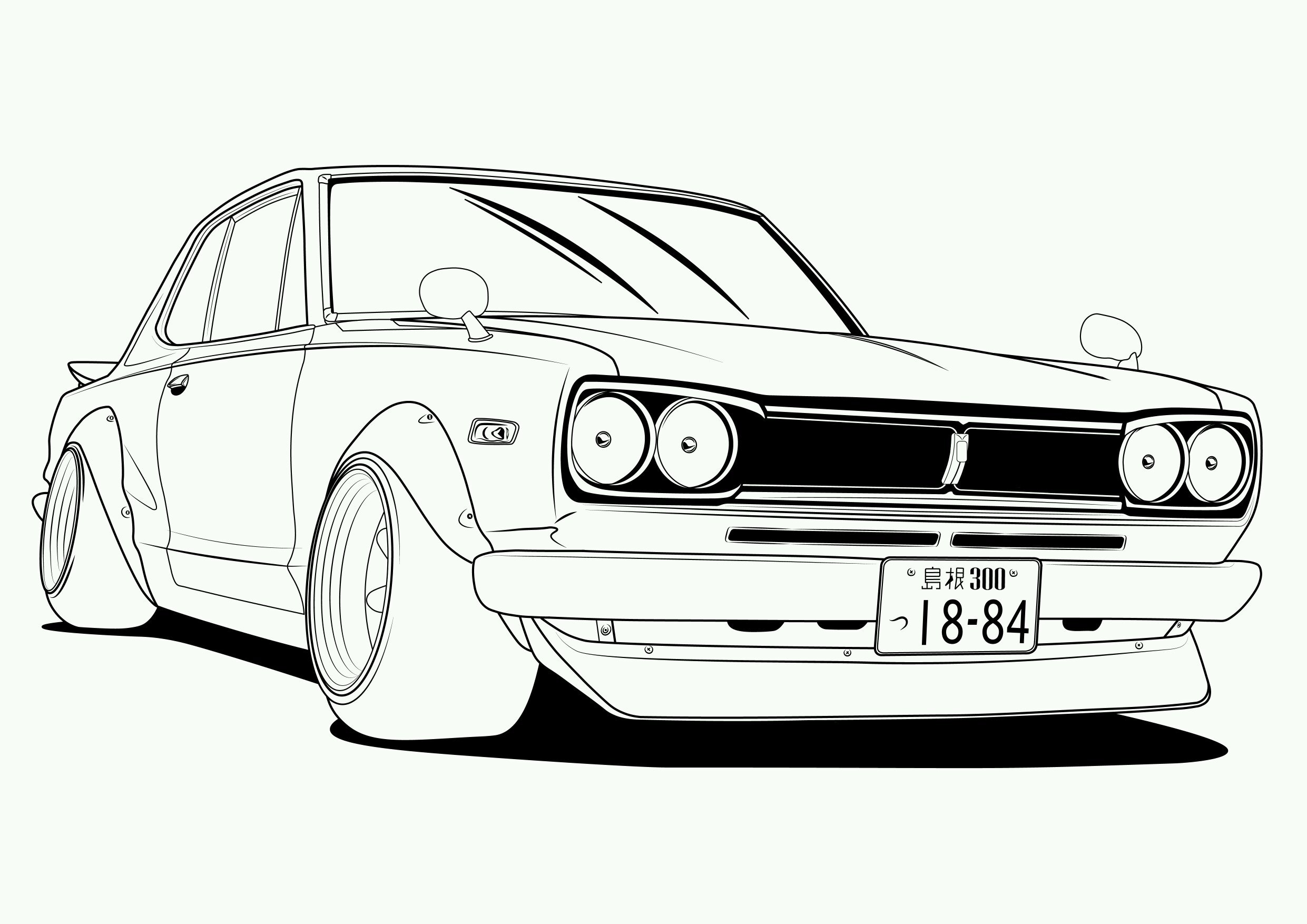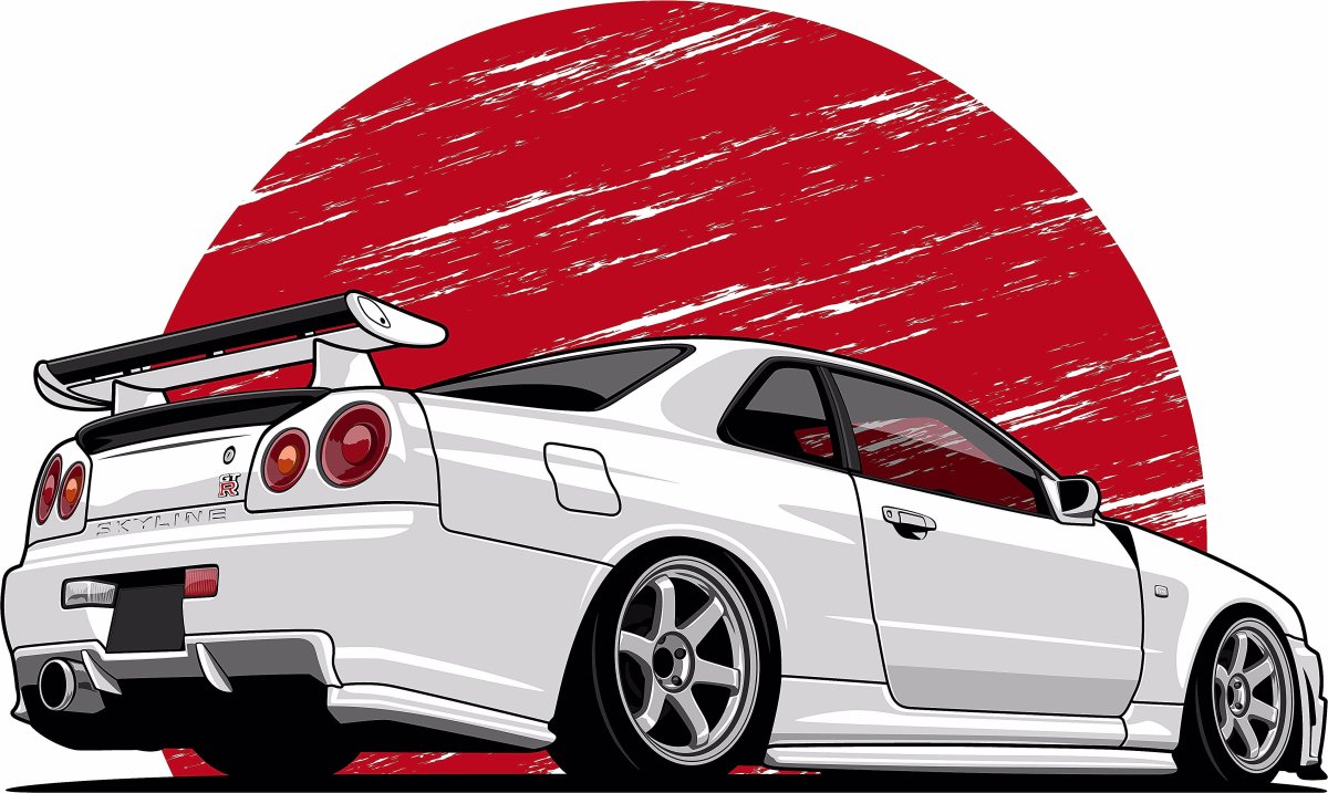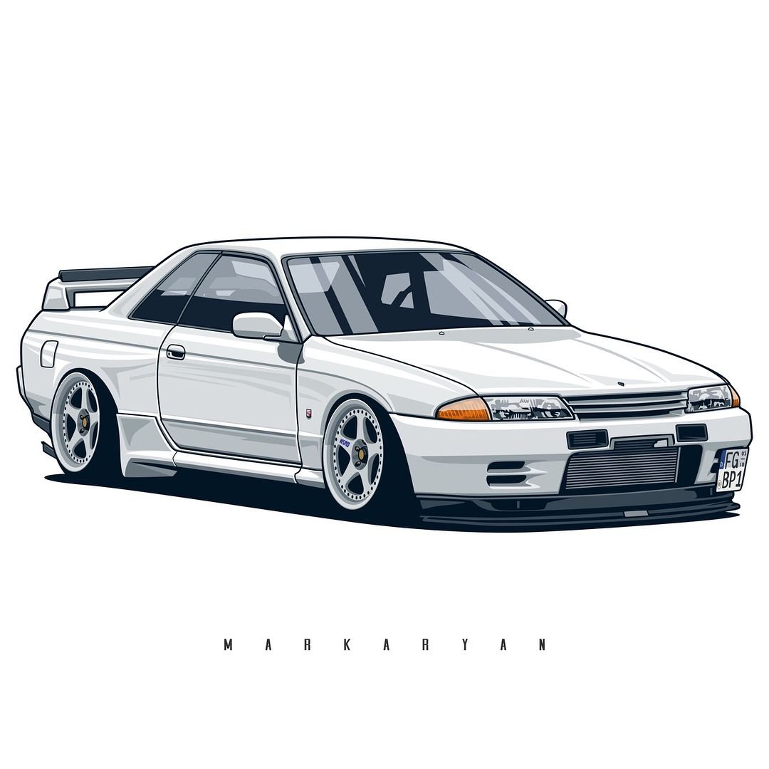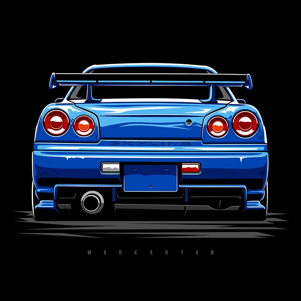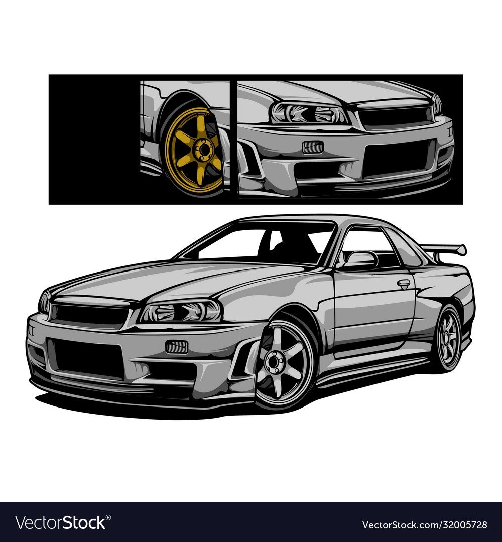 Ниссан Скайлайн ГТР 34 нарисовать сбоку
