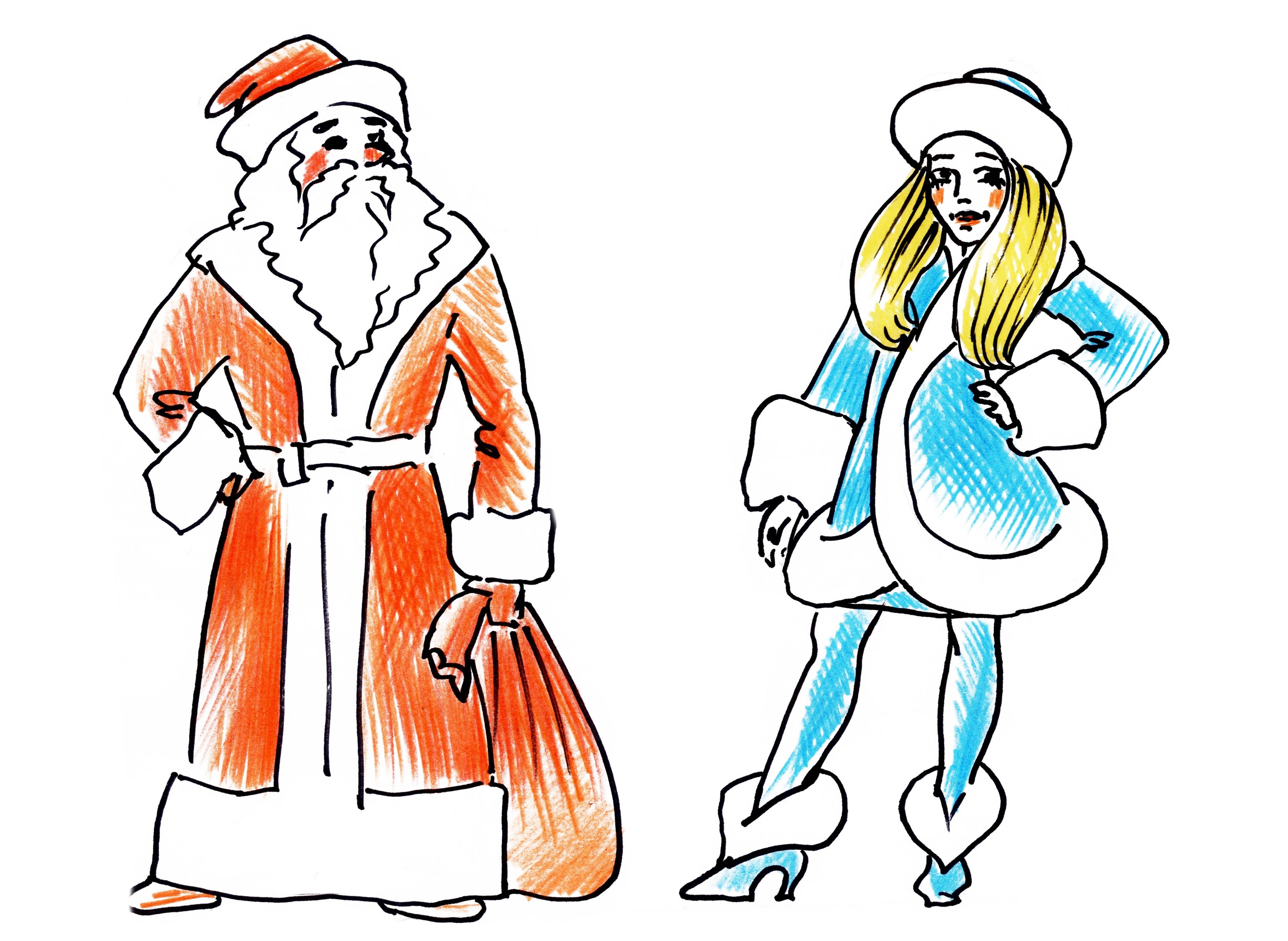 Рисунок Деда Мороза и Снегурочки для срисовки
