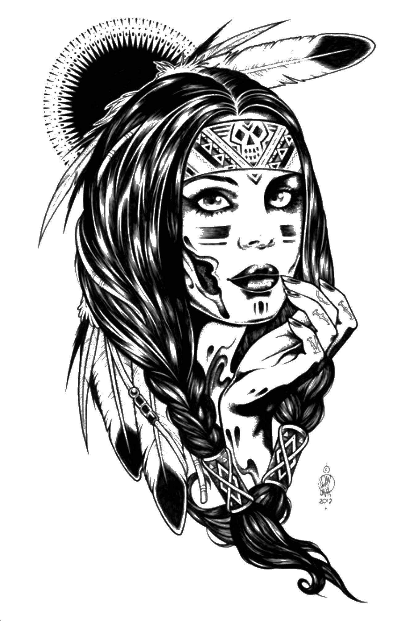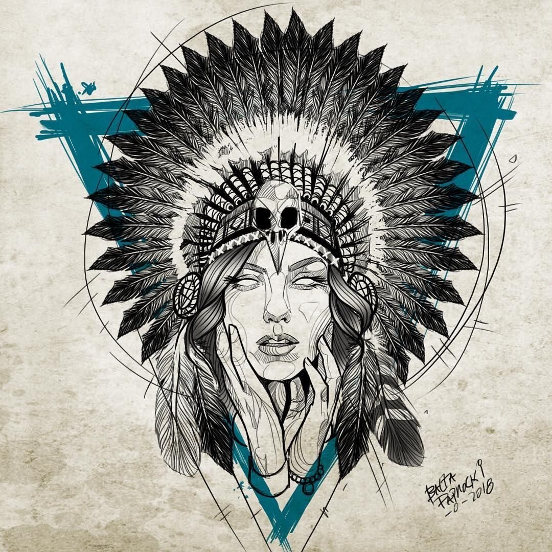 Тату девушка индеец