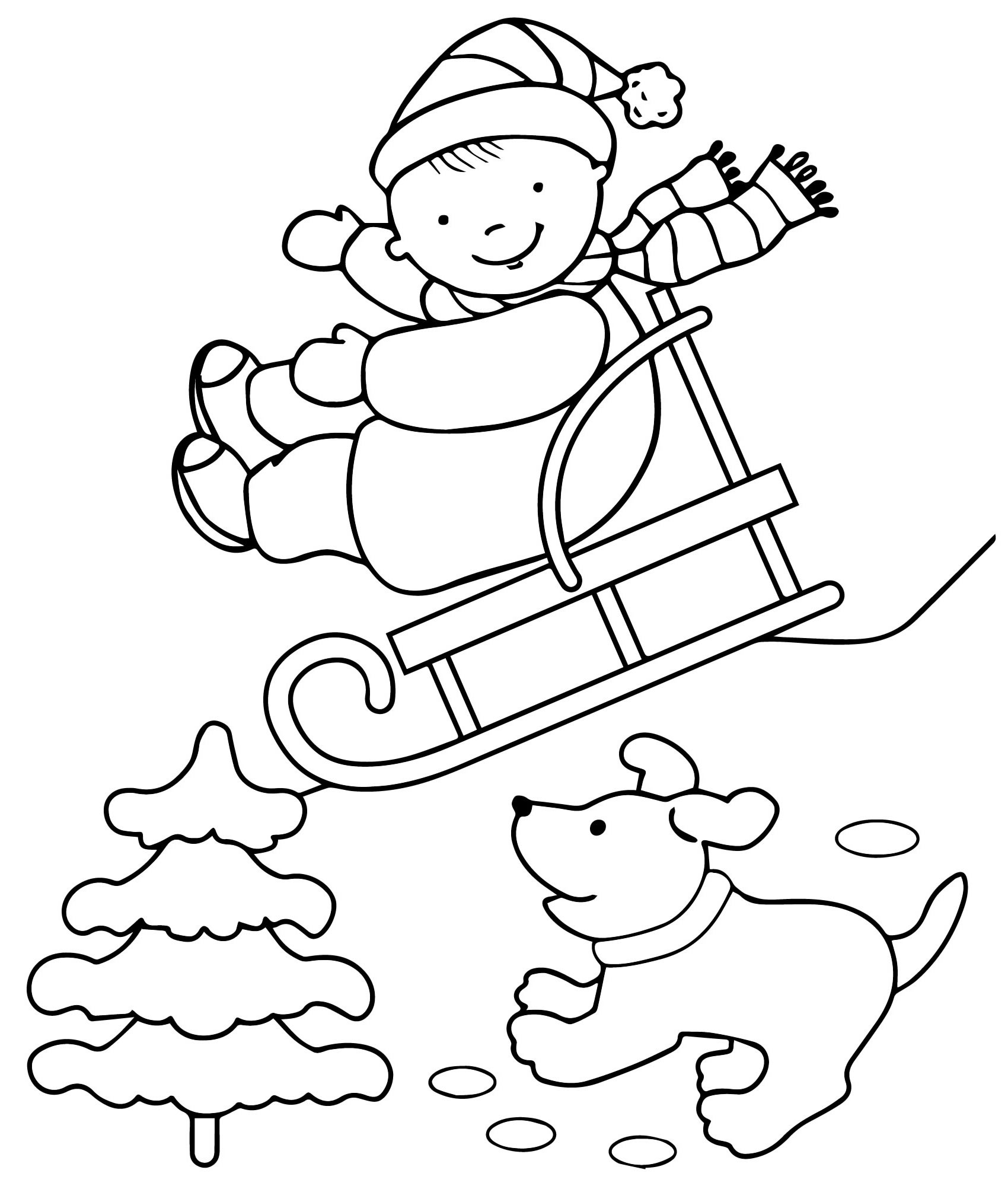 Санки раскраска для малышей