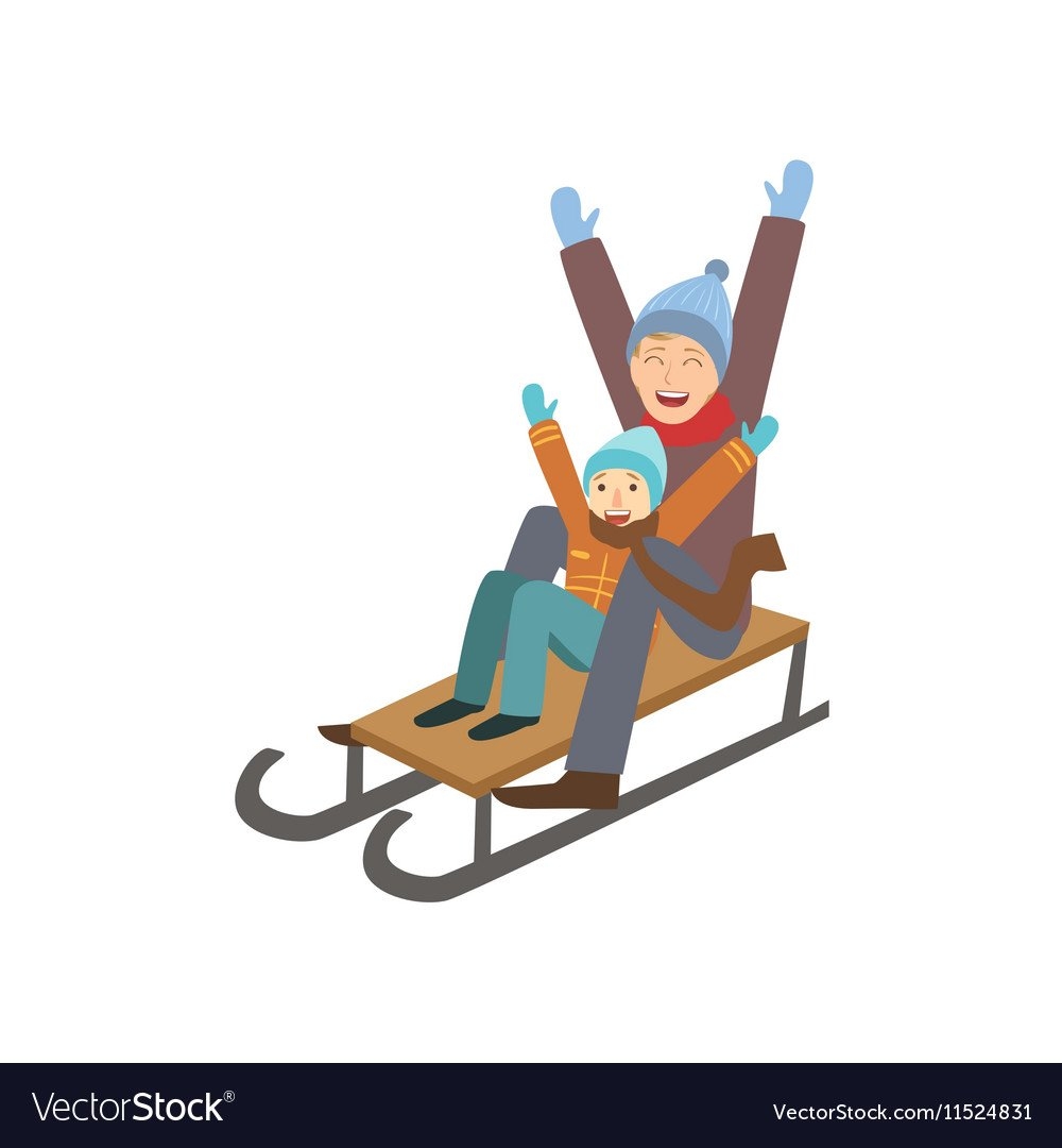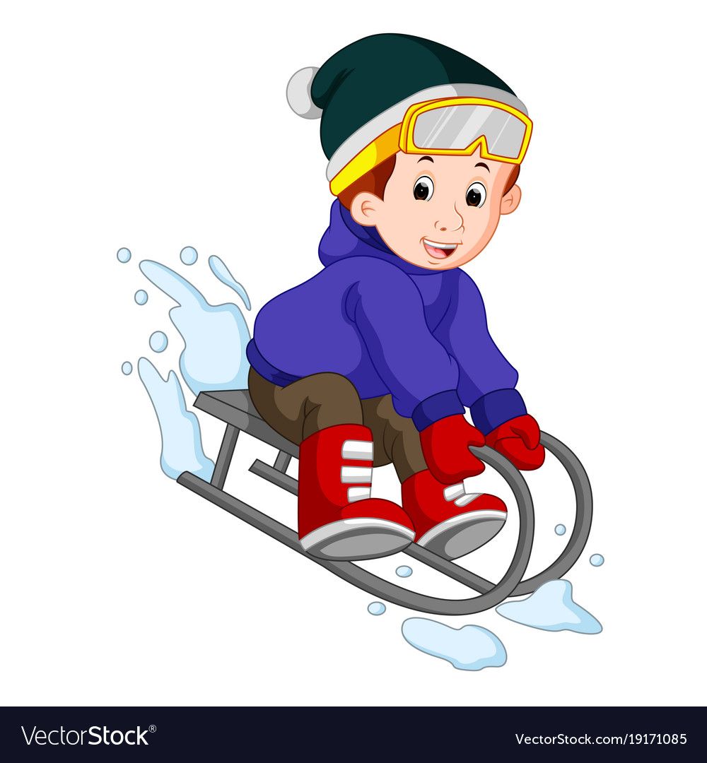 Кататься на санках на белом фоне