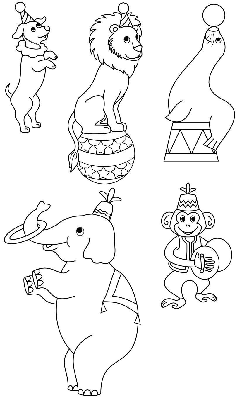 Цирковые животные раскраски