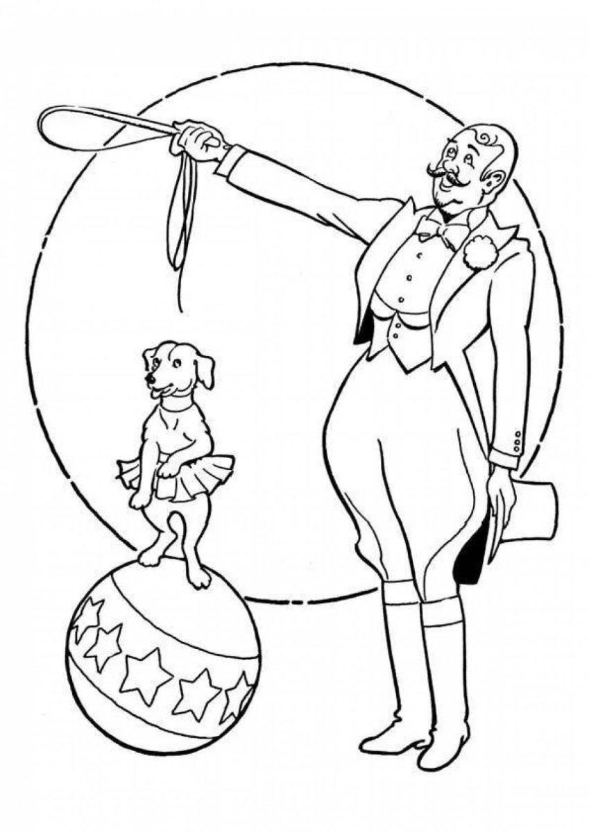 Раскраска дрессировщик в цирке