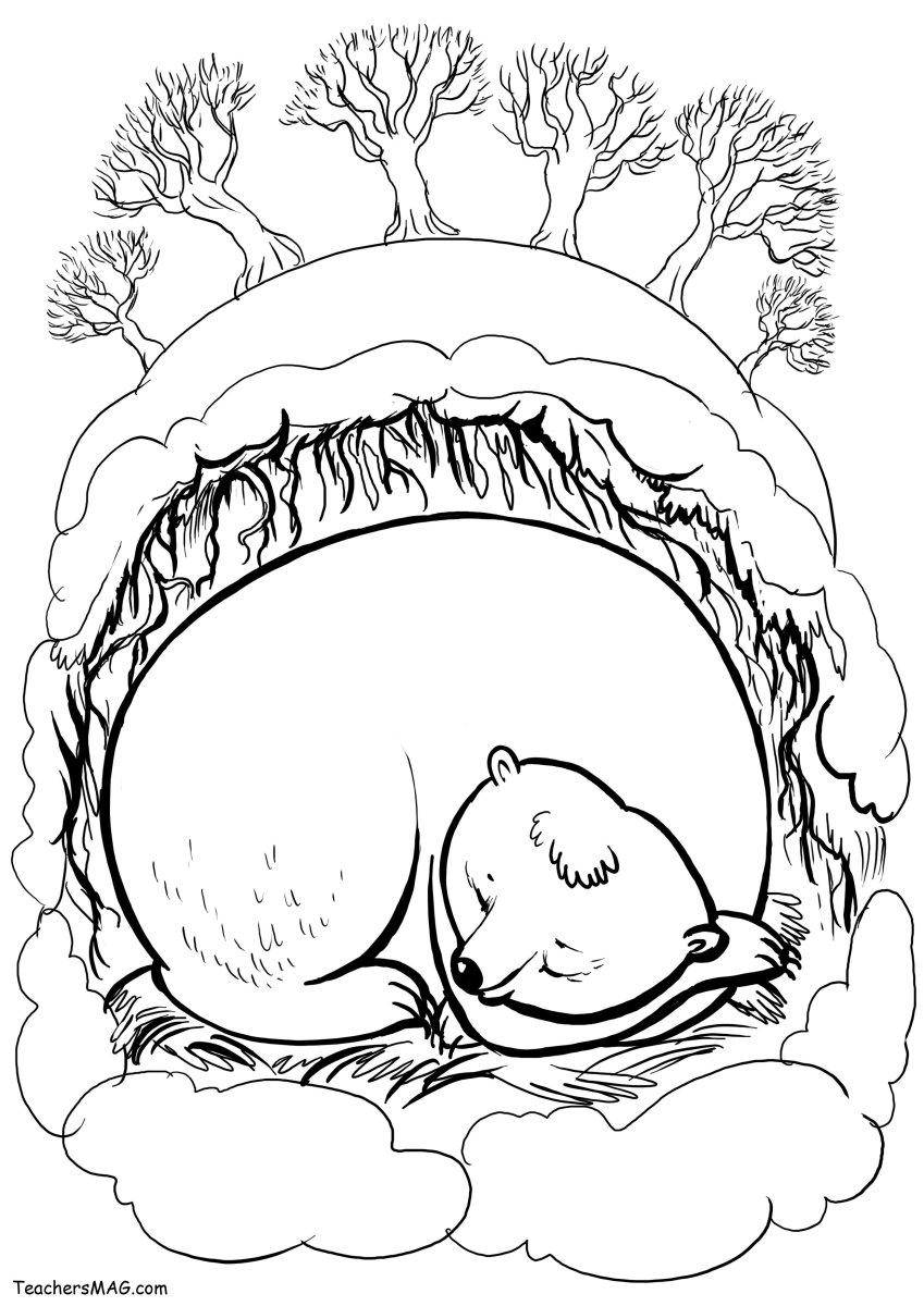 Медведь в берлоге раскраска