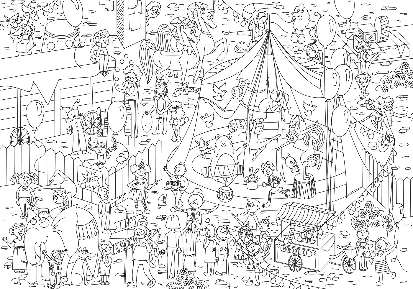 Цирк. Детская раскраска