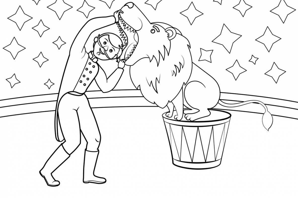 Лев в цирке раскраска