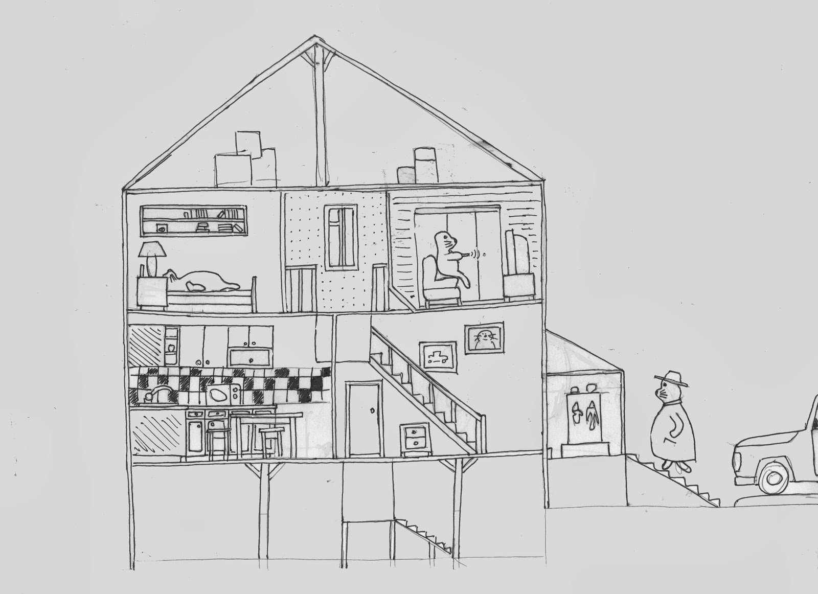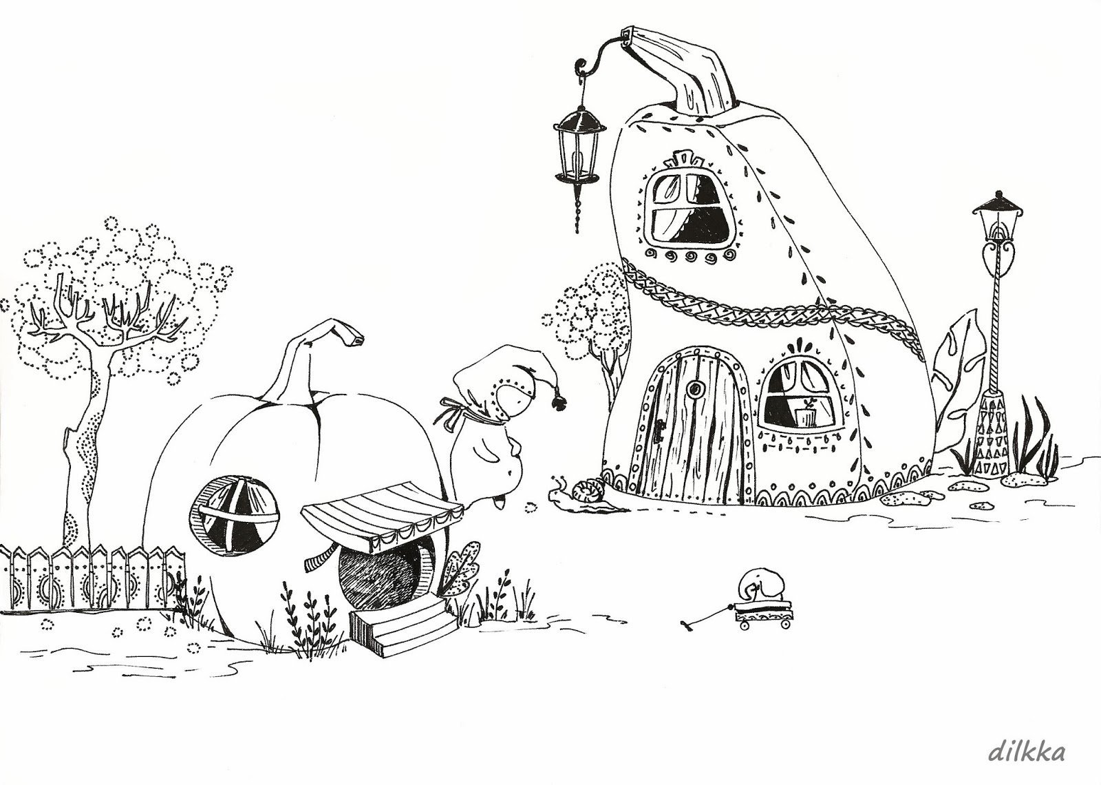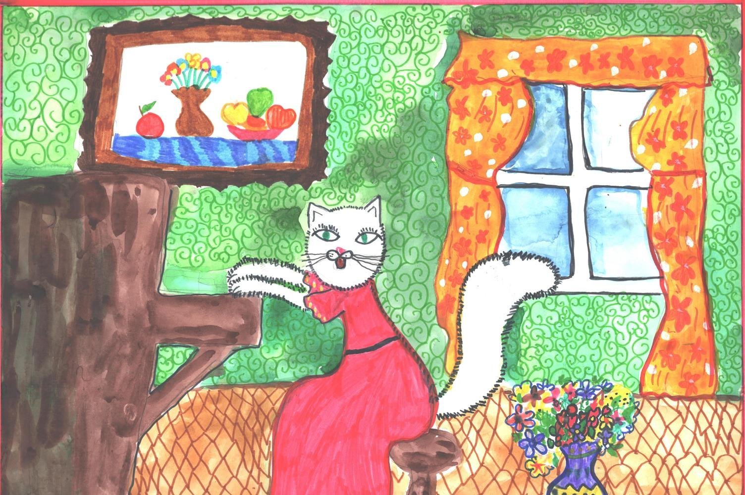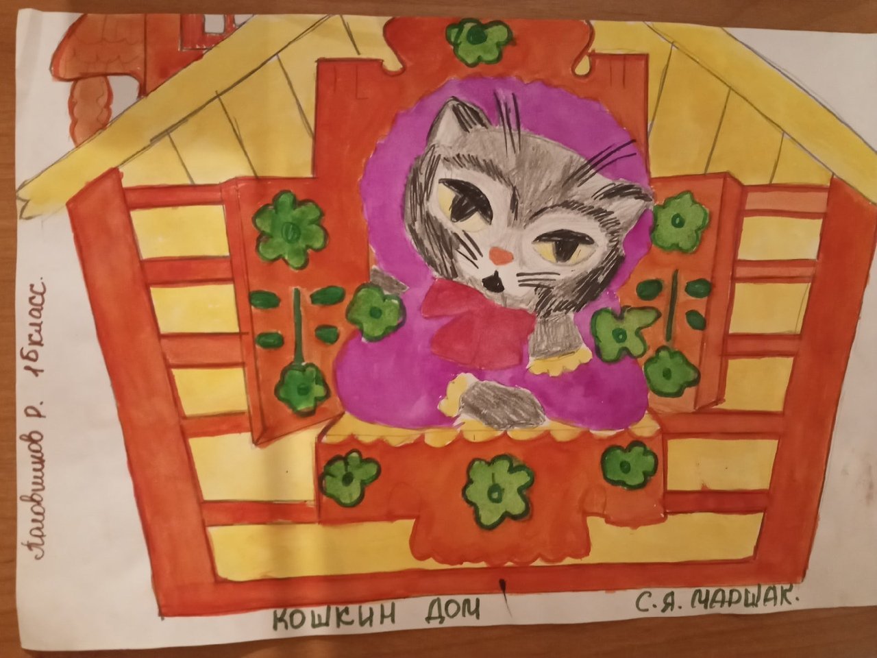 Иллюстрация к пьесе сказке Кошкин дом Маршака