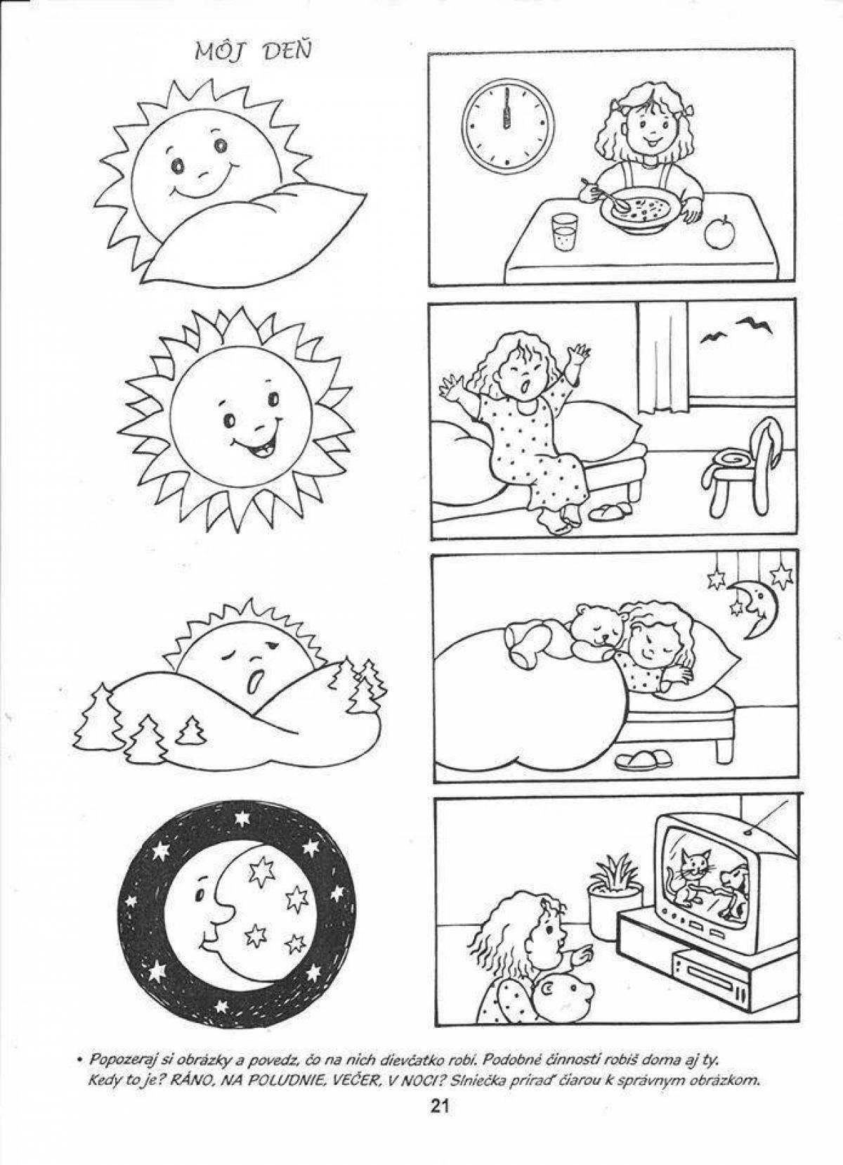 Раскраски части суток для дошкольников