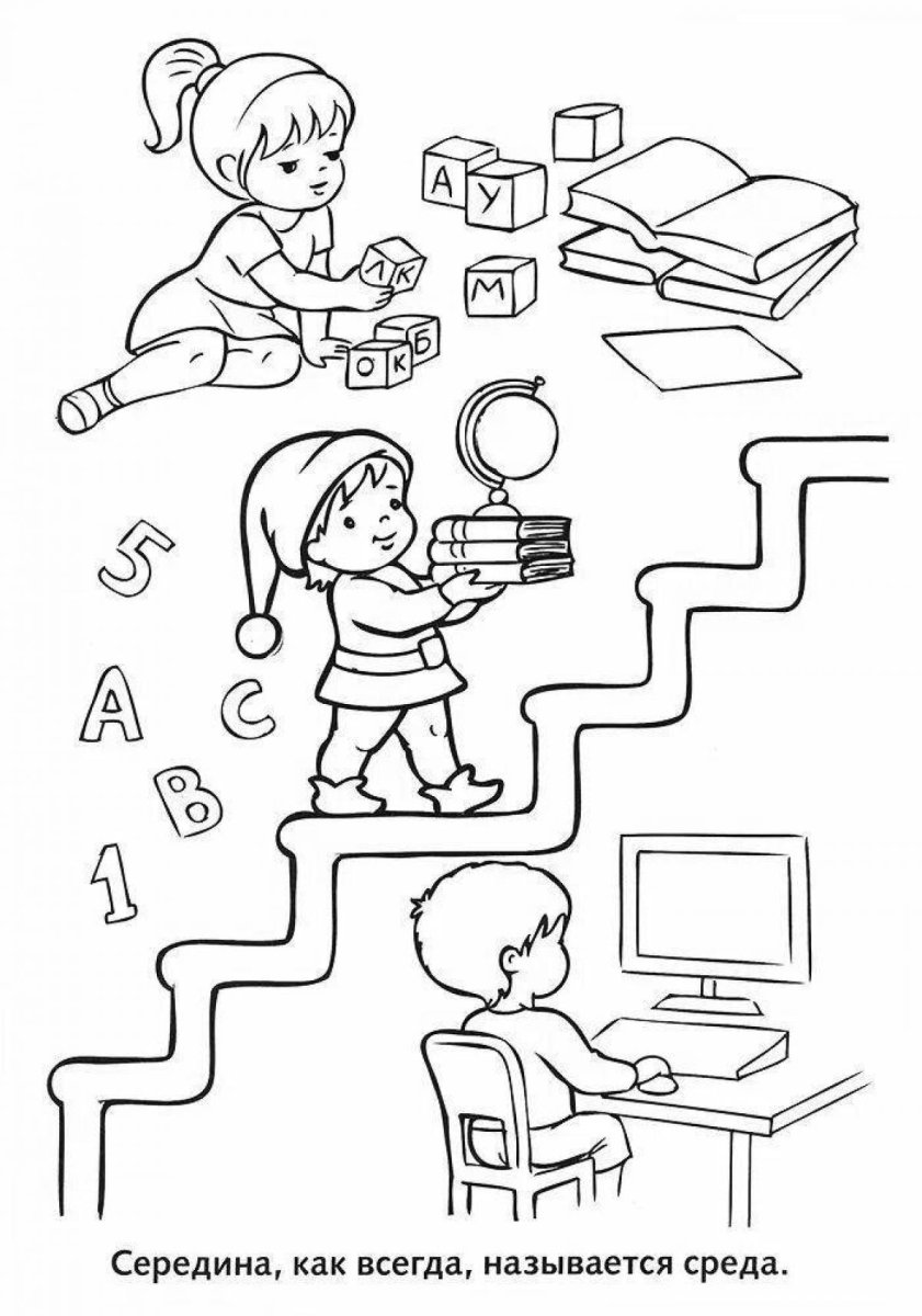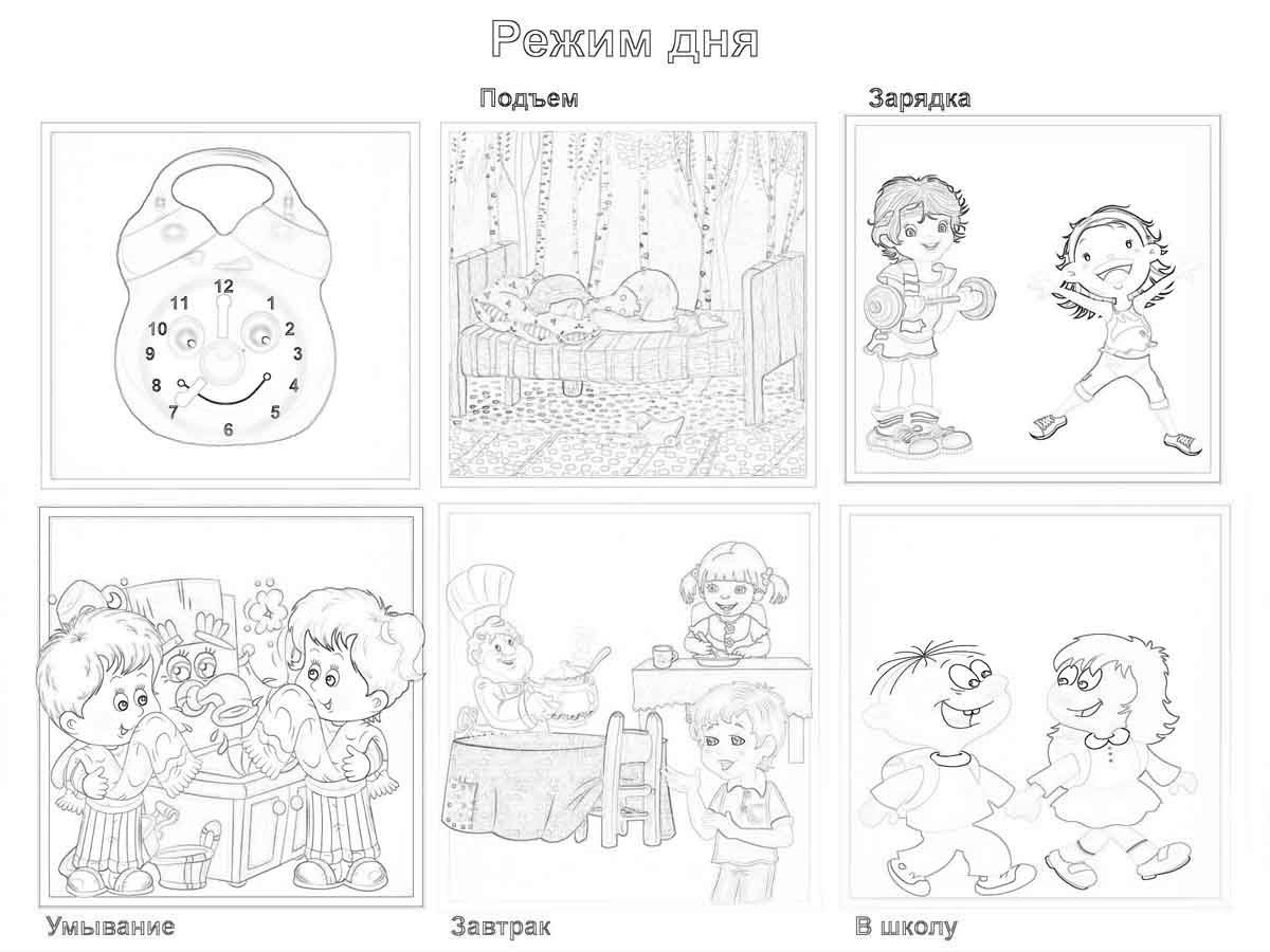 Режим дня школьника картинки раскраски