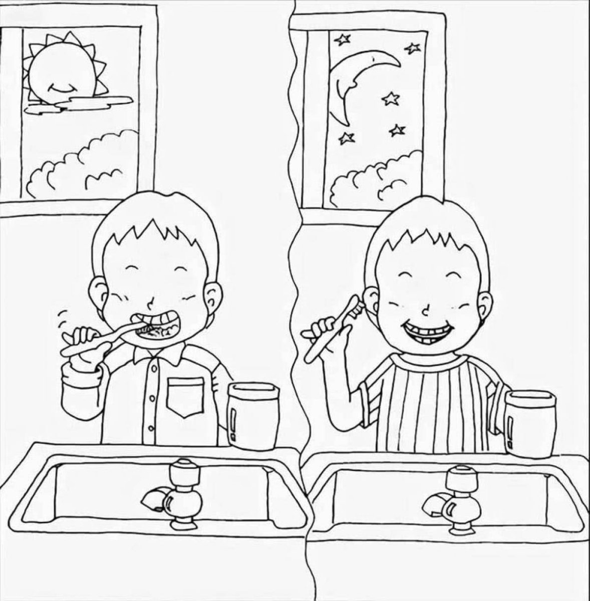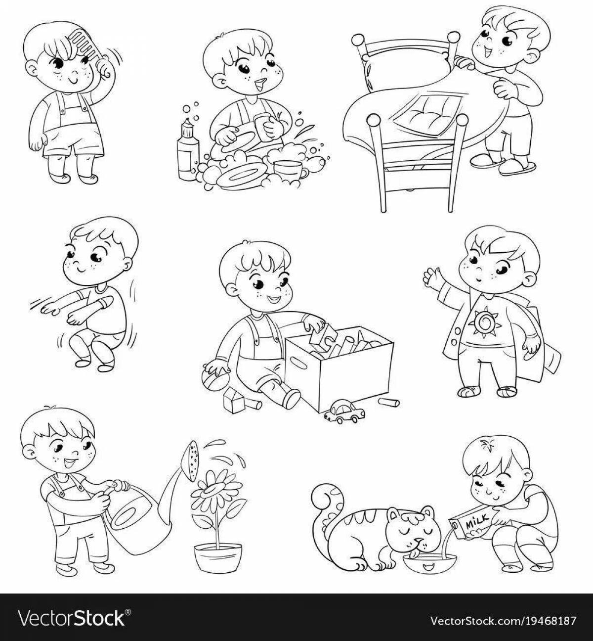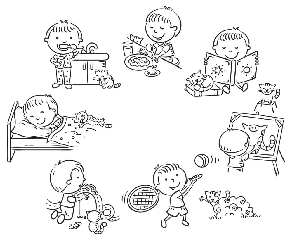 Раскраски дети мальчики режим дня