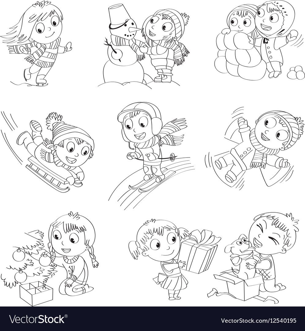 Дети вектор чб