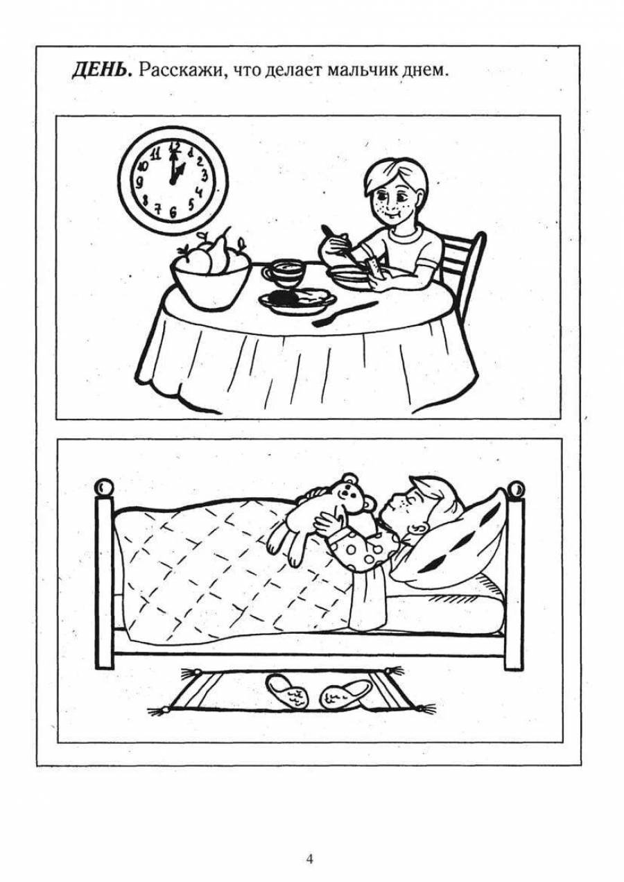 Распорядок дня раскраска