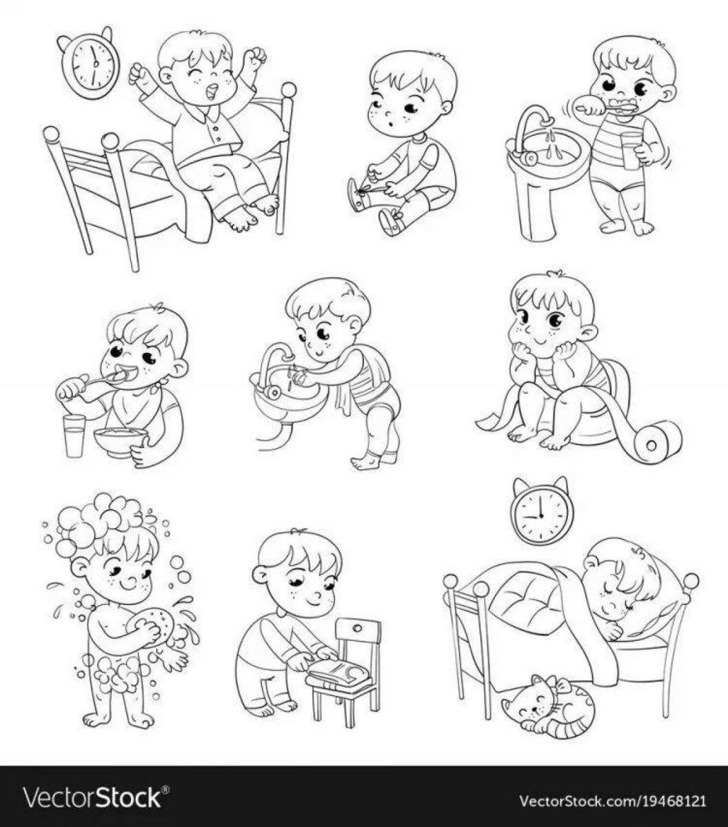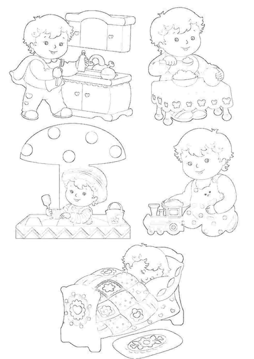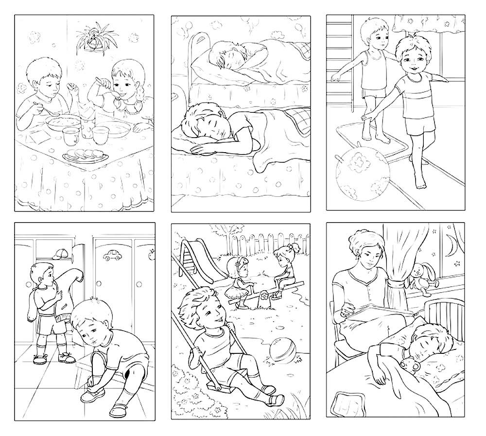 Раскраски на тему распорядок дня