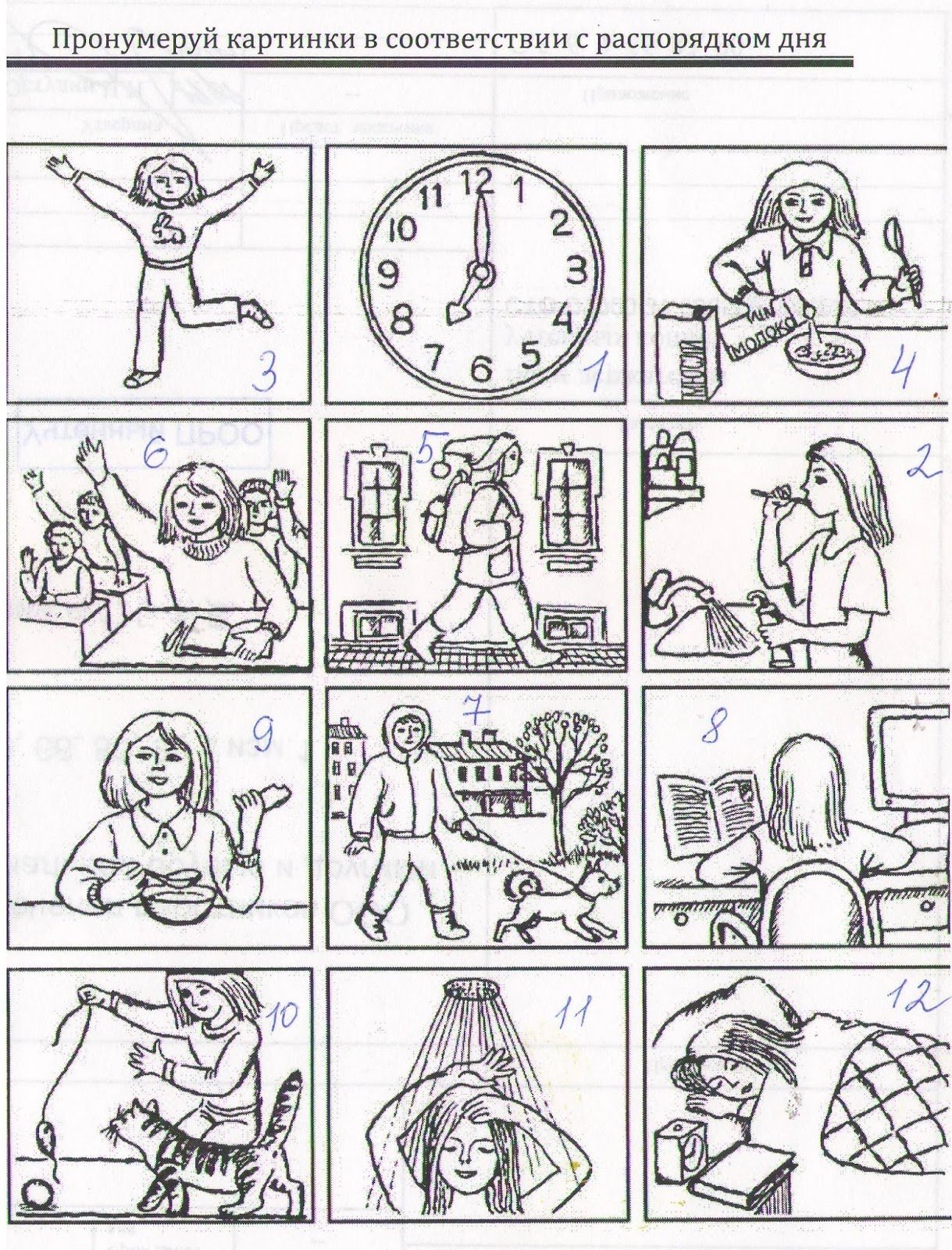 Распорядок дня рисунок чб