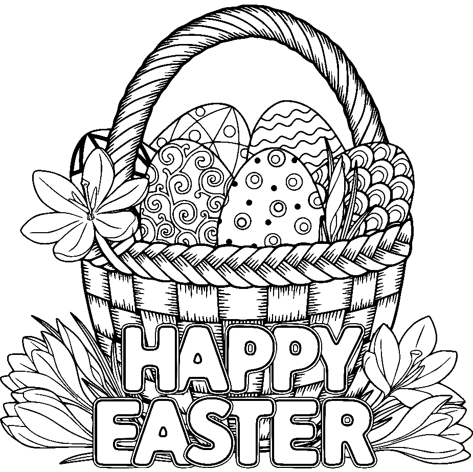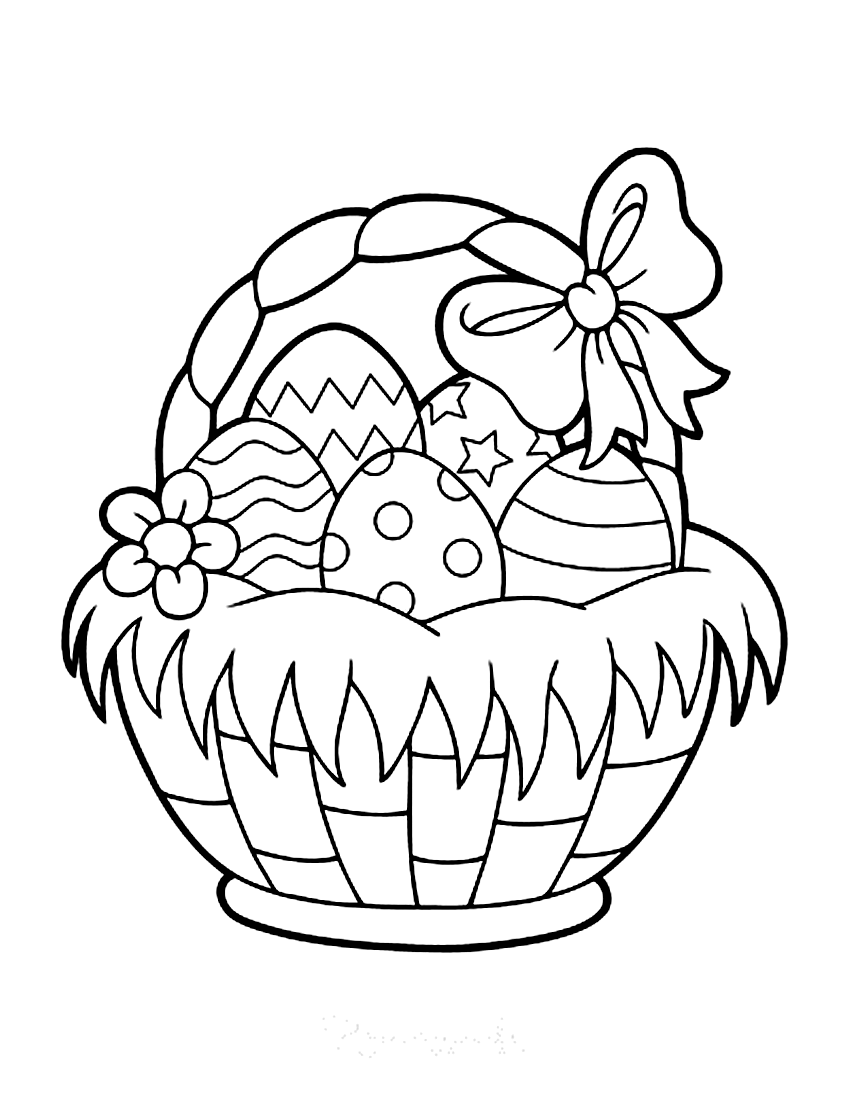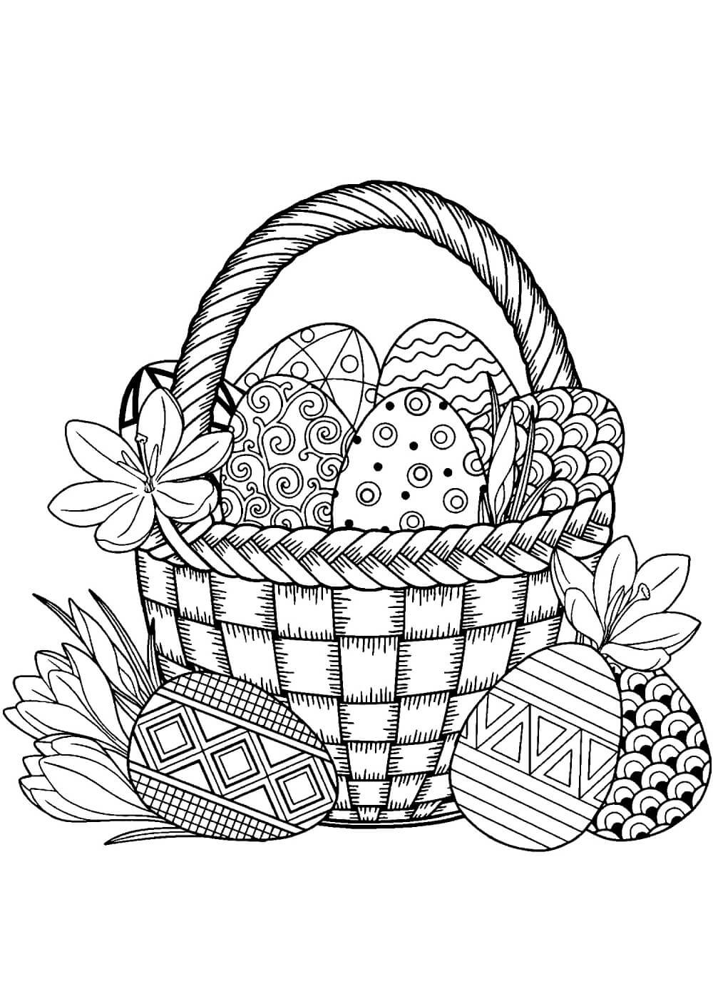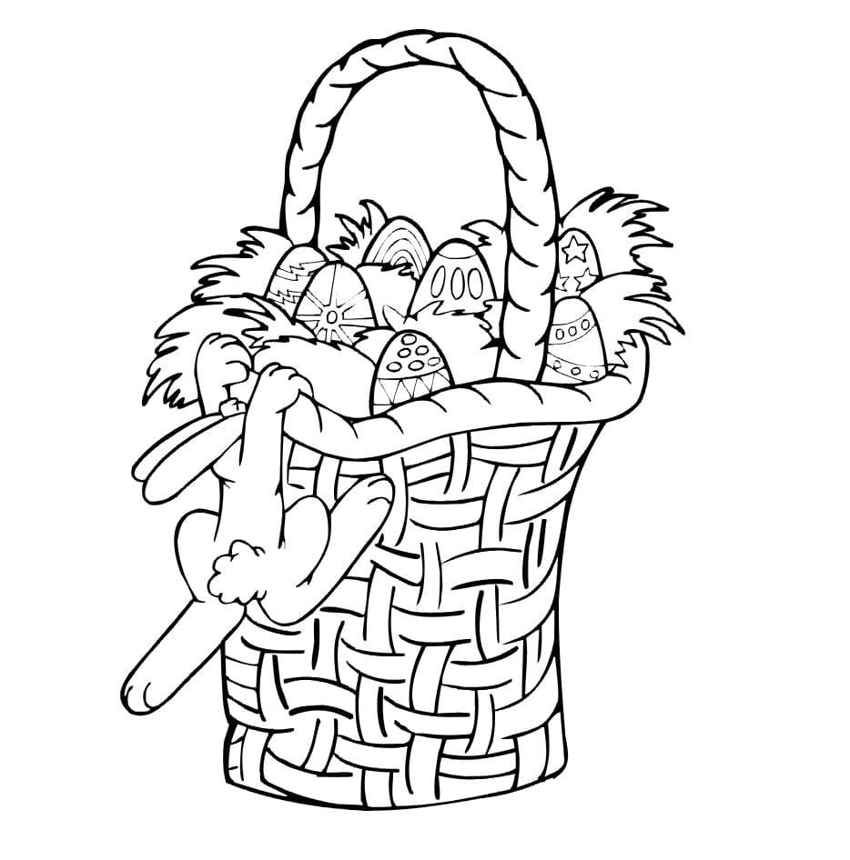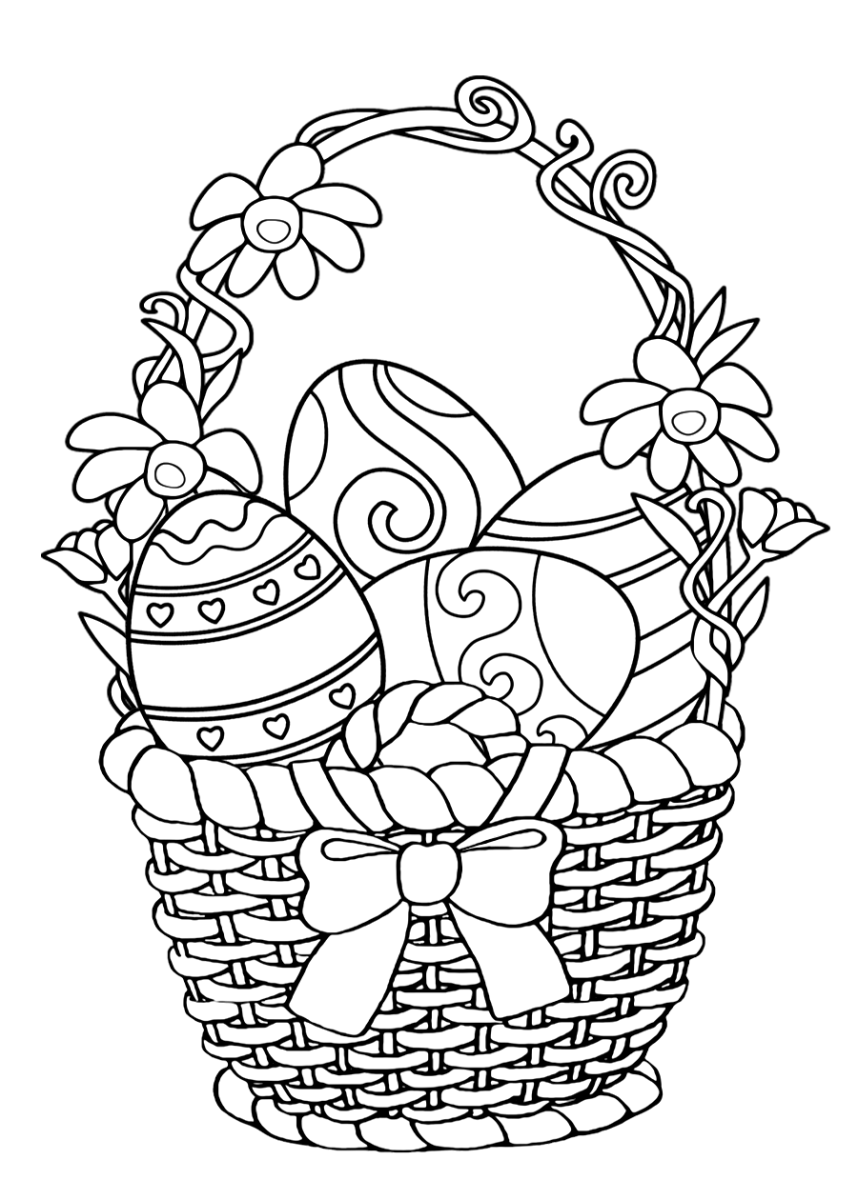 Раскраска пасхальные яйца в корзине