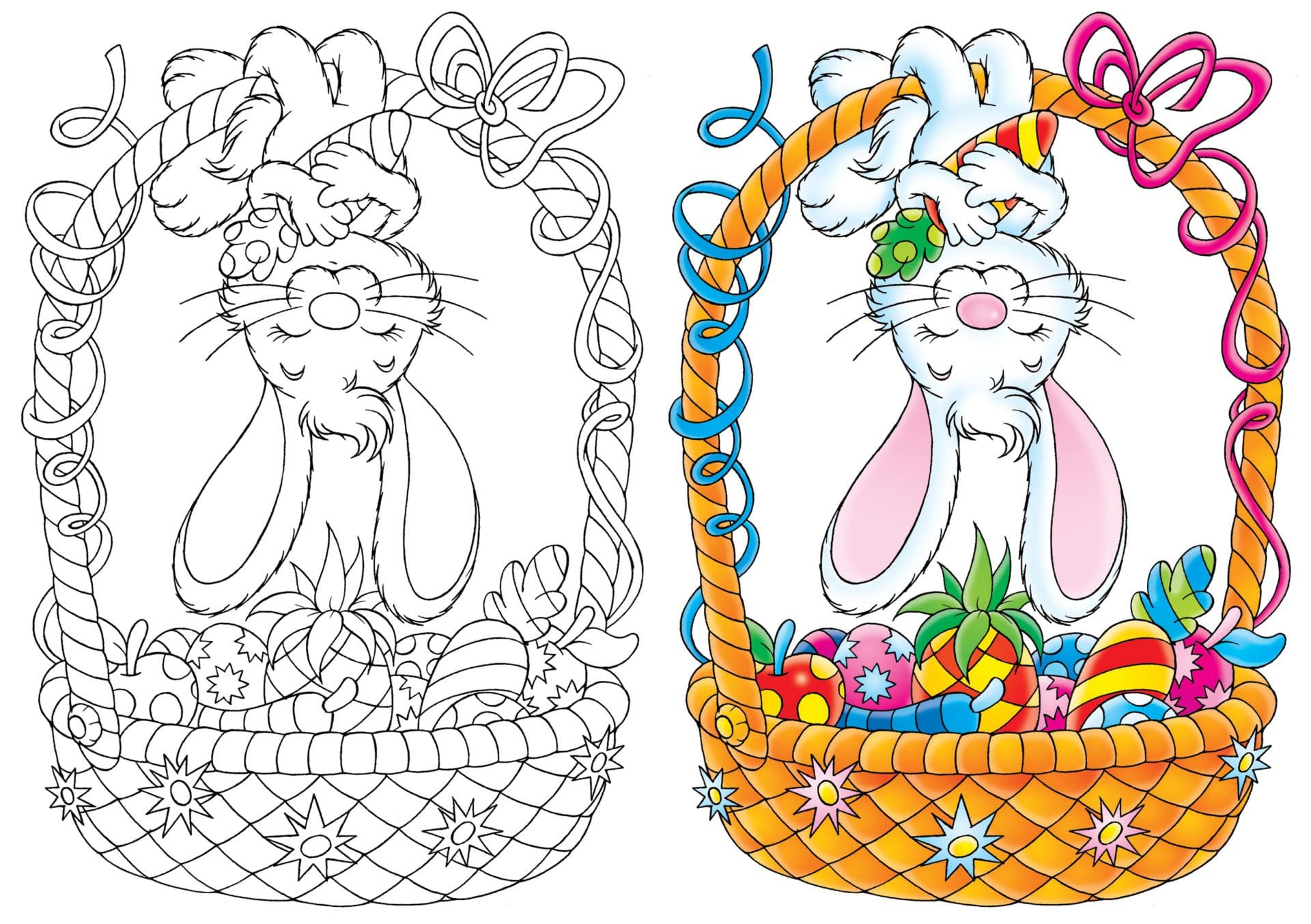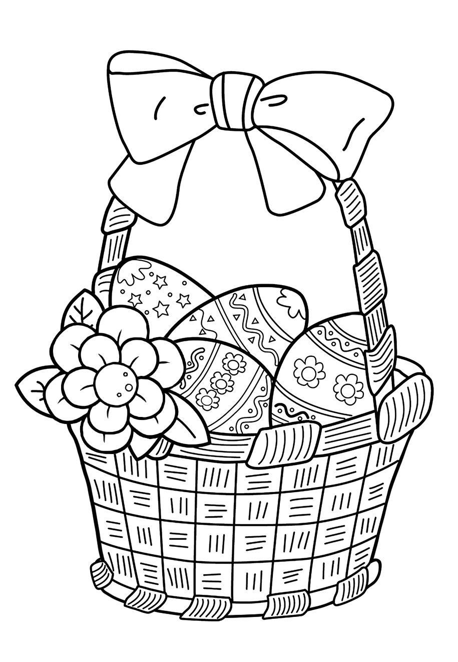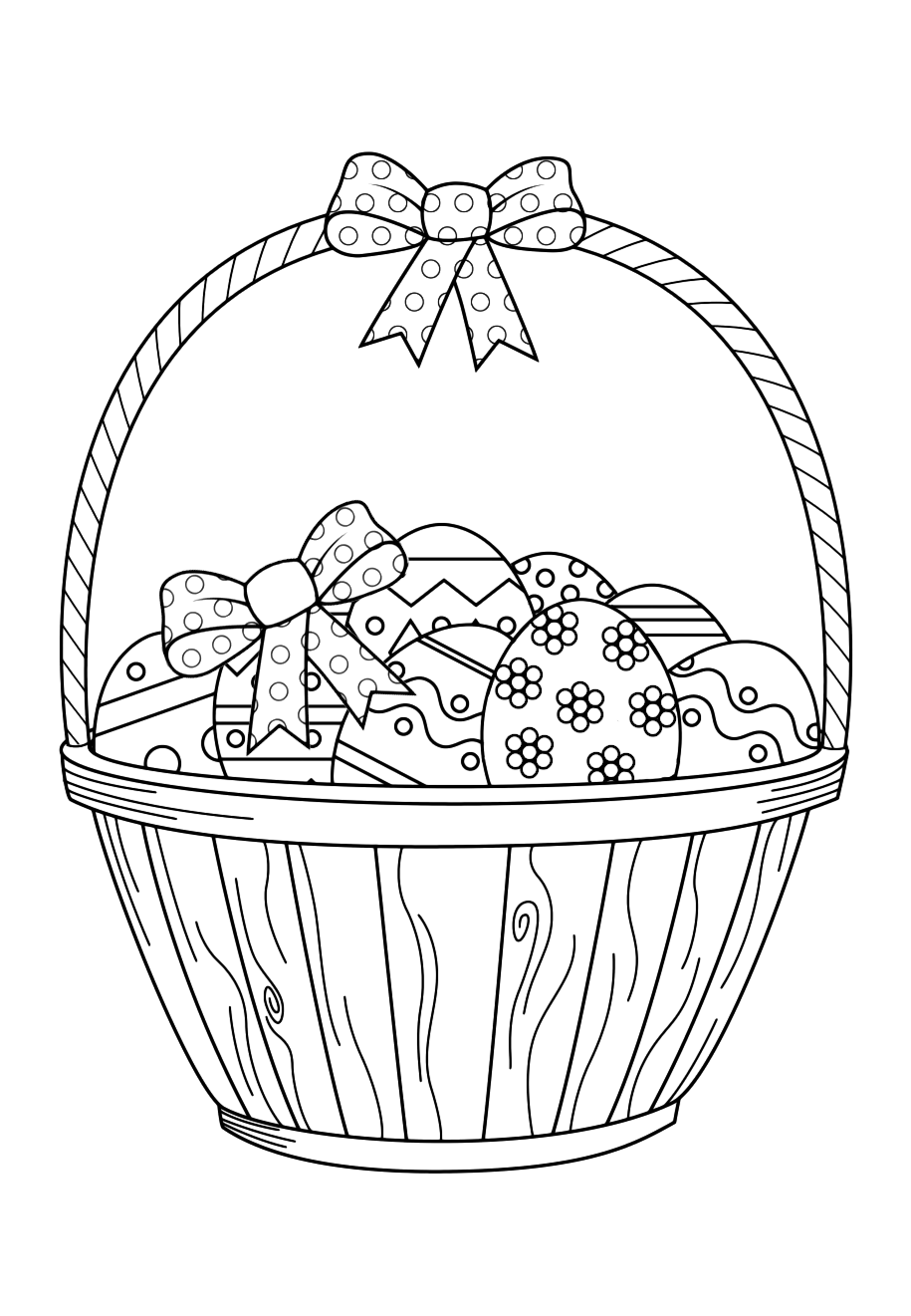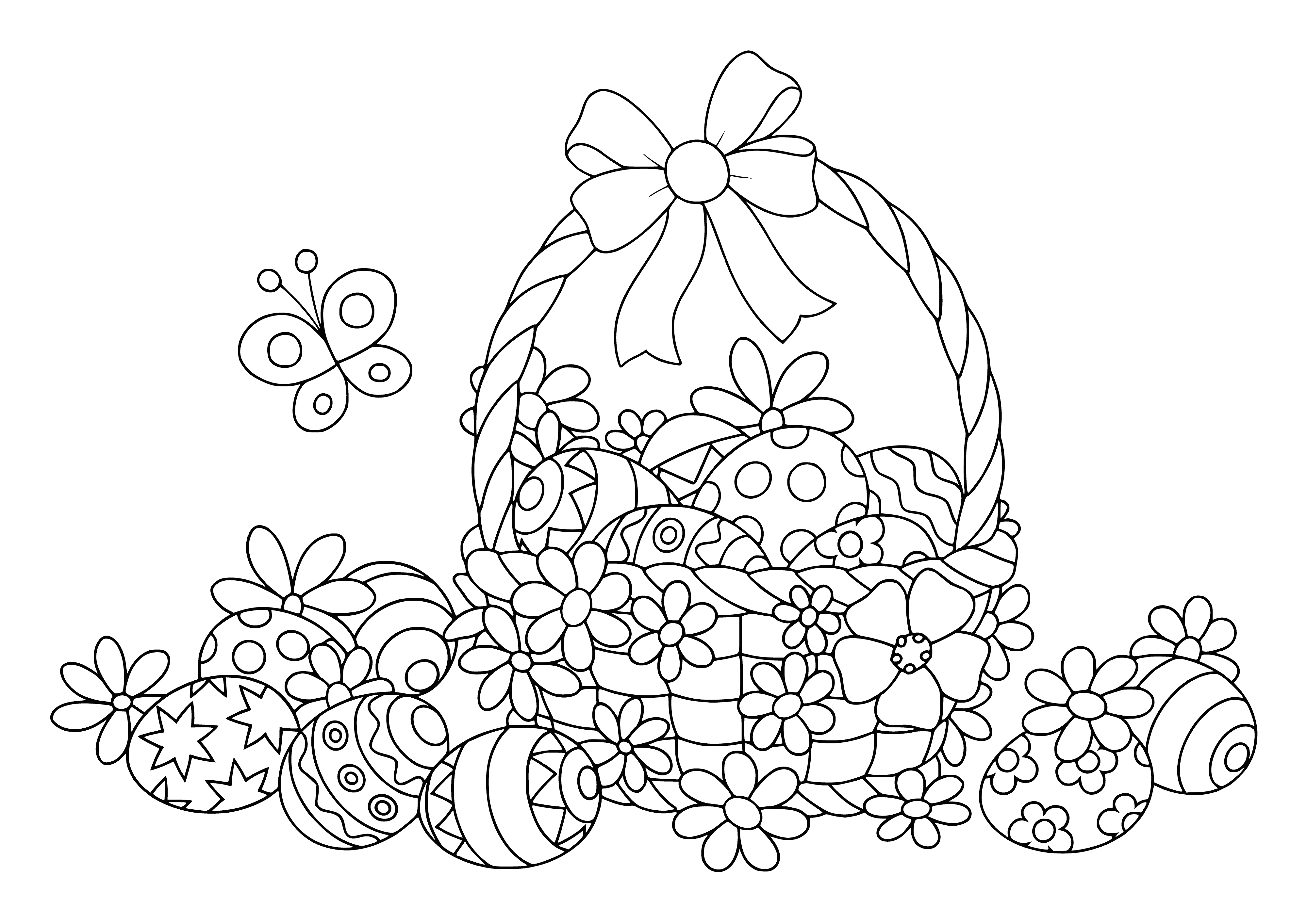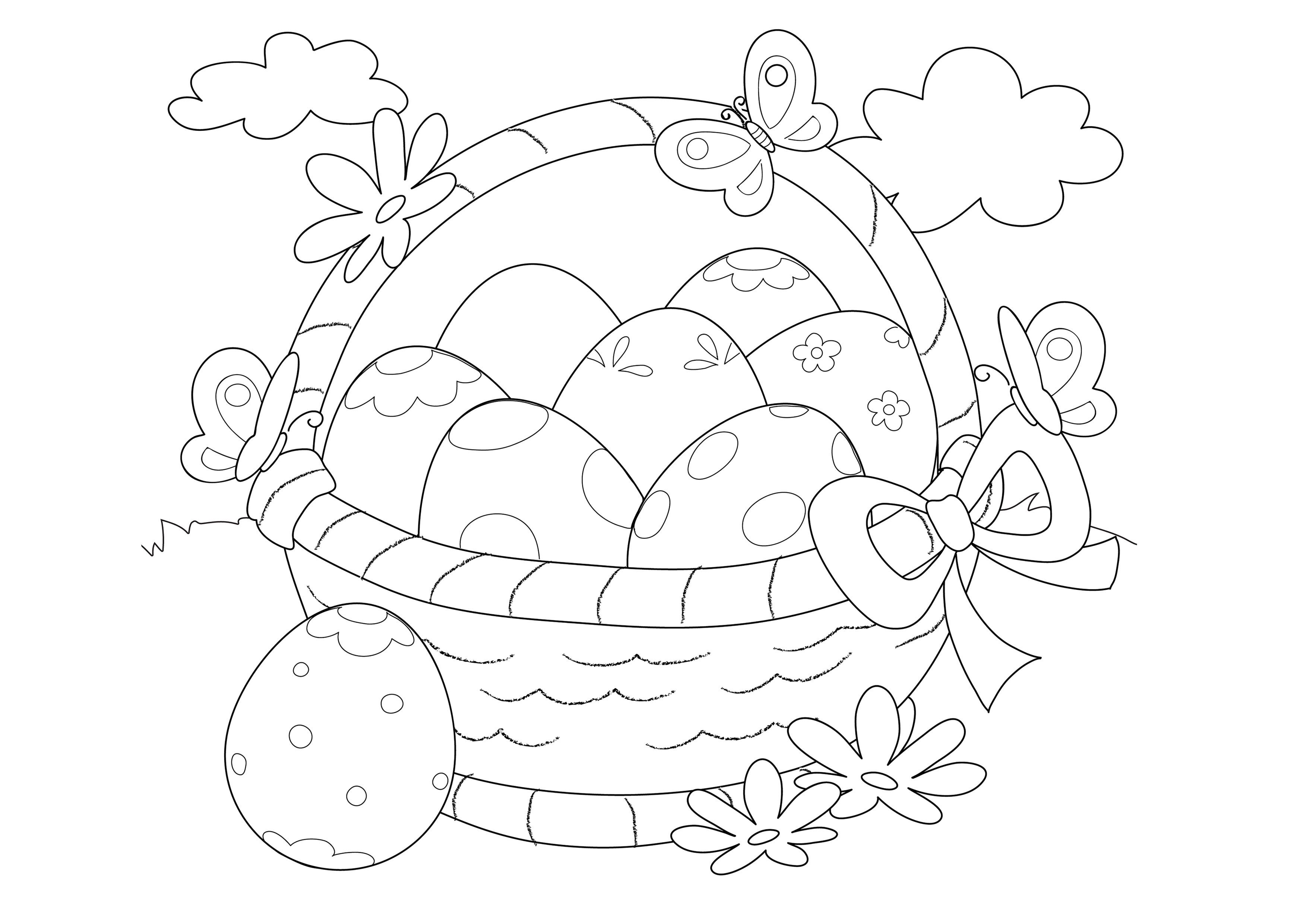 Раскраска пасхальные яйца в корзине