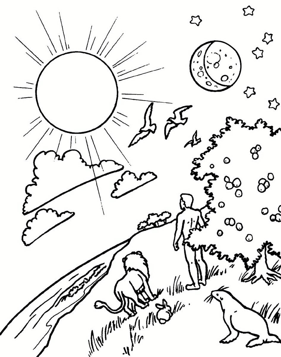 Раскраски Сотворение мира для детей воскресной школы бытие 1 22