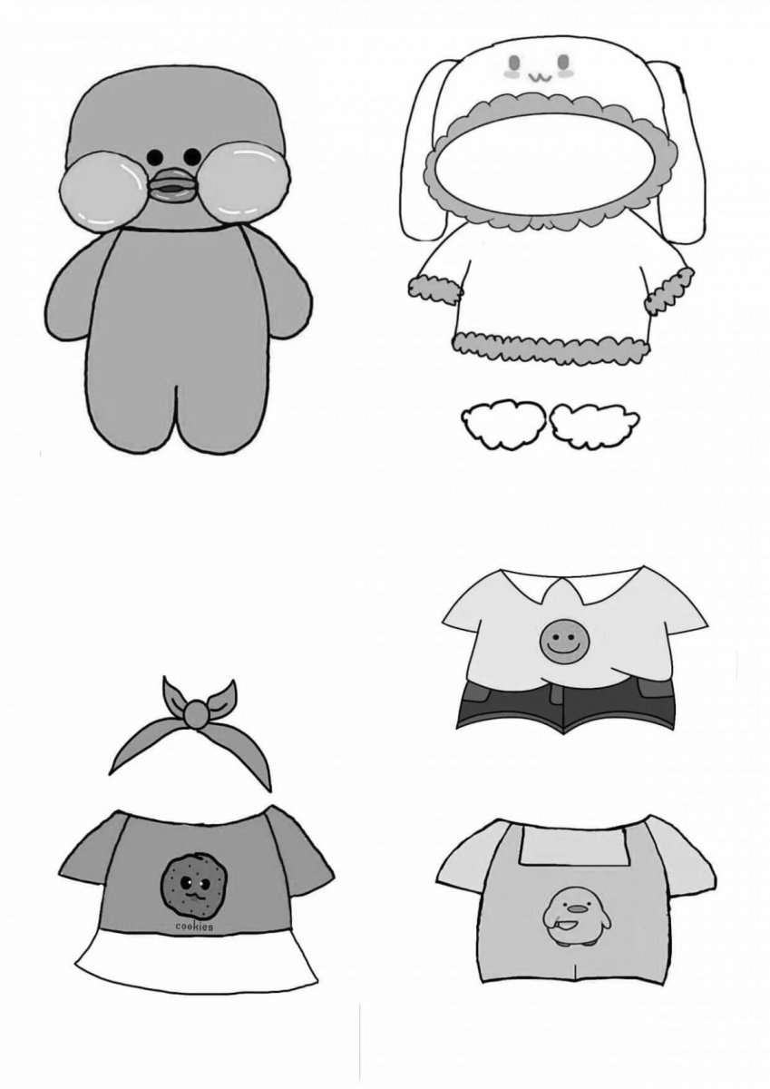 Раскраска уточка лалафанфан с одеждой