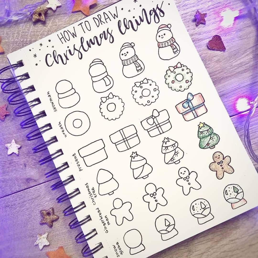 Милые и красивые новогодние рисунки для скетчбука